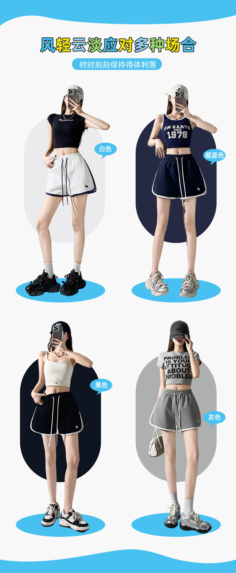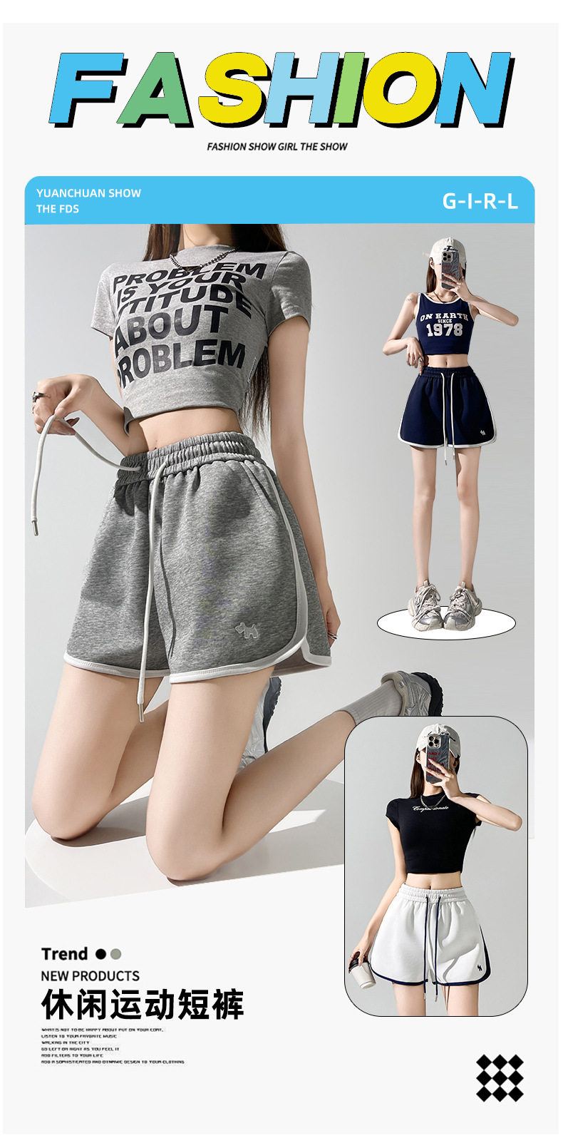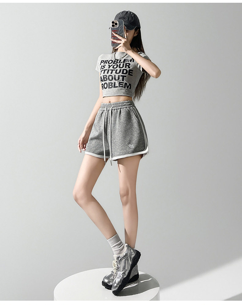 美式休闲甜辣潮流运动透气短裤女夏季ins简约百搭宽松三分超短裤 NDK-J5018