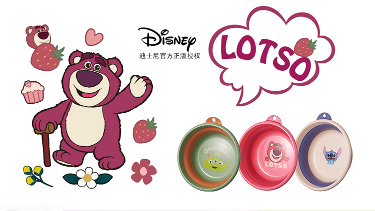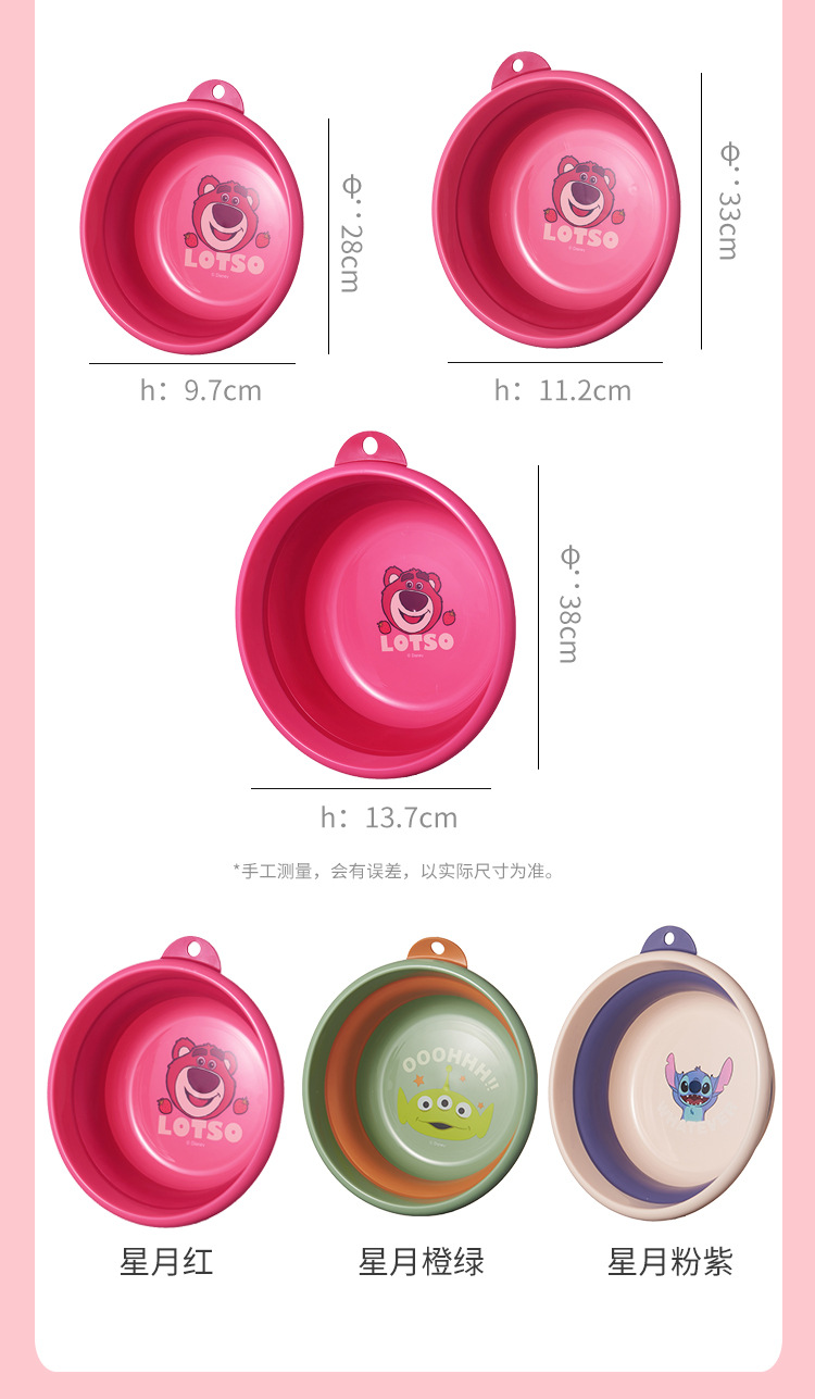 【可折叠!宝宝专属脸盆】Disney迪士尼草莓熊折叠盆可悬挂洗脸盆塑料洗衣洗PP盆家用