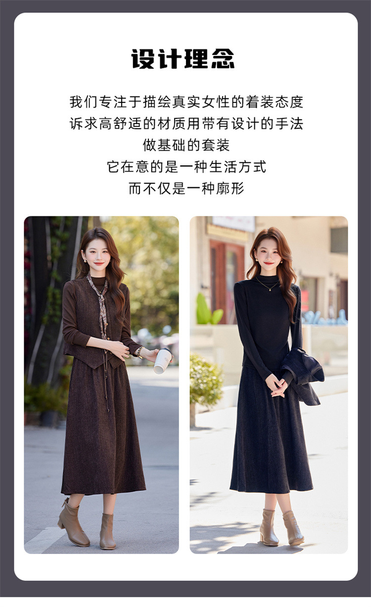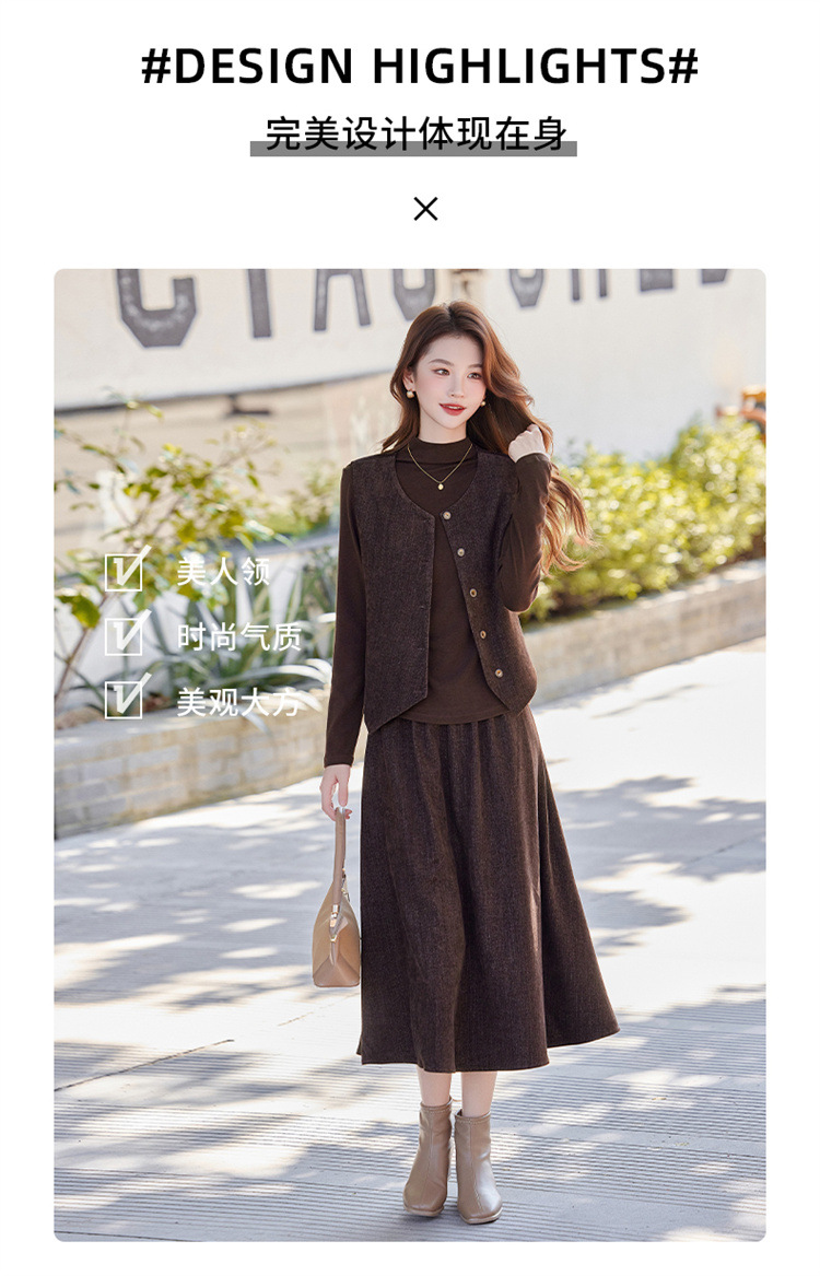 HR ABS25167老钱风气质马甲套装裙通勤风优雅大气半身裙三件套 商品图2