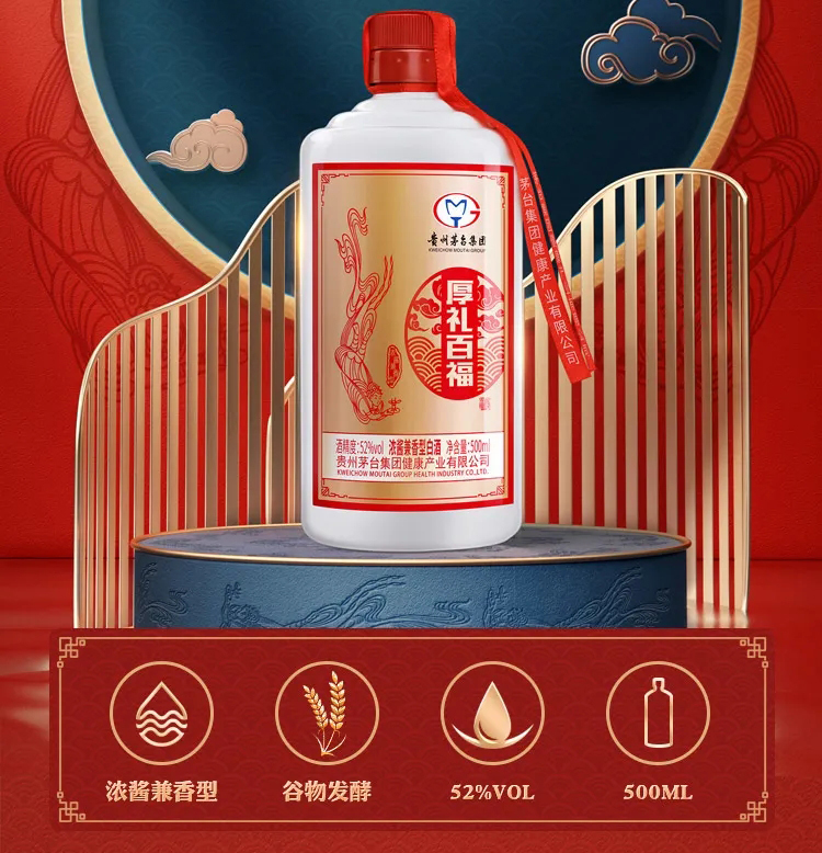 【1折抢“茅台” 正统嫡系酒】茅台厚礼佳酿52%vol白酒 礼盒装(500ml*2瓶 内含分酒器*1+小酒杯*2)新增加厚礼百福-500ml*4瓶规格