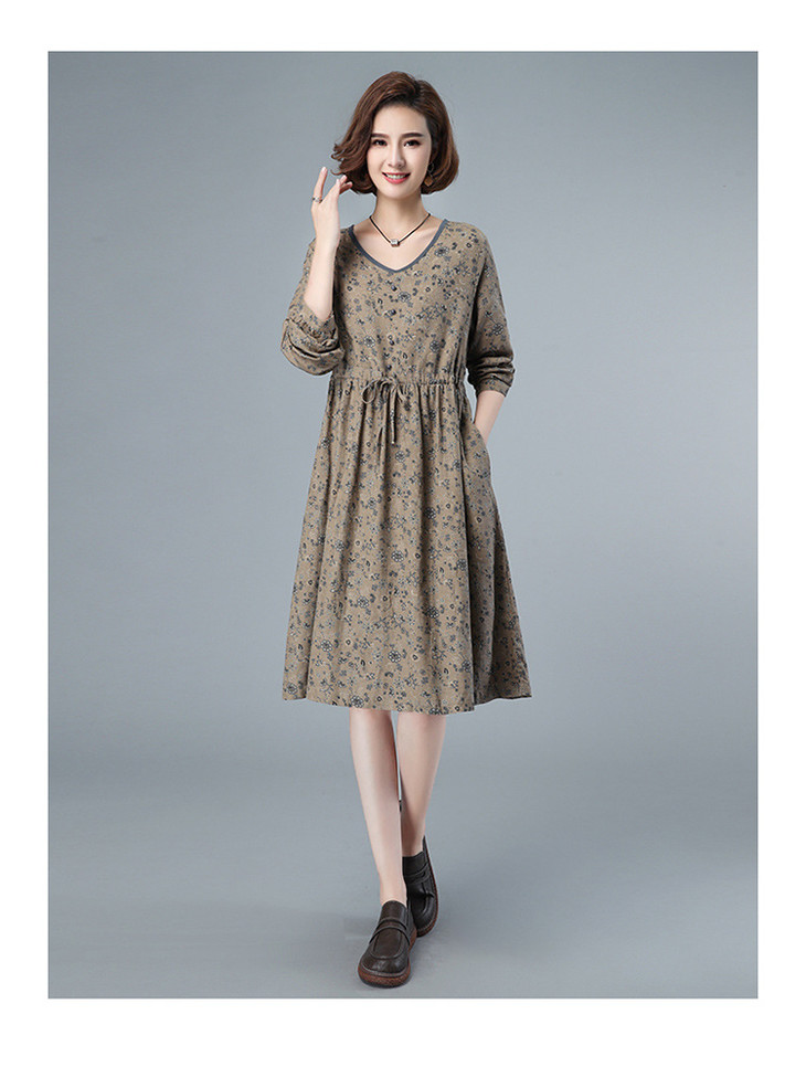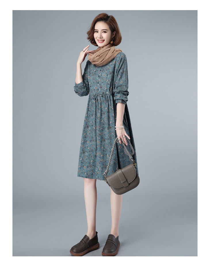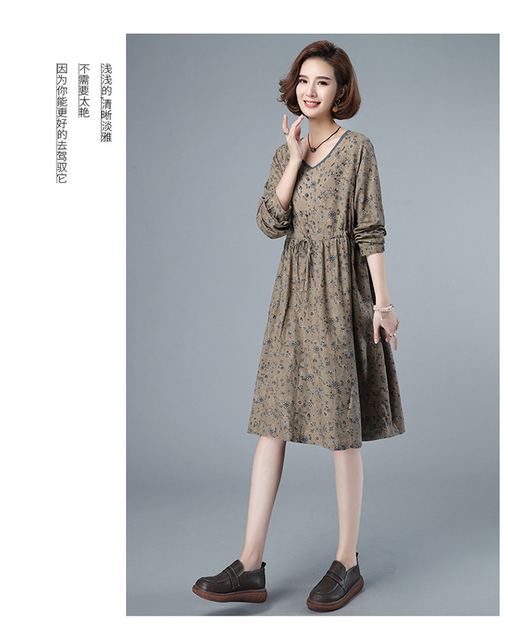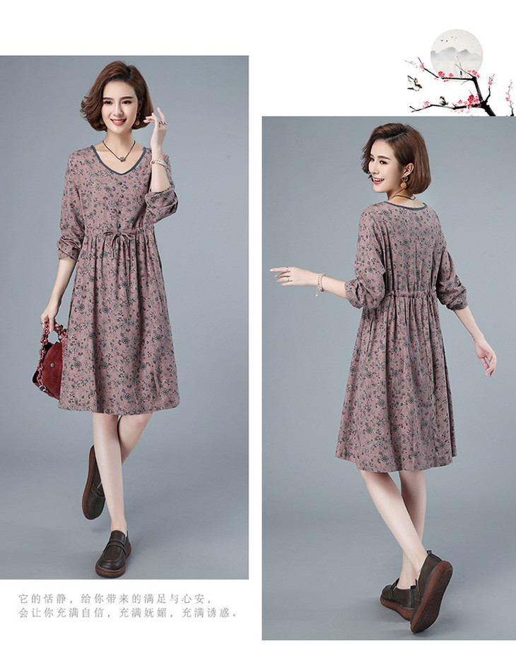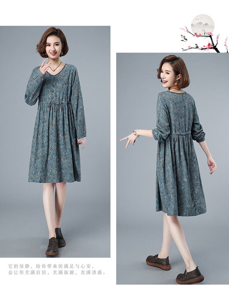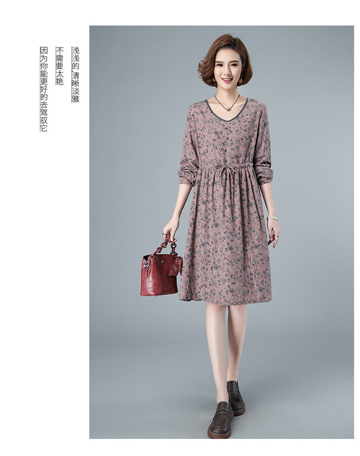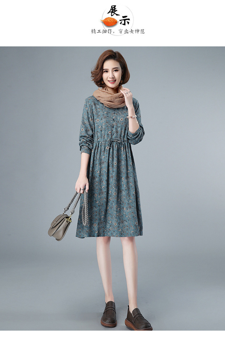 CQ HYU2052早秋连衣裙长袖小碎花宽松腰制抽绳