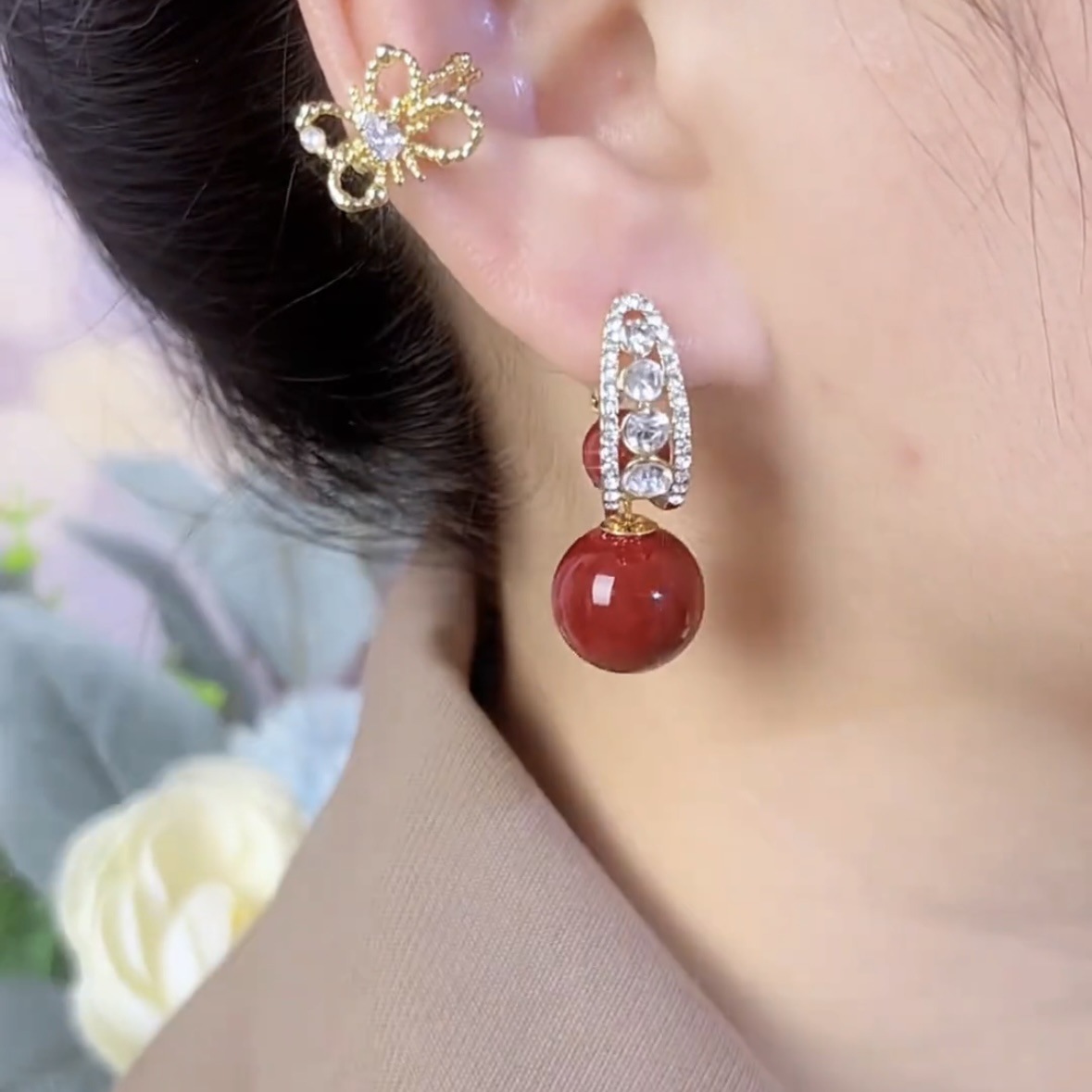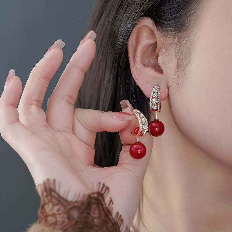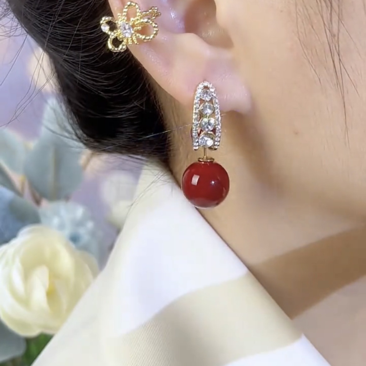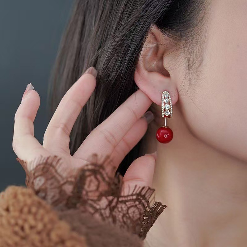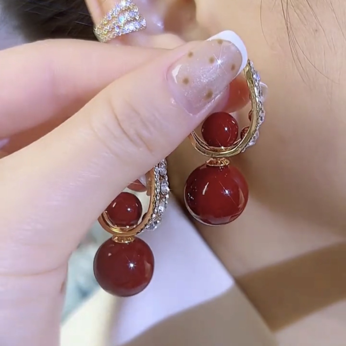 红色耳饰轻奢高级感耳环一式俩戴新款爆款百搭个性耳饰品