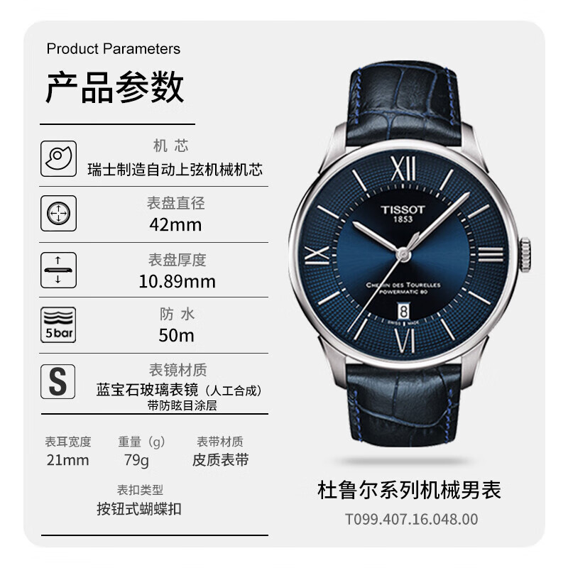 【时计廊】天梭1853杜鲁尔系列T099.407.16.048.00