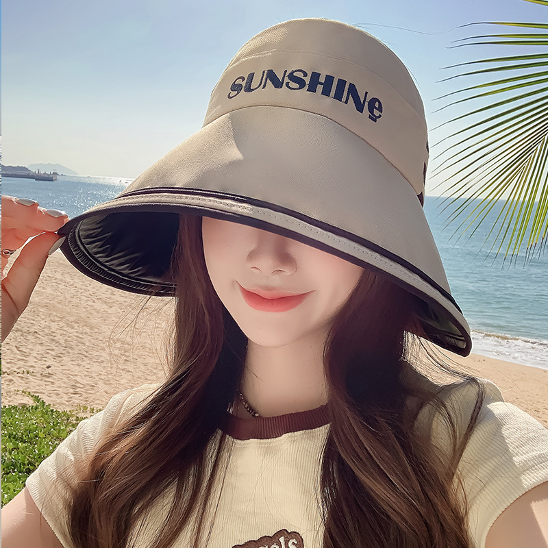 【日系夏季遮阳帽女,新款大沿空顶帽~】夏季遮阳帽女黑胶 大沿空顶帽渔夫帽 防紫外线防晒帽太阳帽-QQ