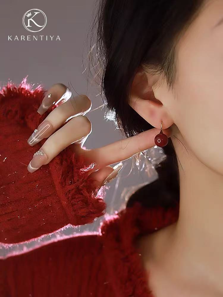 丁摩 天然高含量朱砂耳钩S925新款设计感小众红色喜庆耳饰5ZF-291