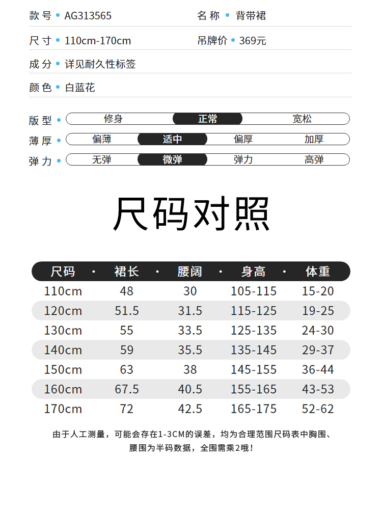 【实体店同款】背带裙秋新款女孩纯棉时髦半身裙安奈儿童装AG313565