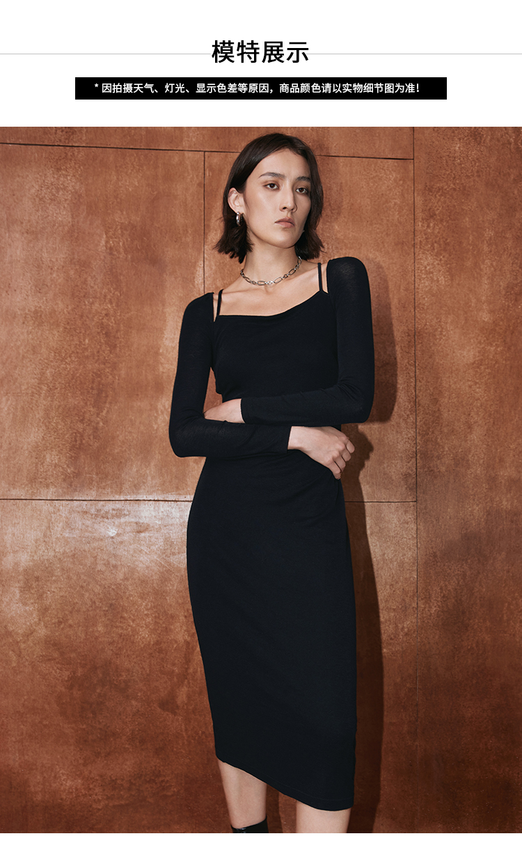 VIMAGE纬漫纪冬季新款纯色百搭洋气收腰连衣裙V2007627