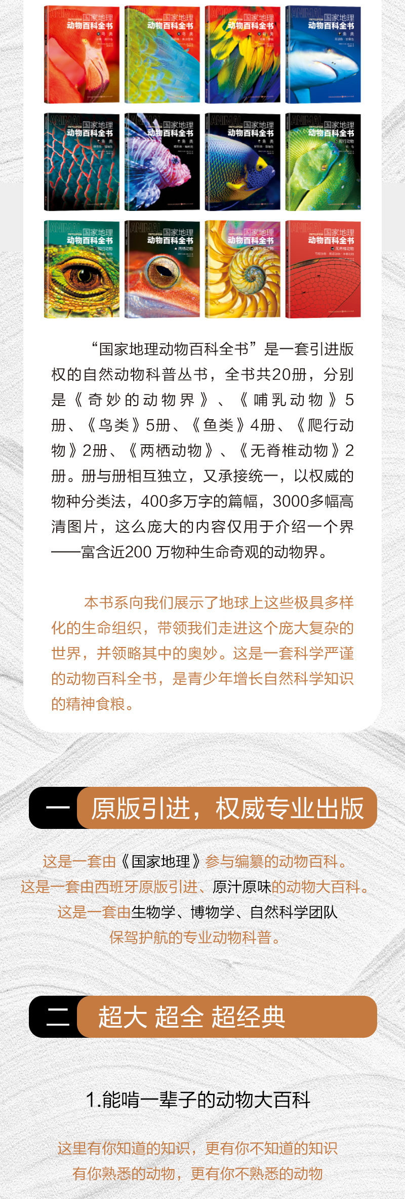 《国家地理动物百科全书》 (全20册)7~14岁 全6大动物类型,3000+幅高清图片,4000+种物种范例 百科全书动物图典