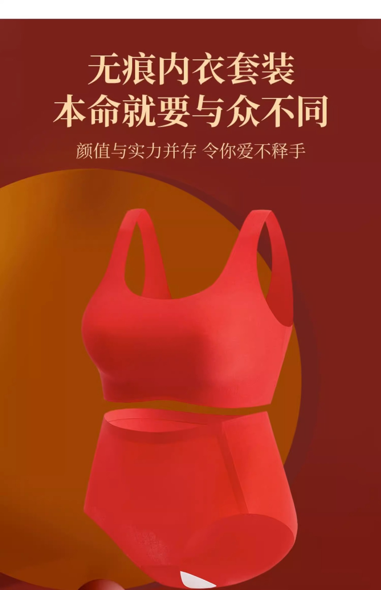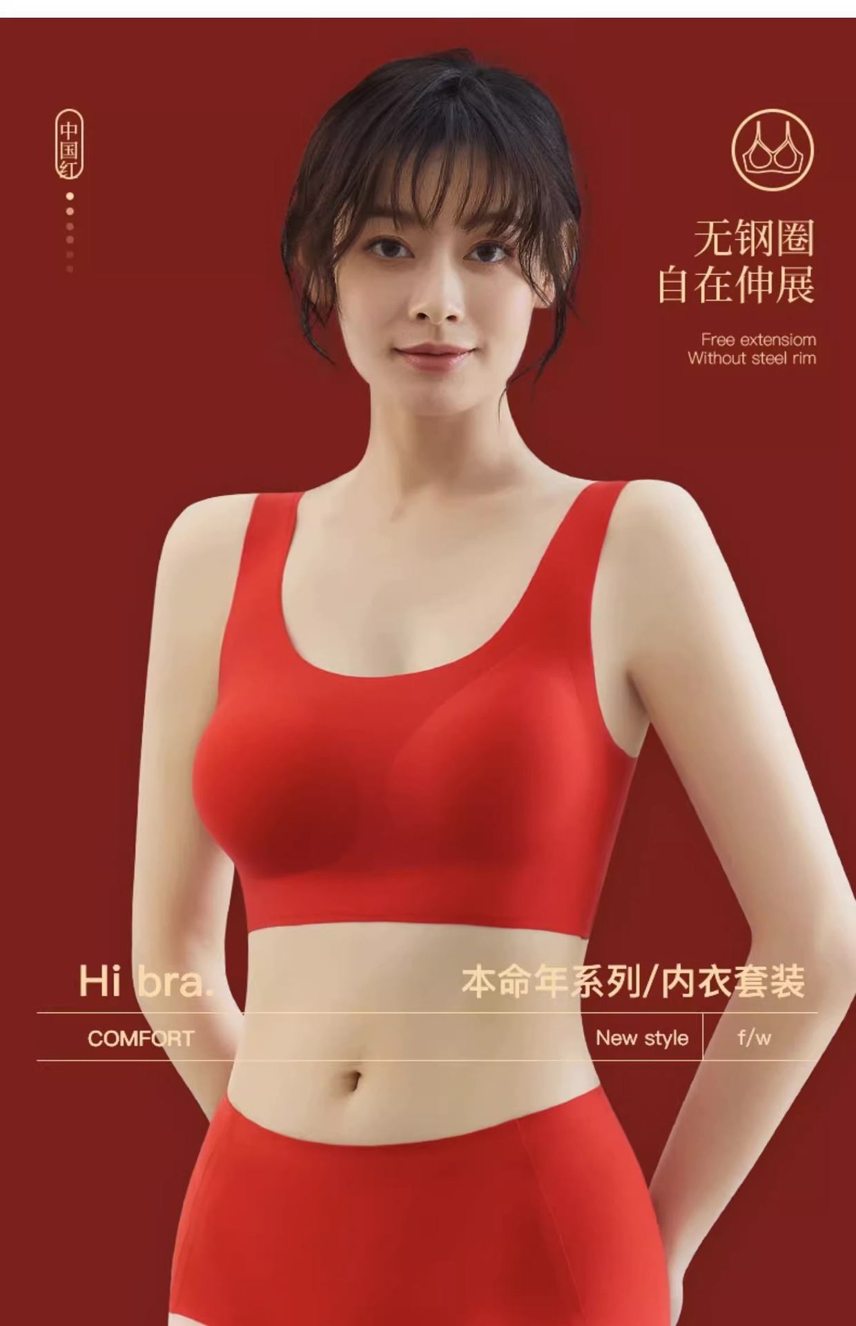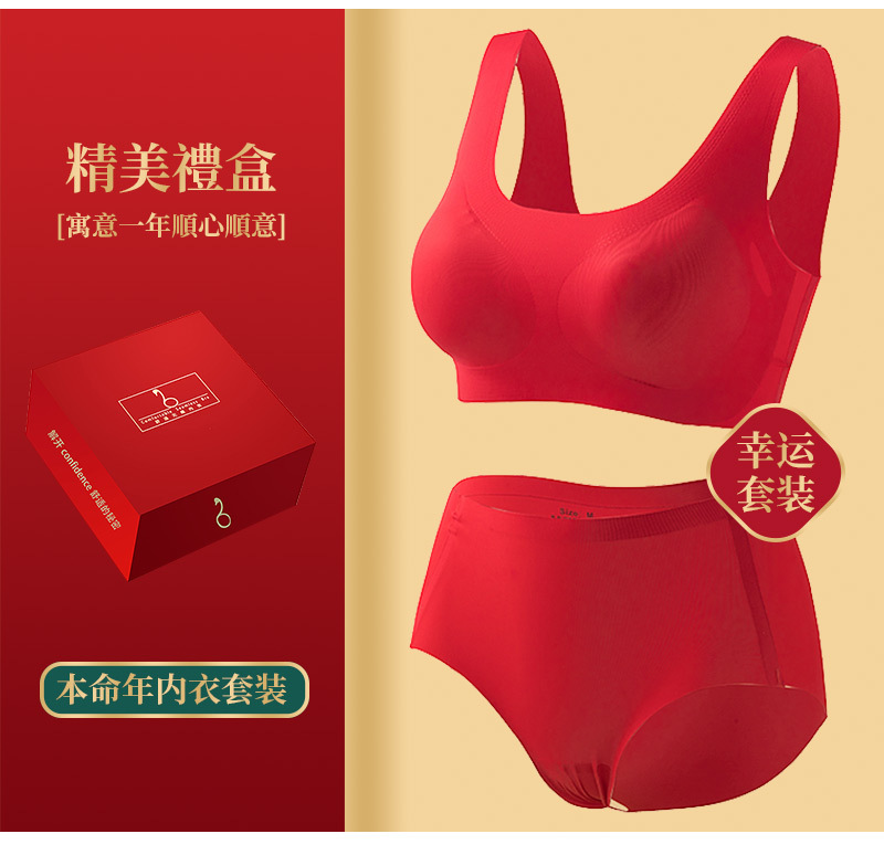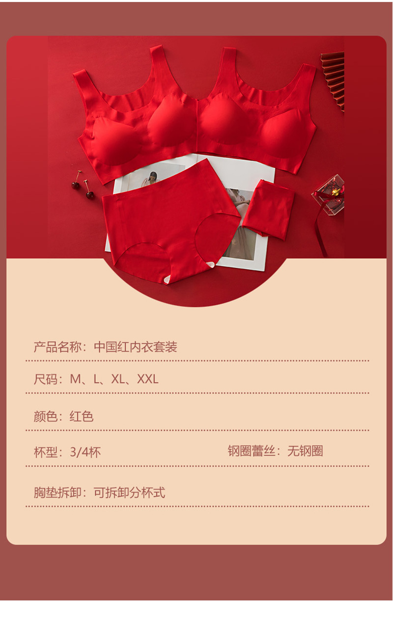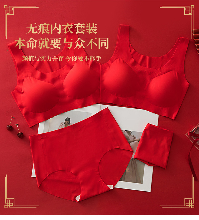 雀说红色内衣女小胸聚拢本命年胸罩无钢圈文胸内裤套装AL015