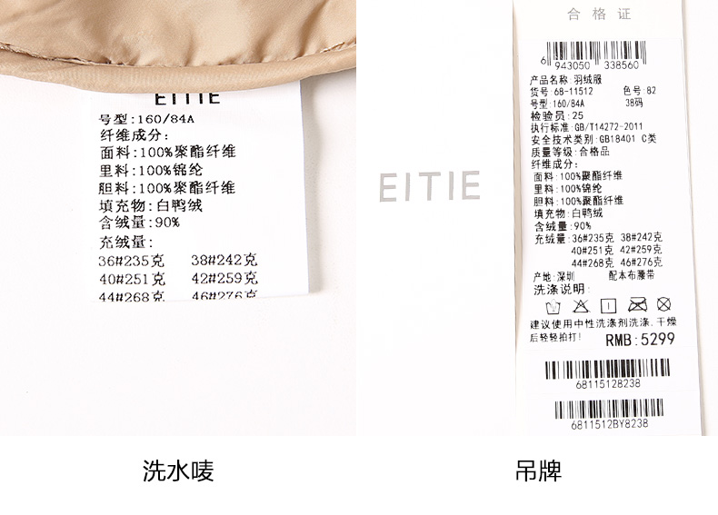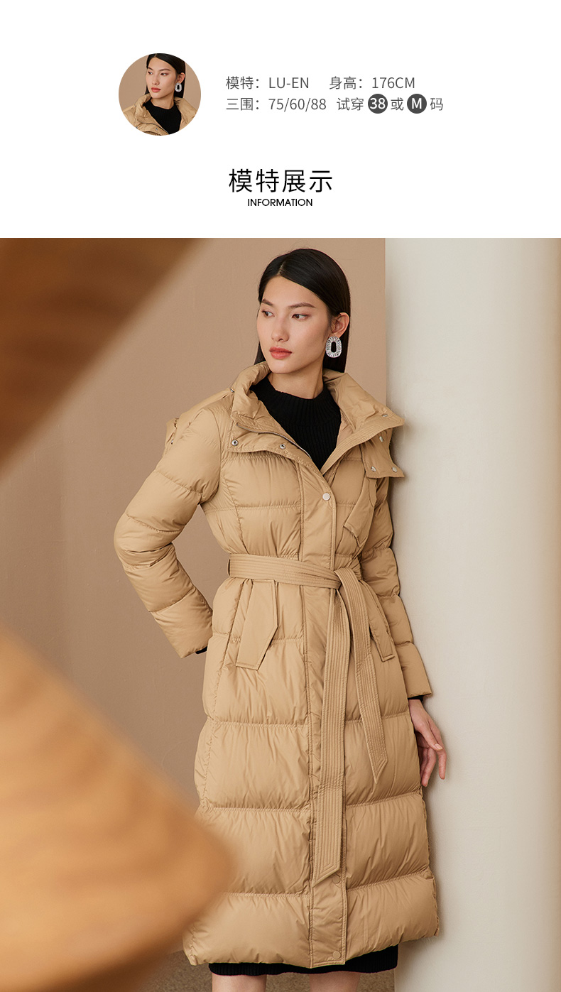 EITIE爱特爱冬季新款白鸭绒连帽保暖羽绒服女中长款6811512