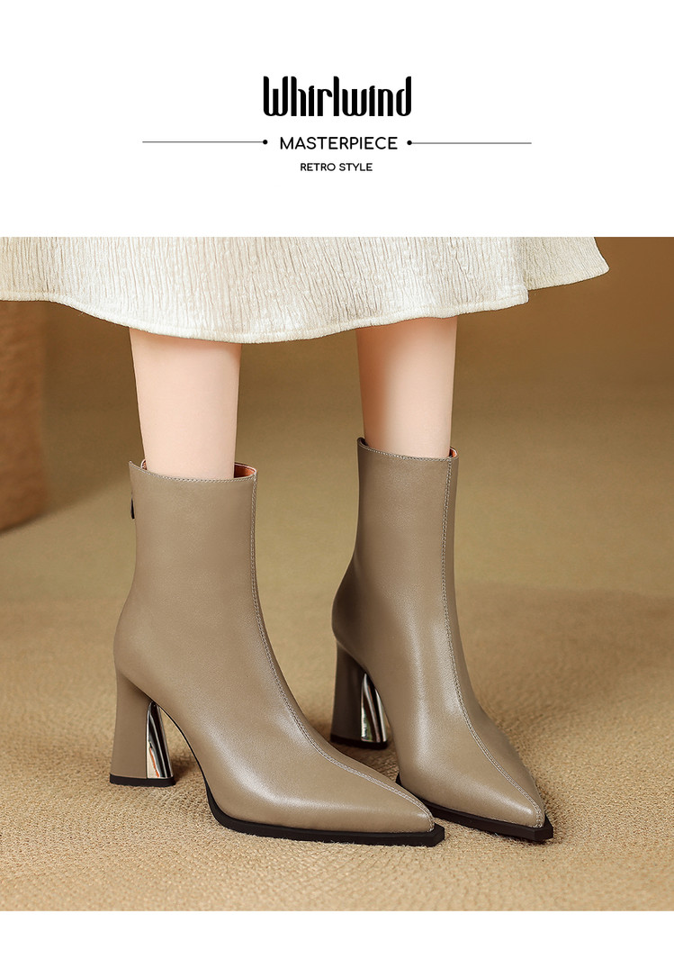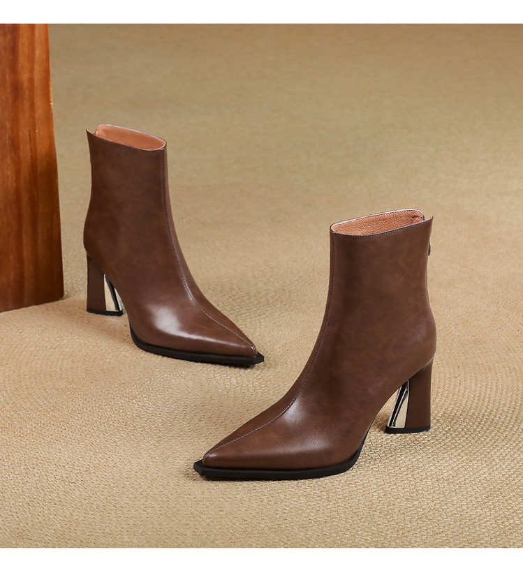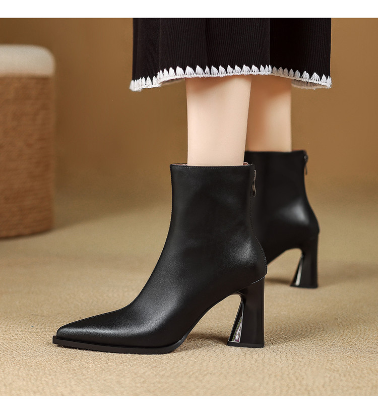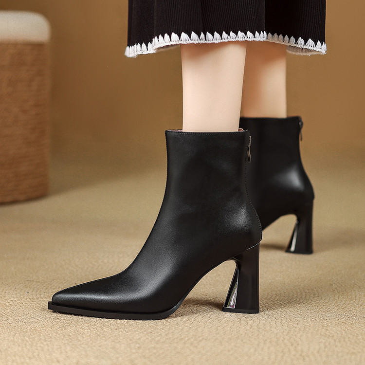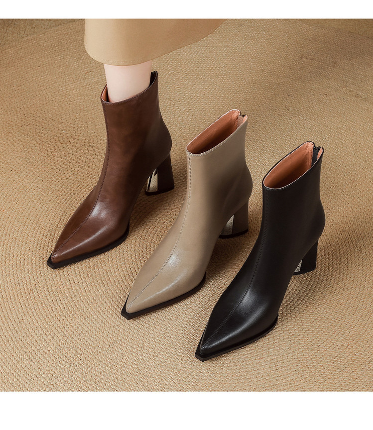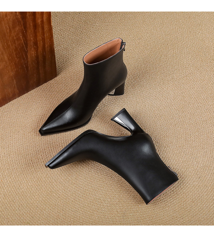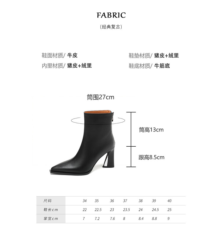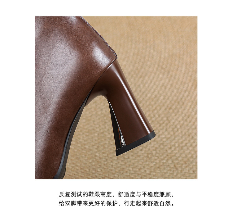 【预售5天】秋冬新款真皮高跟马丁靴女尖头粗跟气质短靴子百搭加绒时装靴SLLK&sl-7980