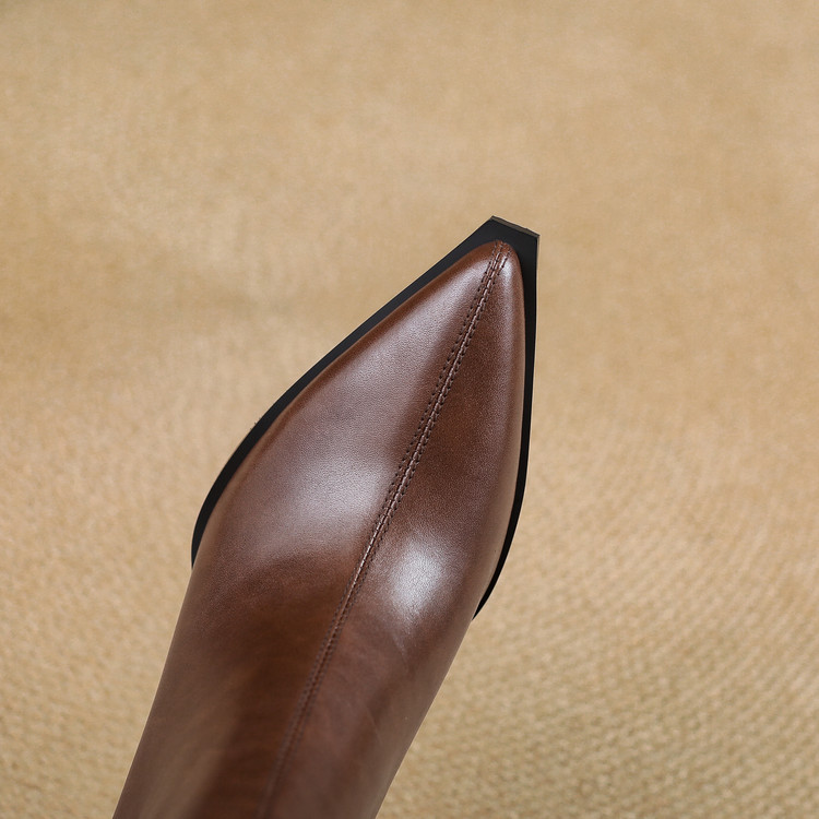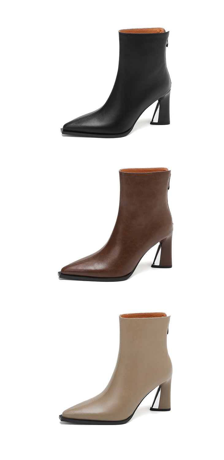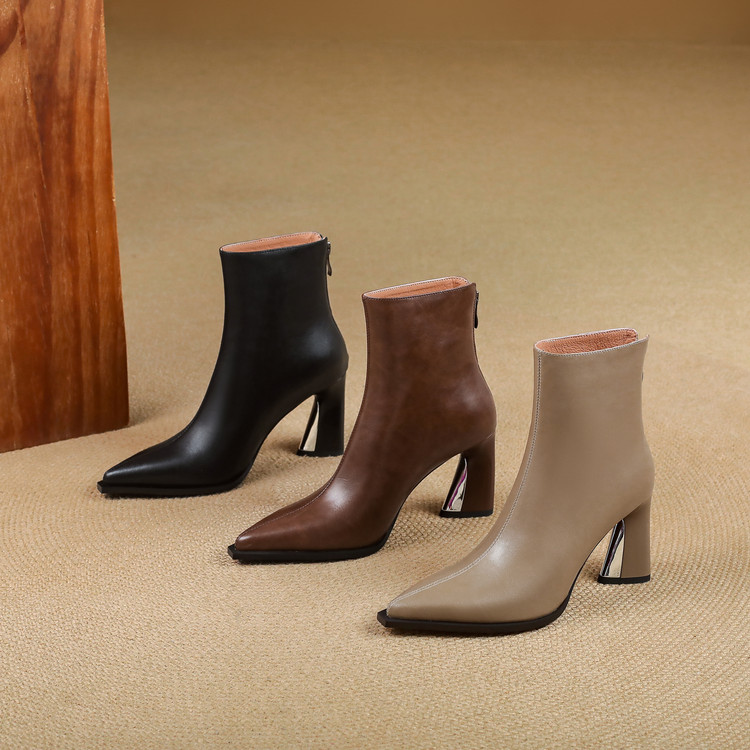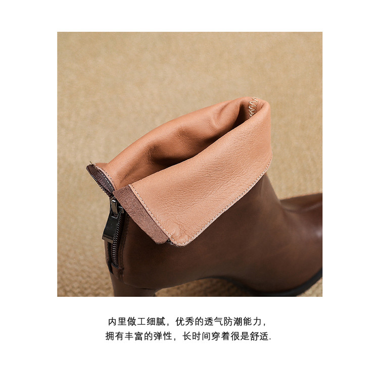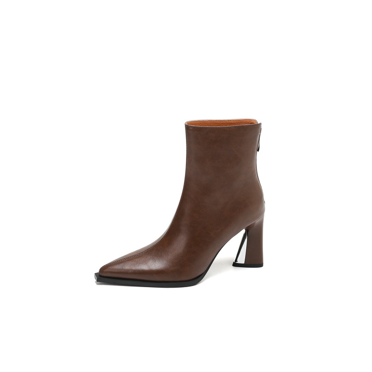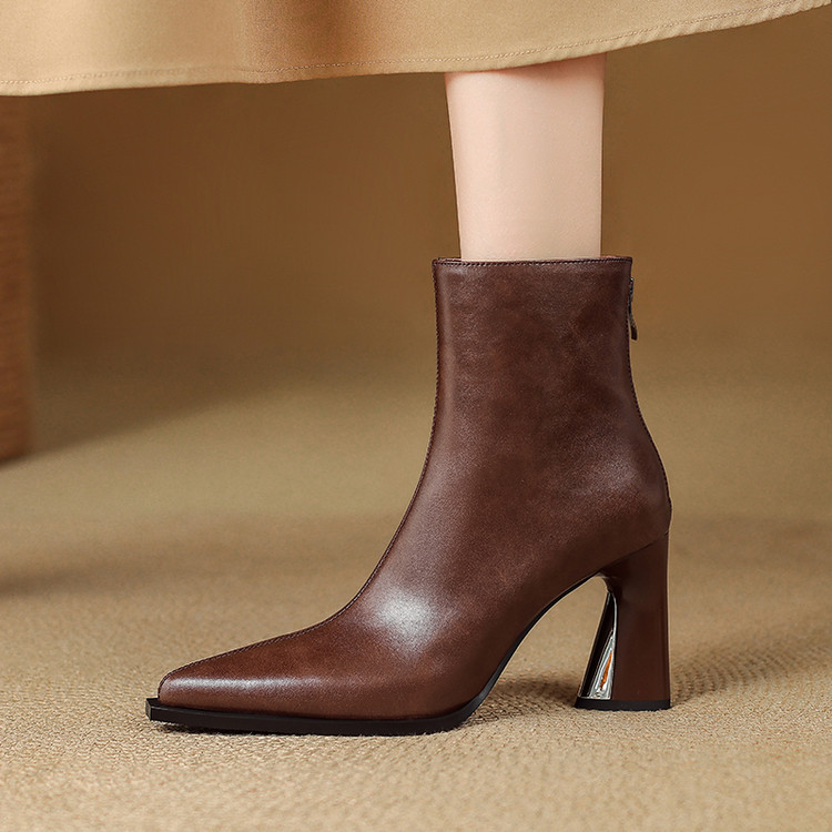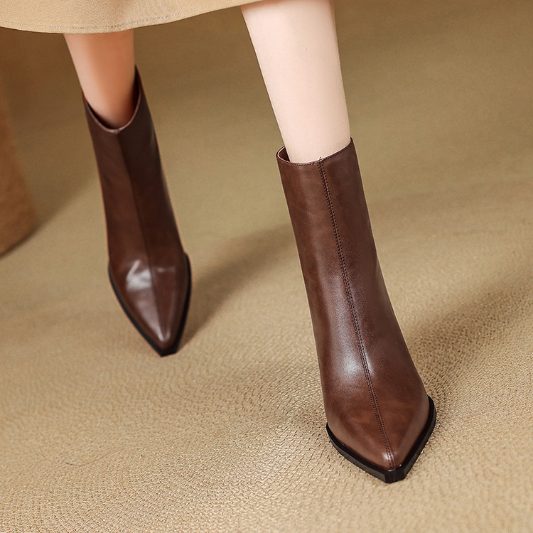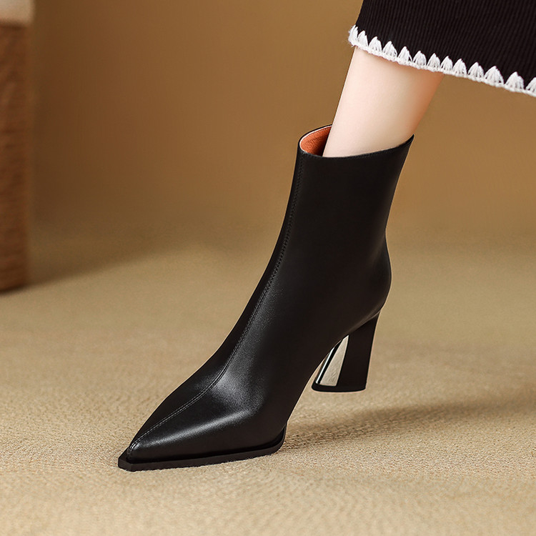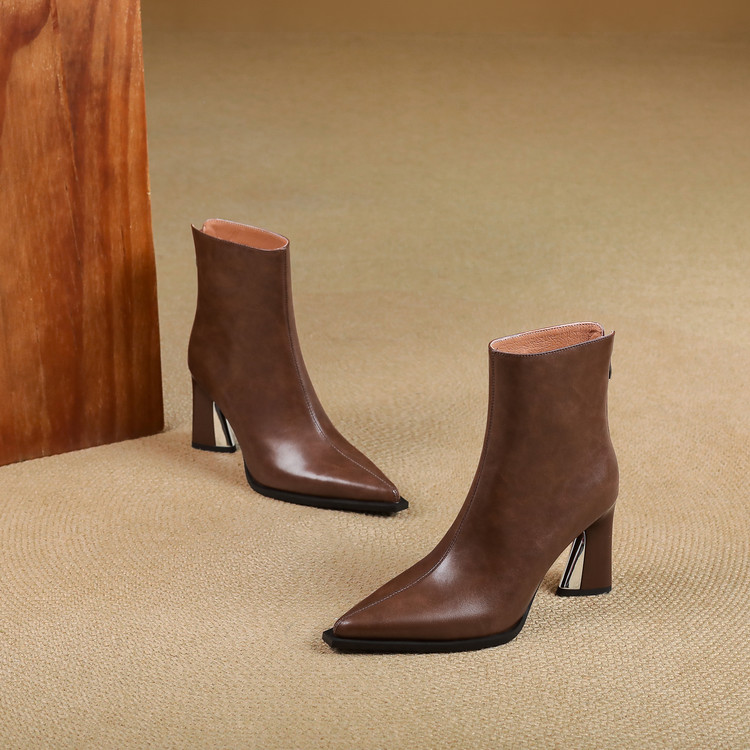 【预售5天】秋冬新款真皮高跟马丁靴女尖头粗跟气质短靴子百搭加绒时装靴SLLK&sl-7980