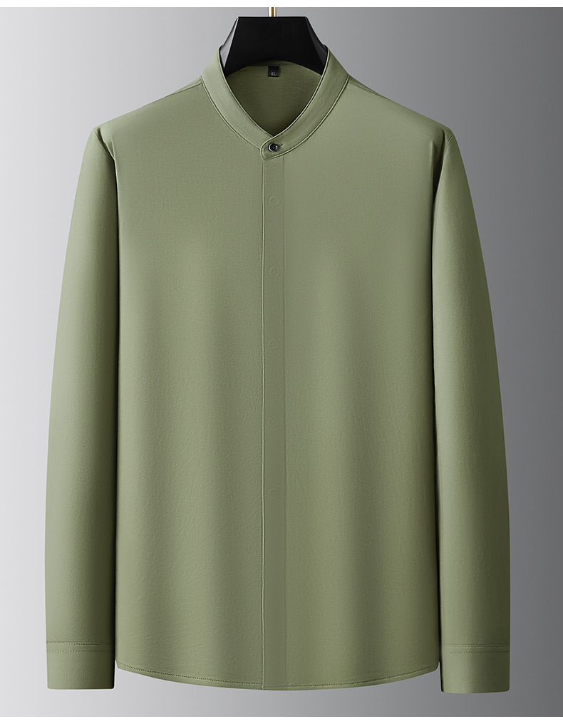 【牛津麻料】【DDA】大依优型大码长袖衬衫休闲立领棉质衬衣服男士加肥加大码简约胖子春款