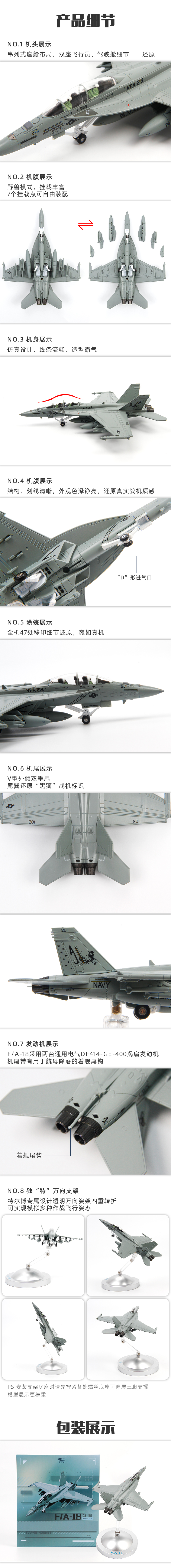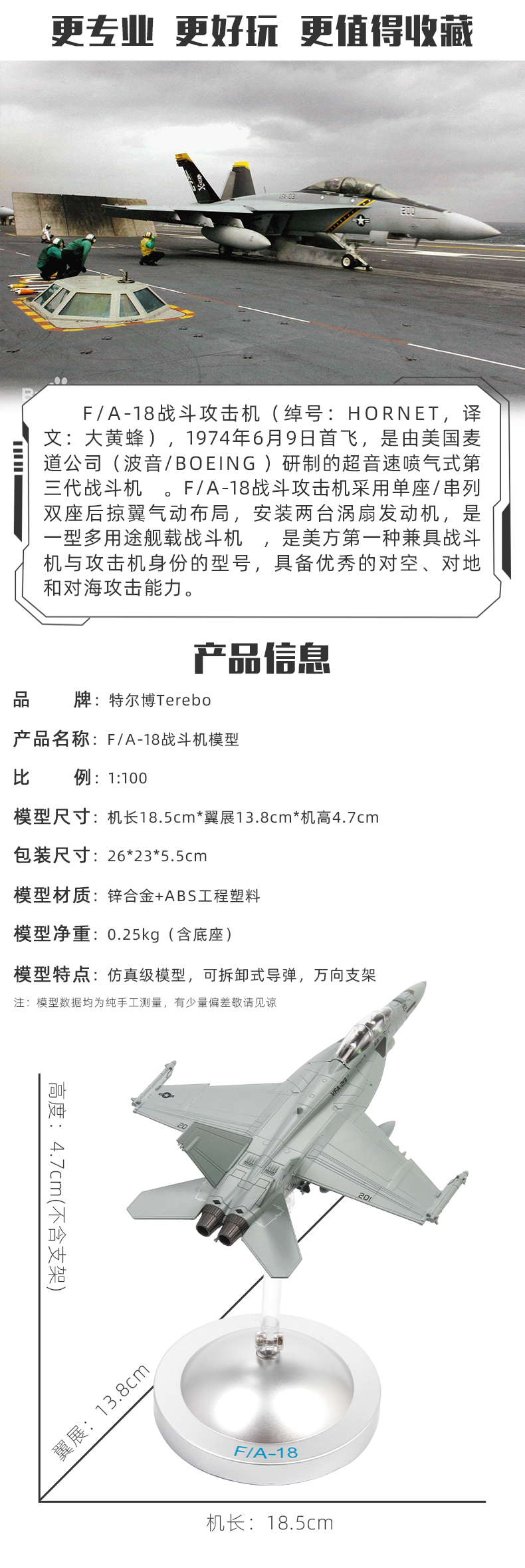 特尔博-长春航展、九三阅兵纪念品 1:100F18超级大黄蜂飞机模型合金仿真战斗机拼装航模F/A-18