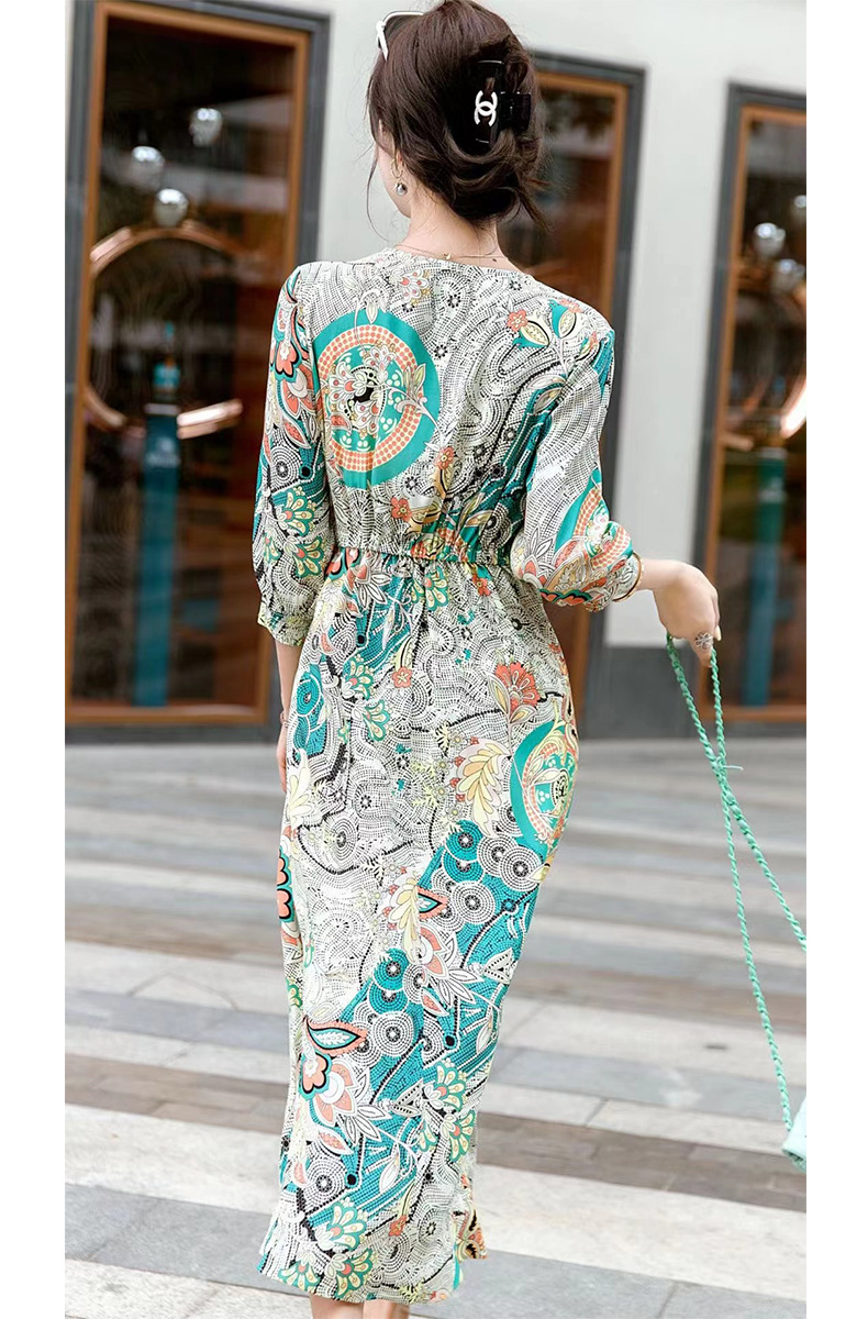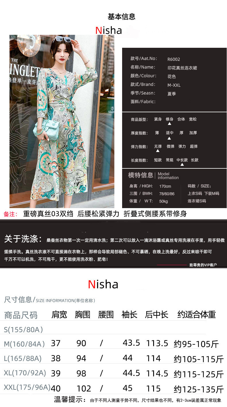 高端印花真丝优雅连衣裙新款22姆米重磅桑蚕丝修身裙NSM-R6002