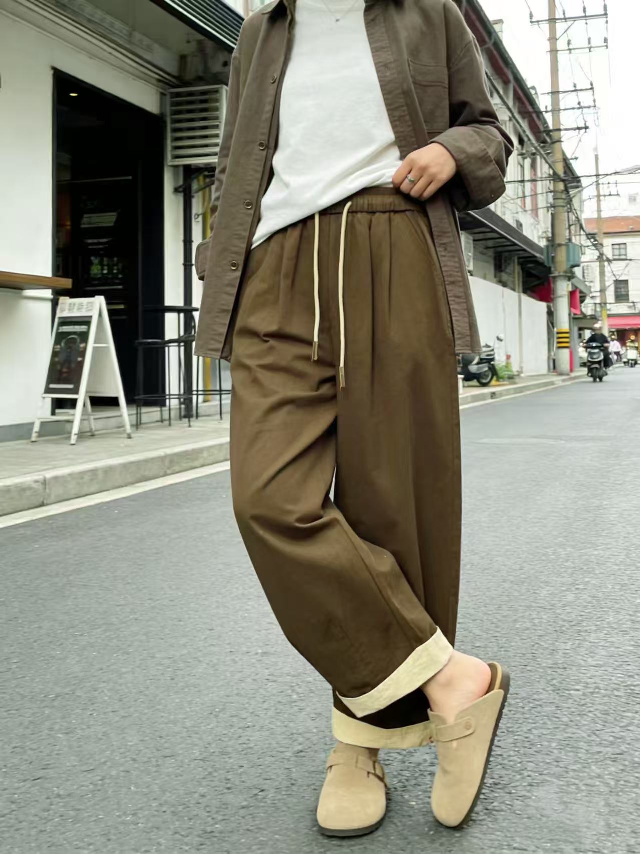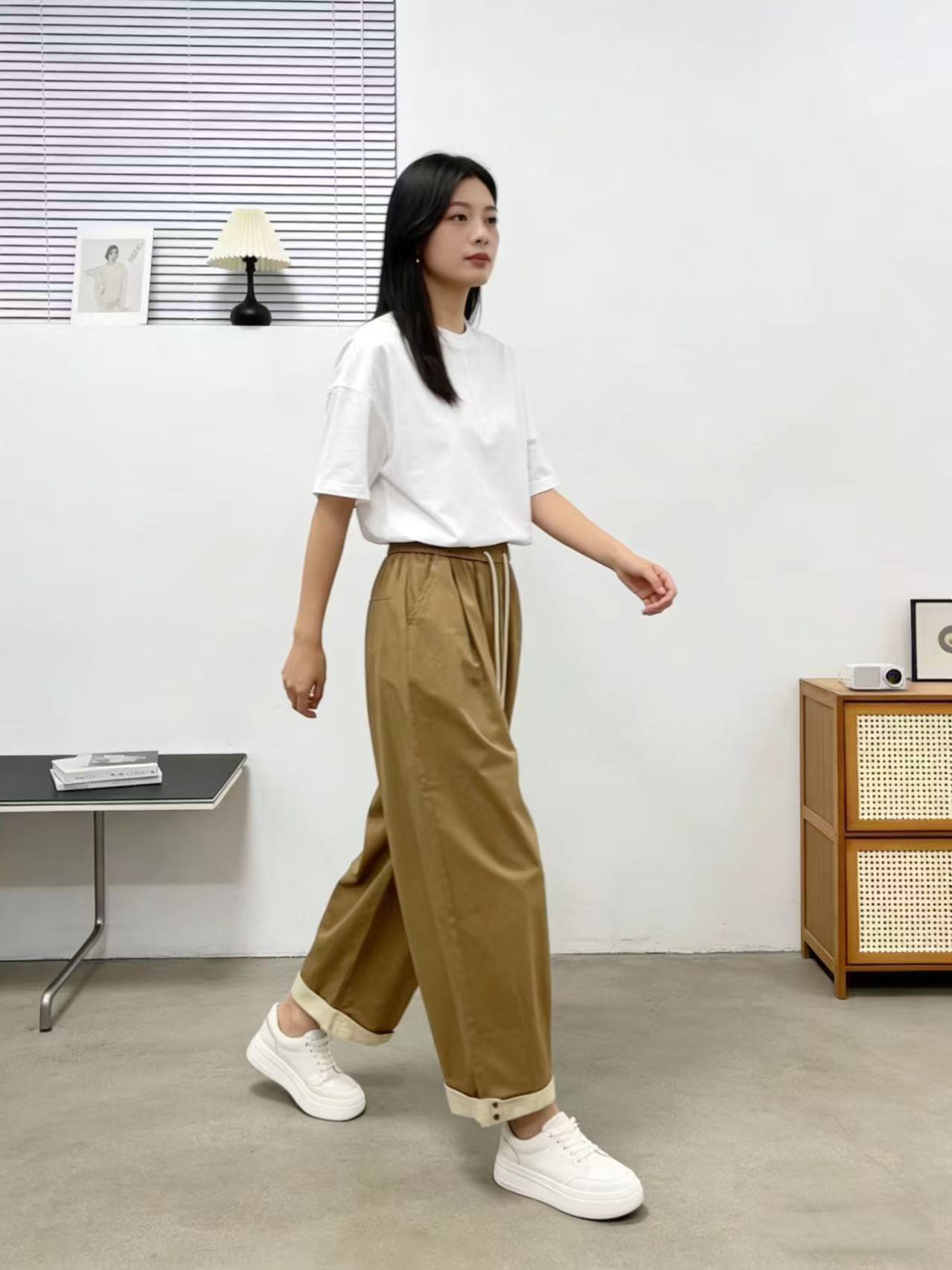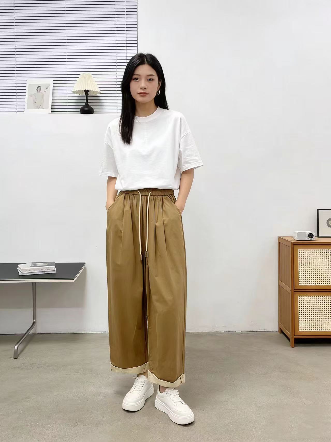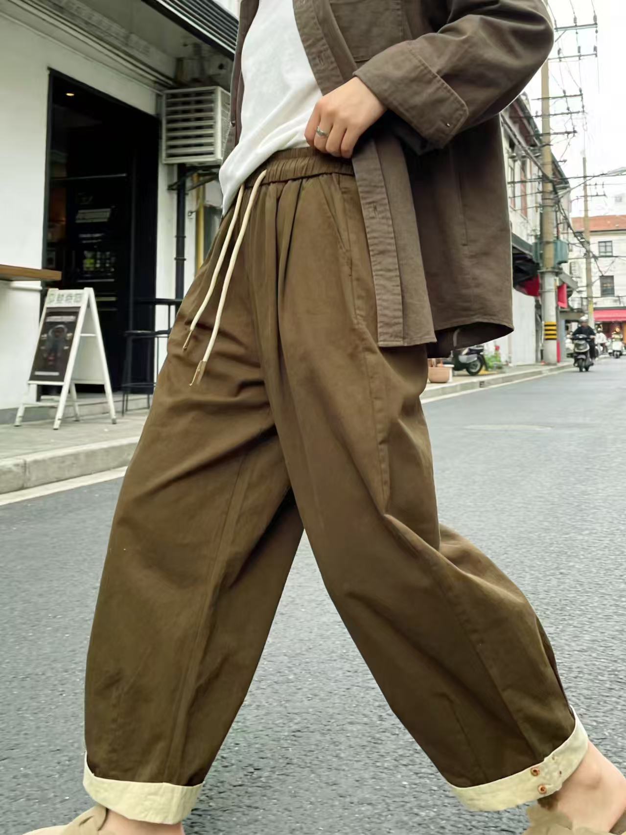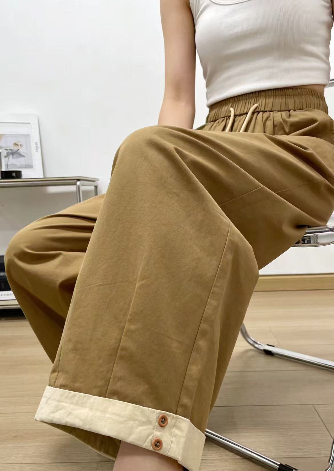 品牌促【自营】衣周期 8082松紧腰卷边宽松九分休闲裤-喜出