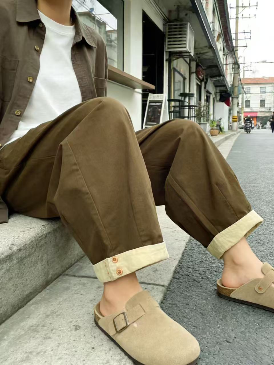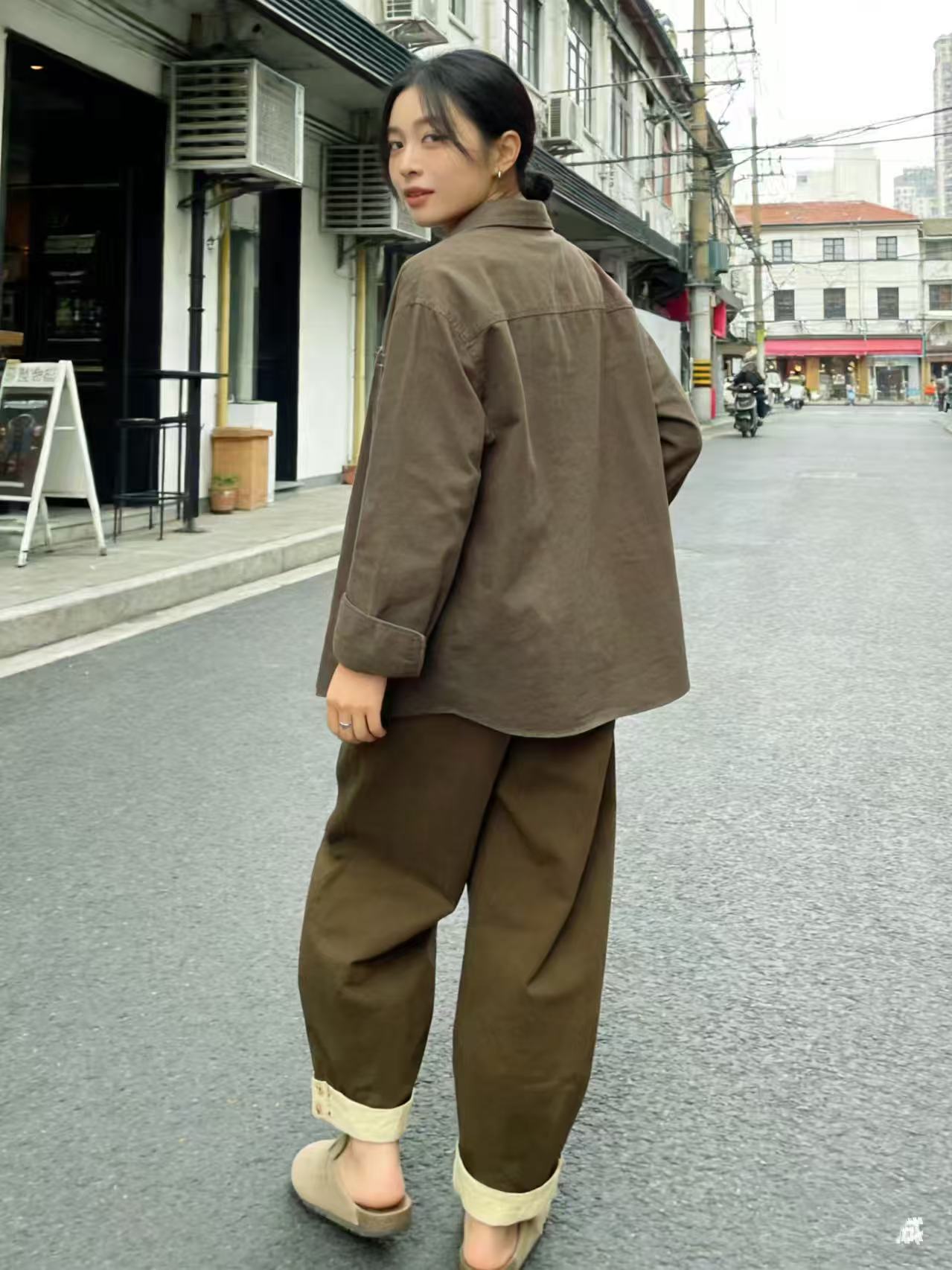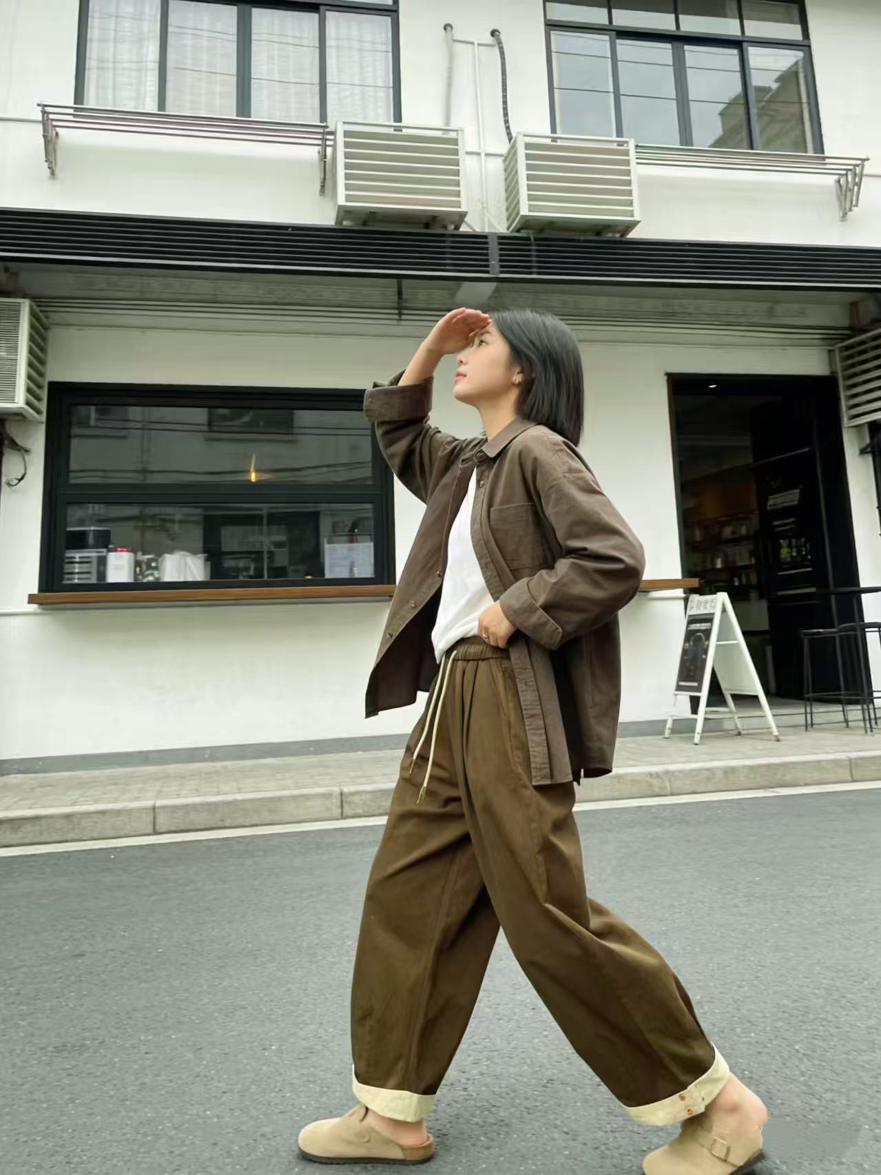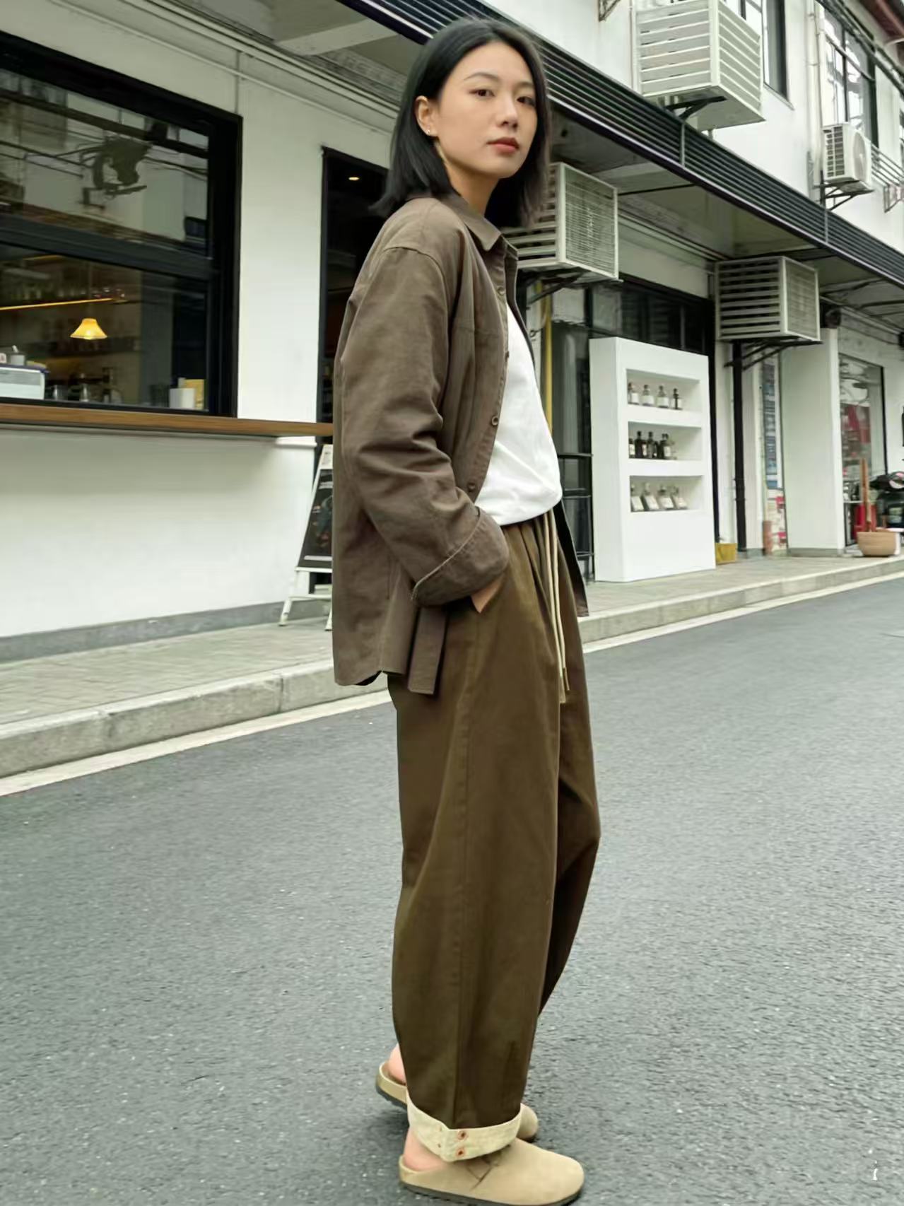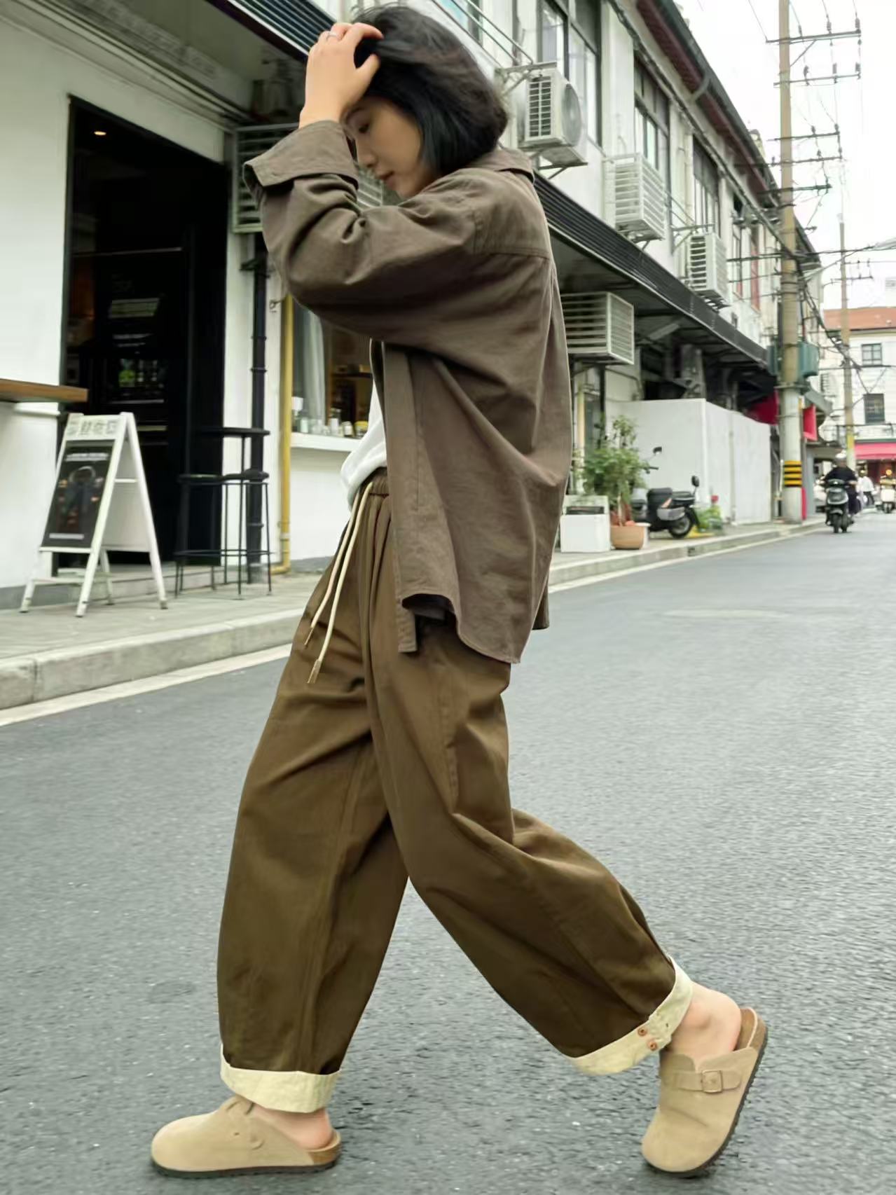 品牌促【自营】衣周期 8082松紧腰卷边宽松九分休闲裤-喜出