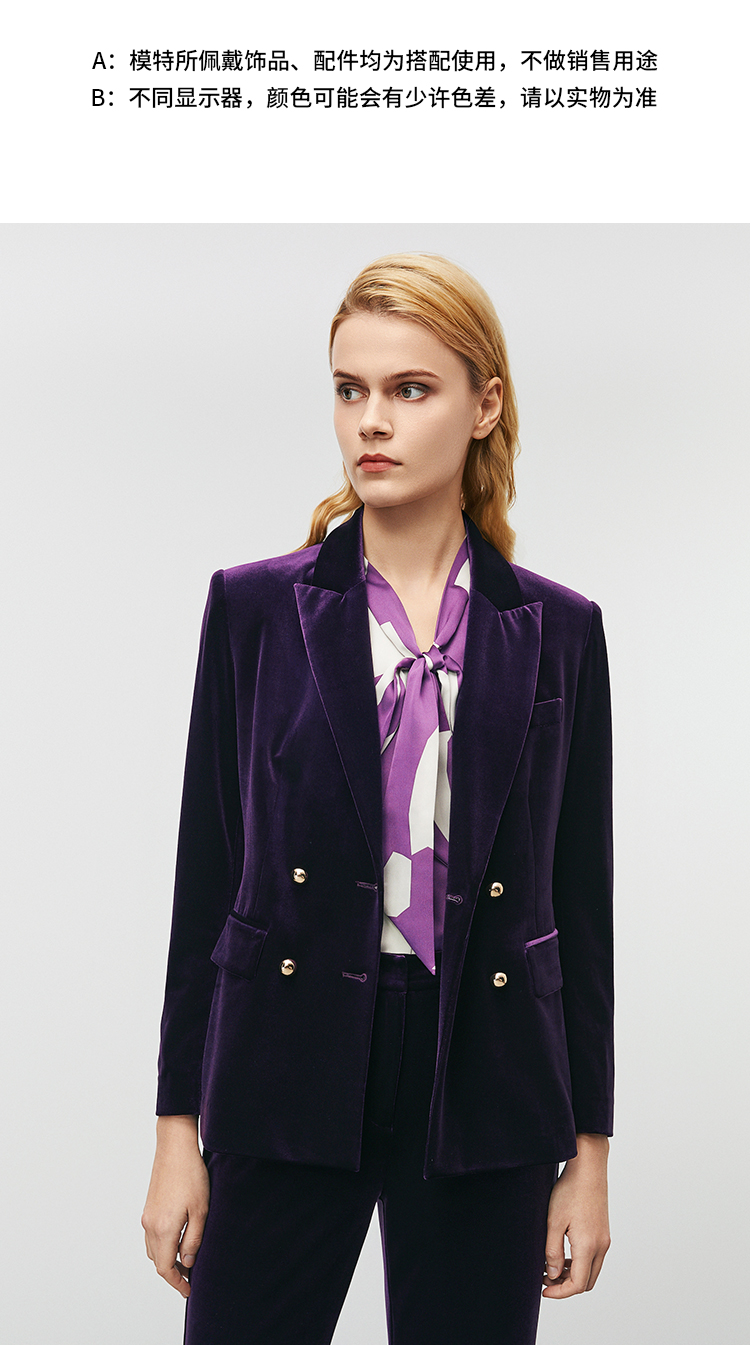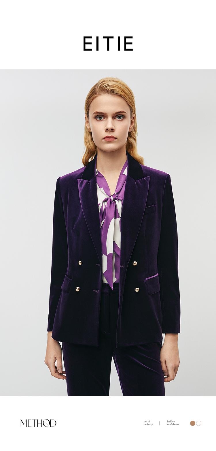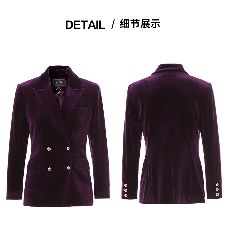 EITIE爱特爱秋季新款高级感复古丝绒休闲挺括修身西装外套7903613