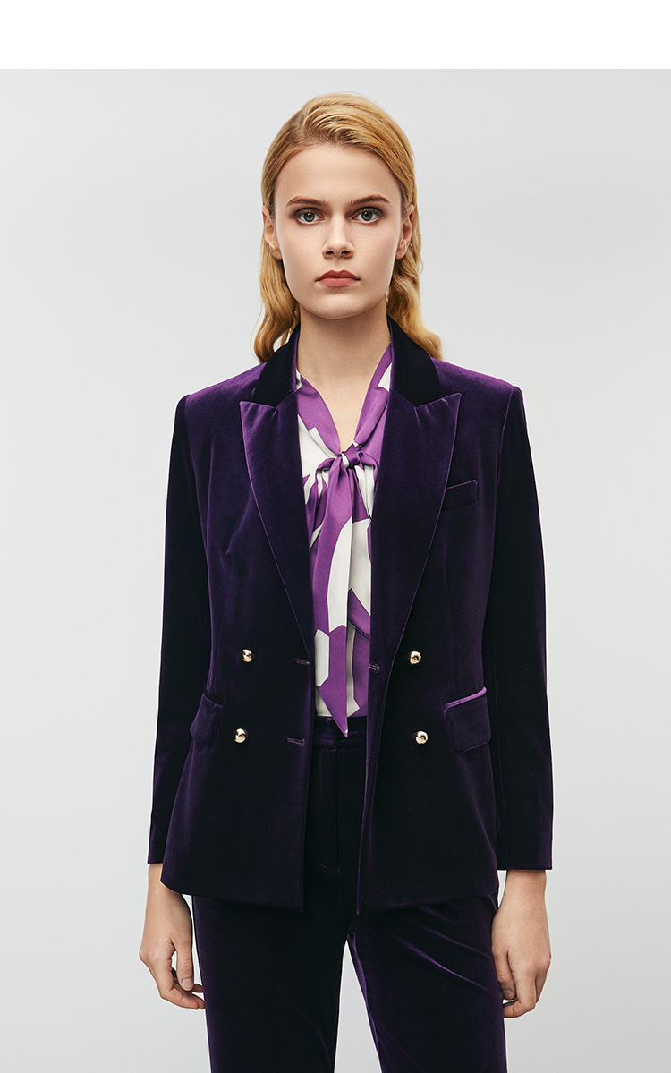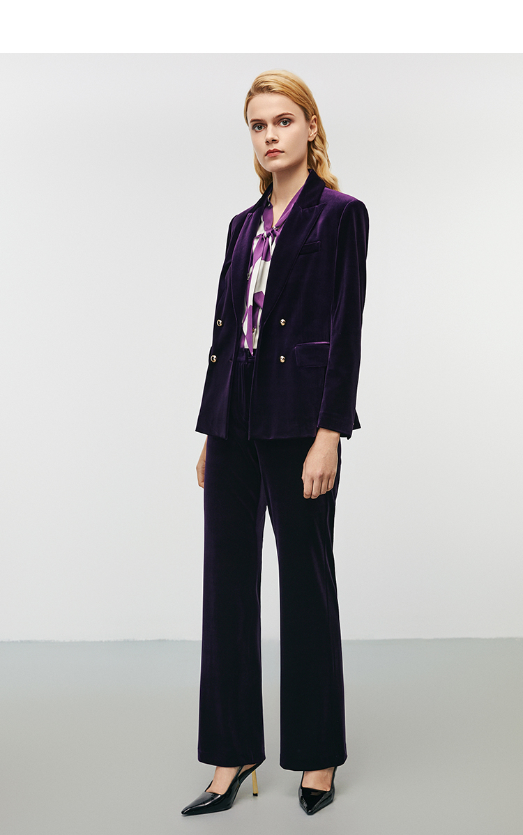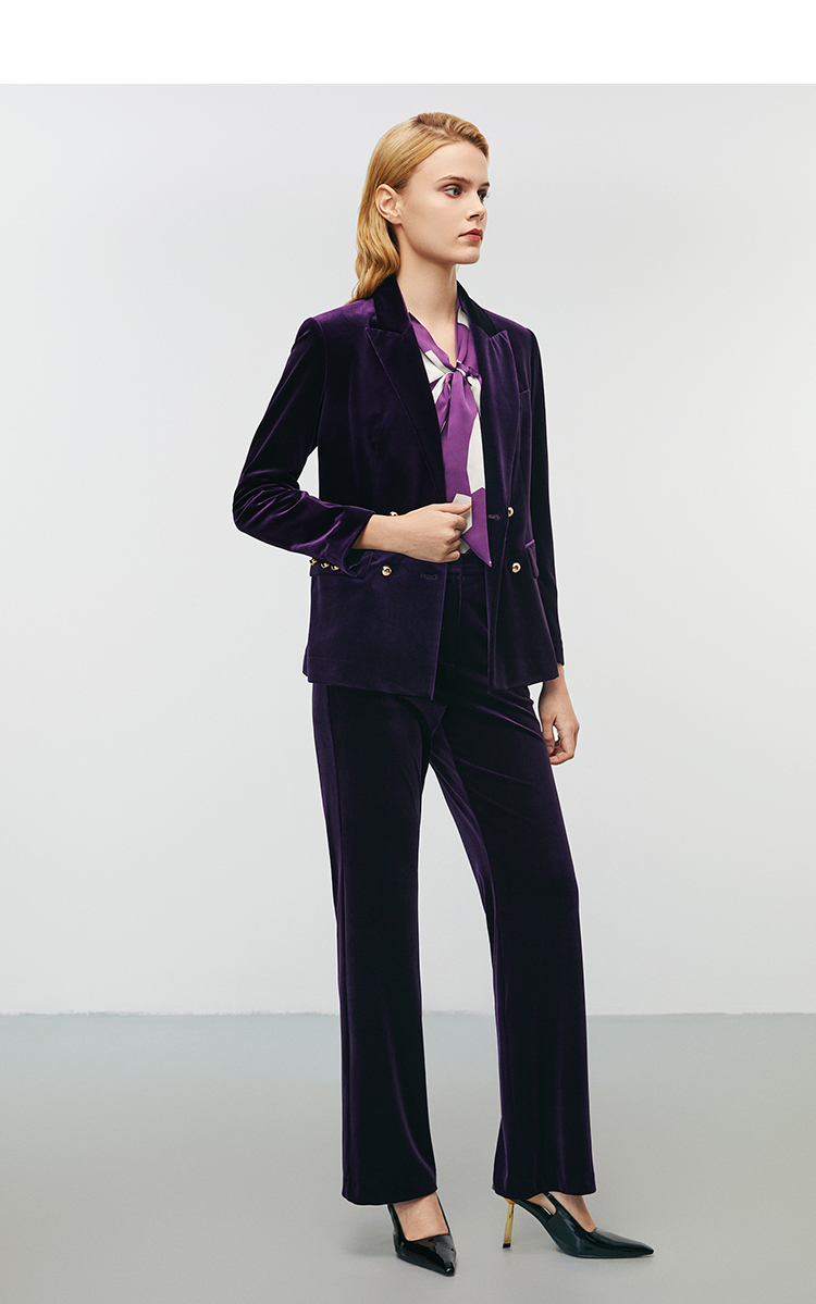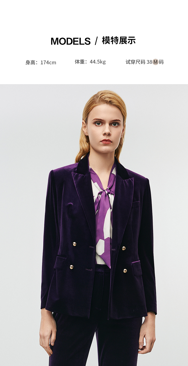 EITIE爱特爱秋季新款高级感复古丝绒休闲挺括修身西装外套7903613