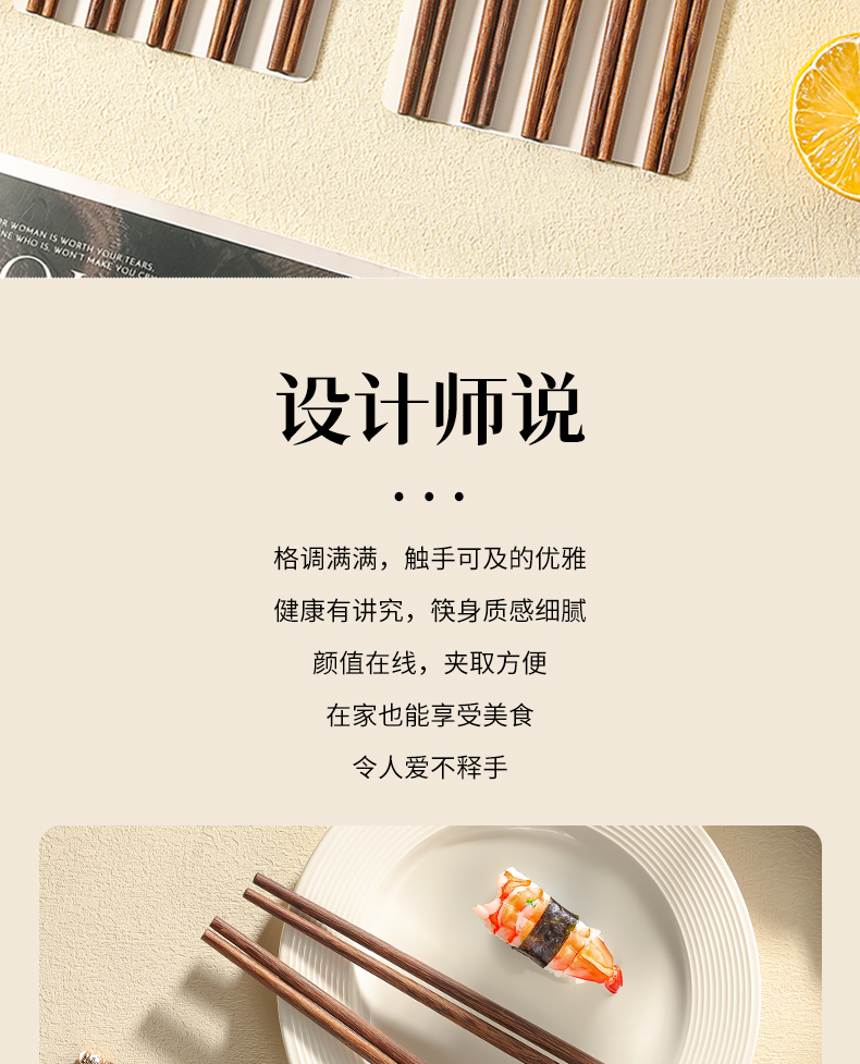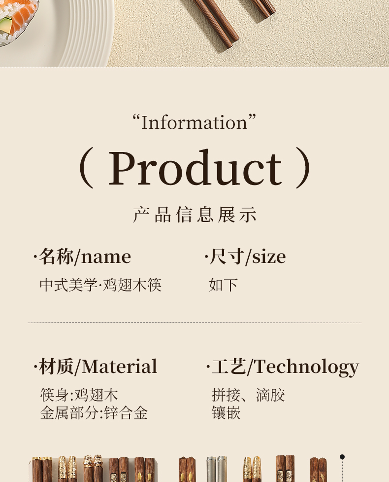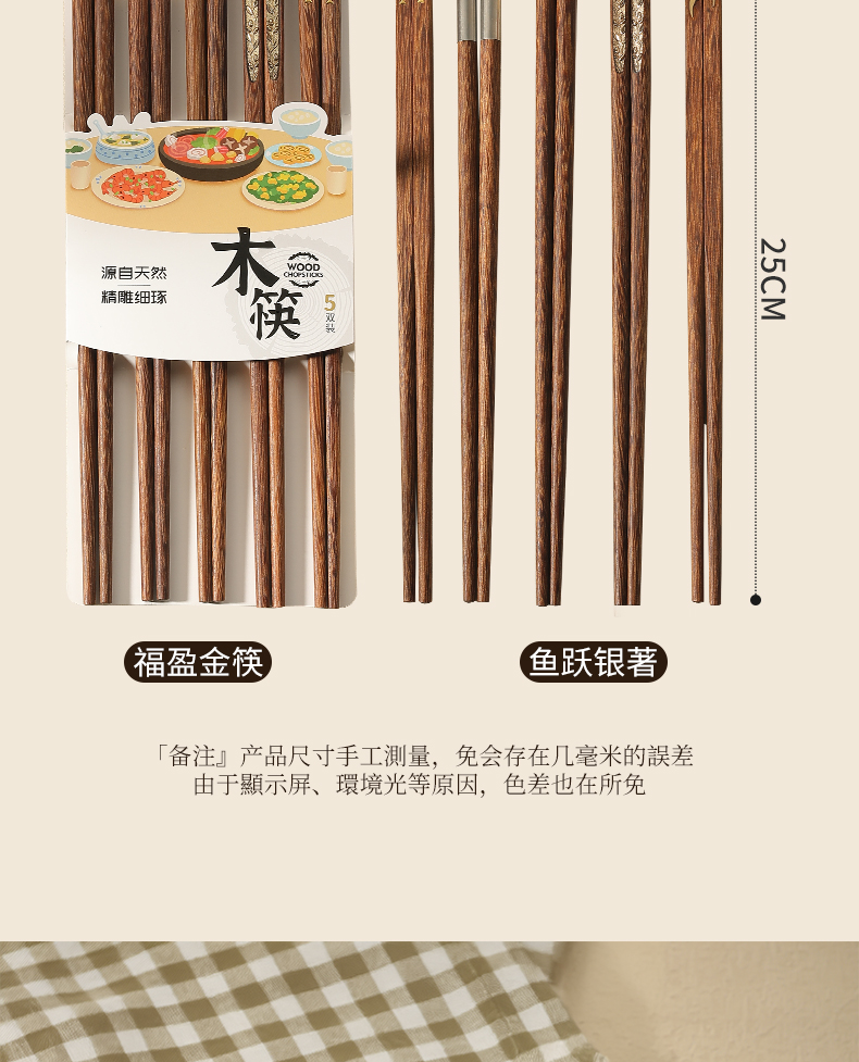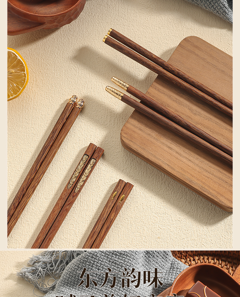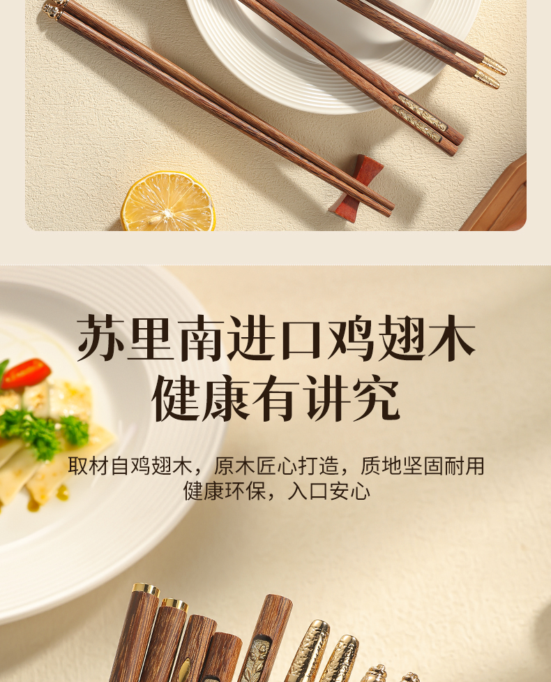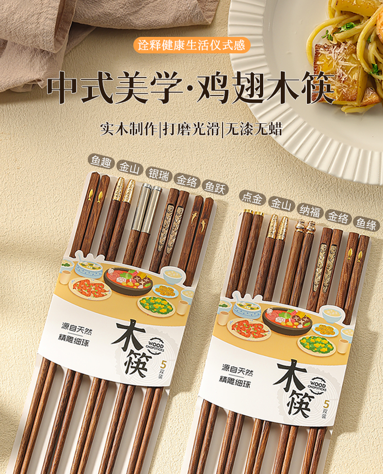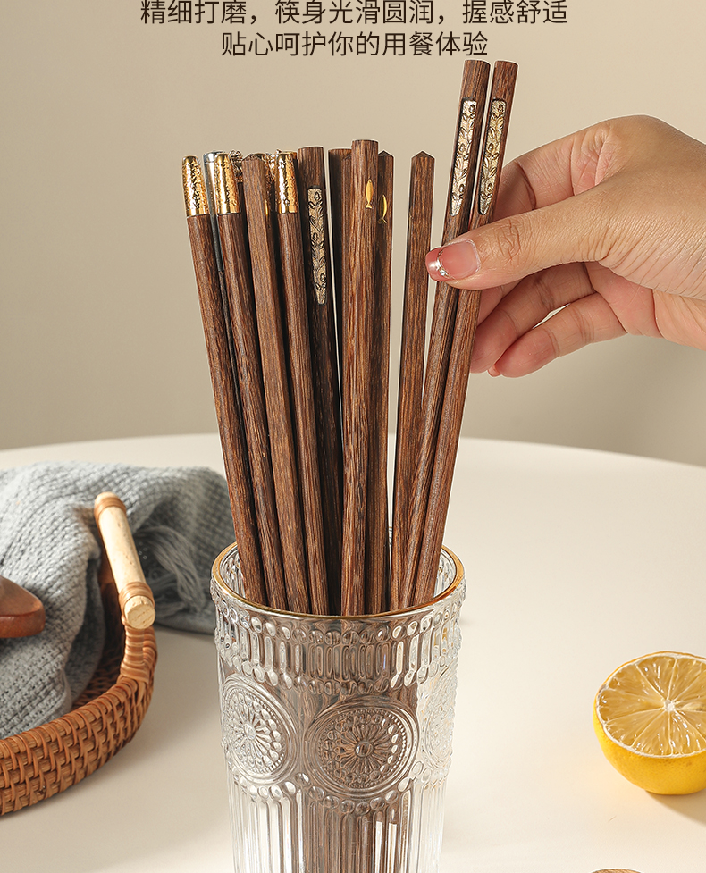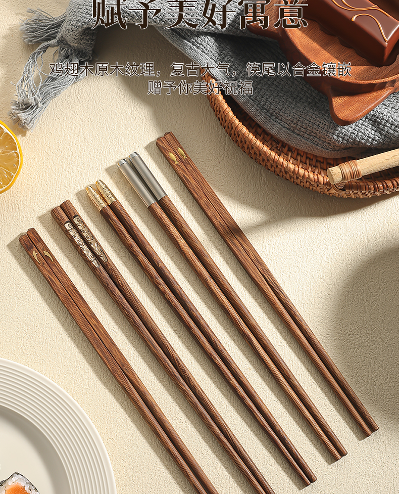 福盈金筷鸡翅木筷礼盒套装(五双装)