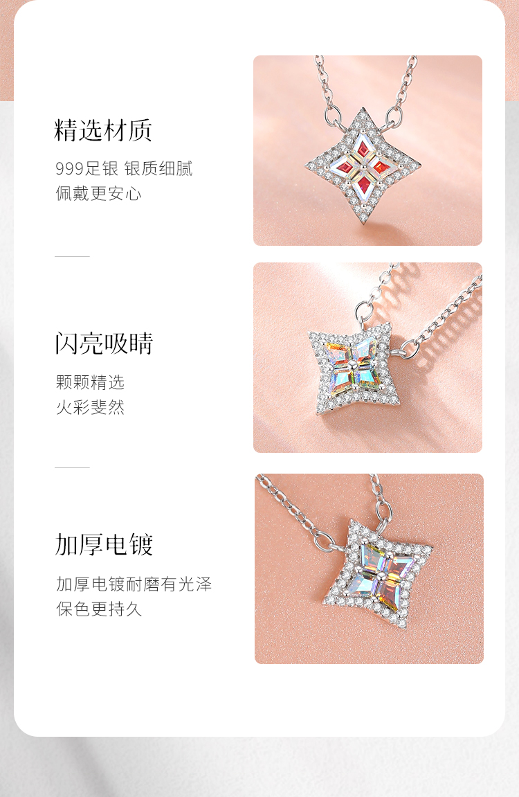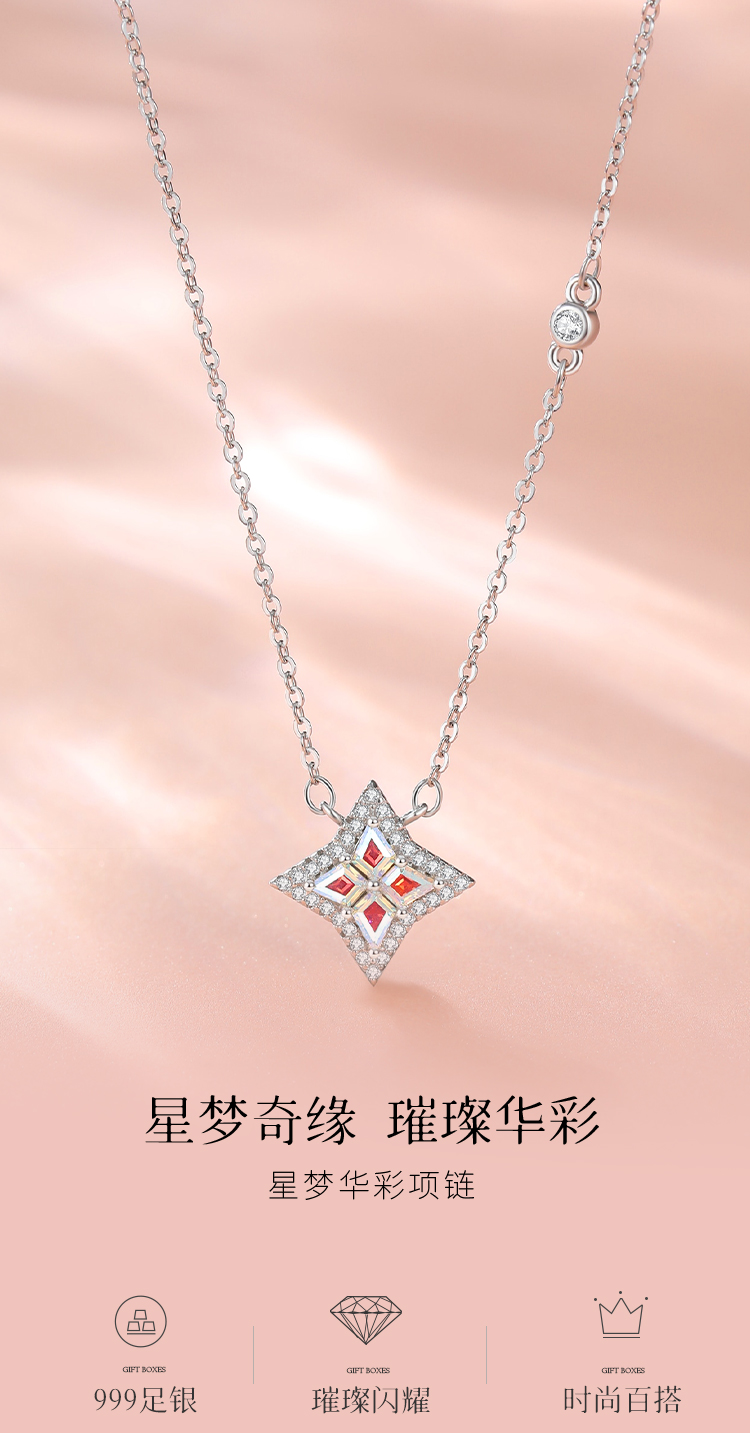 Winy999足银星梦华彩项链配证书送女友闺蜜节日生日礼物