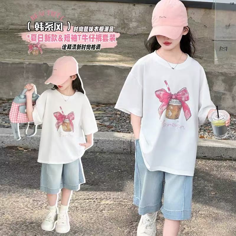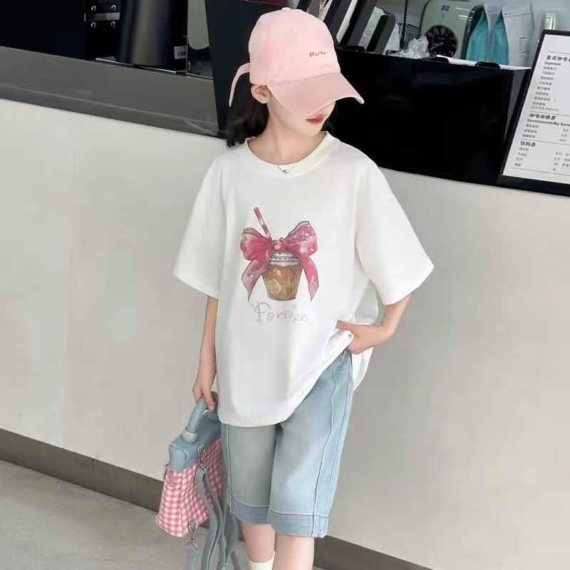 19.9清仓【100%棉】男童女童 (大图-蝴蝶结奶茶)印花T短袖2025-喜出