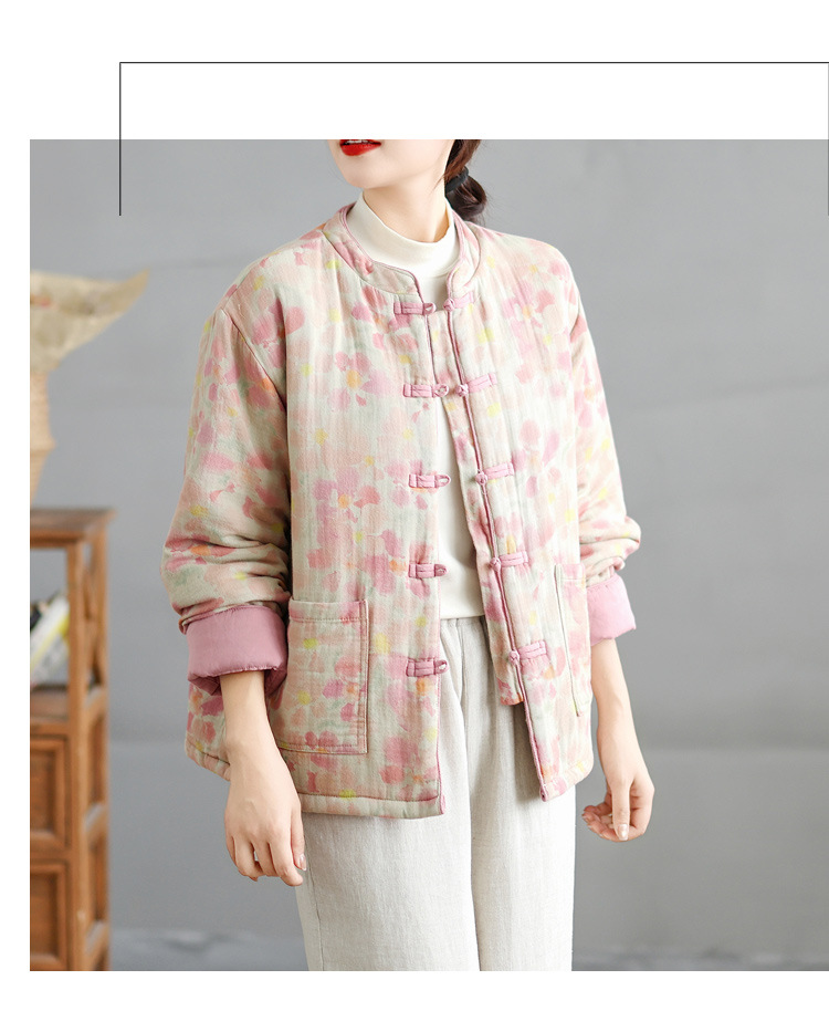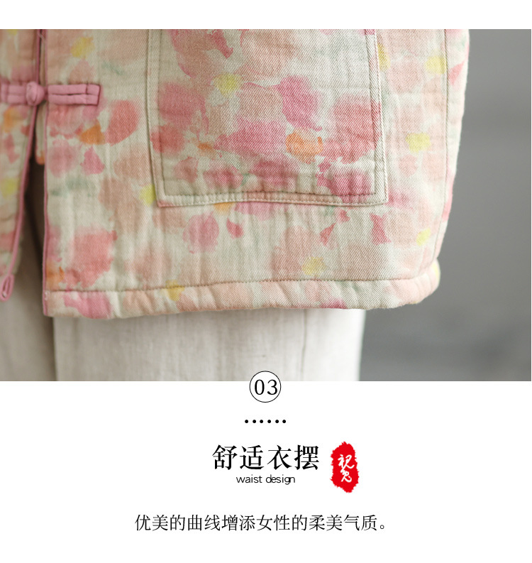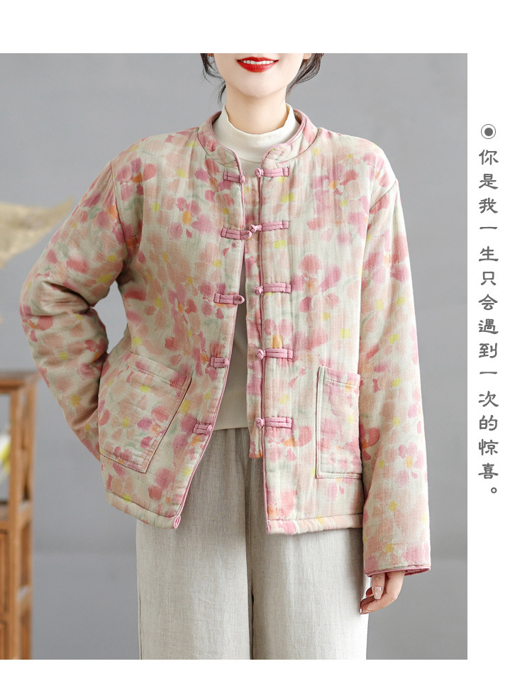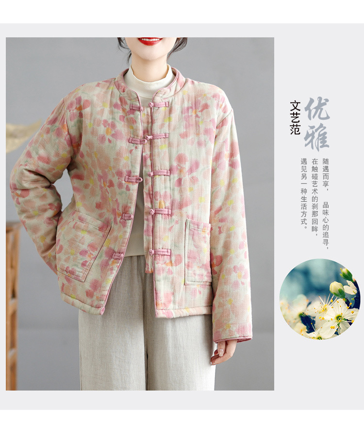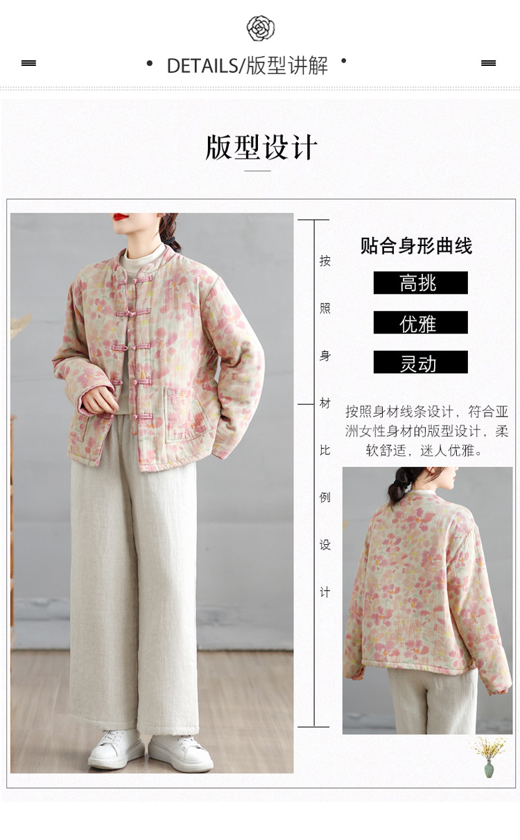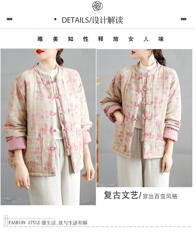 GYH C053-6250复古文艺印花棉质夹棉盘扣保暖外套宽松棉服棉衣