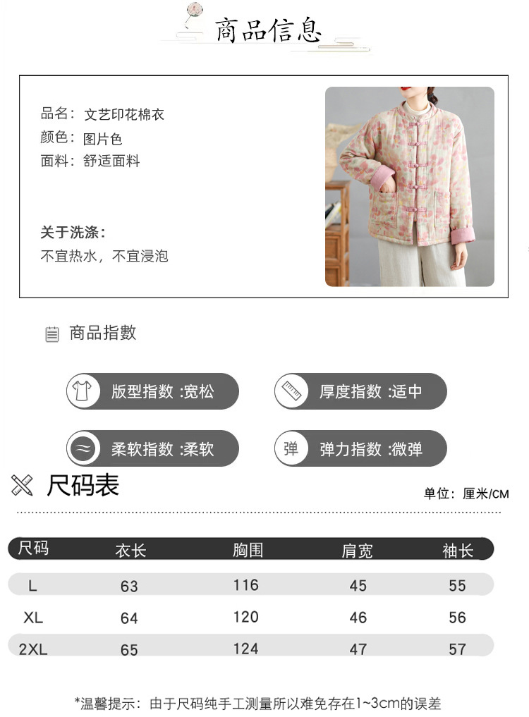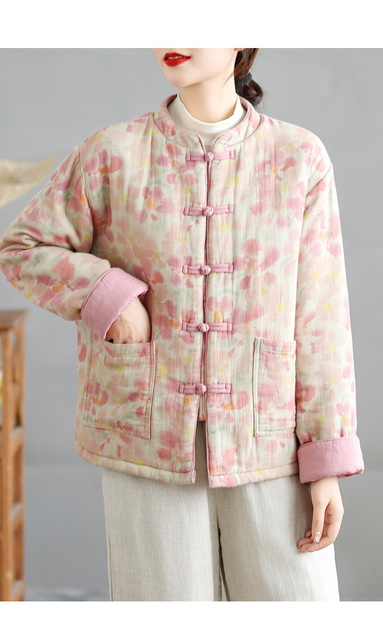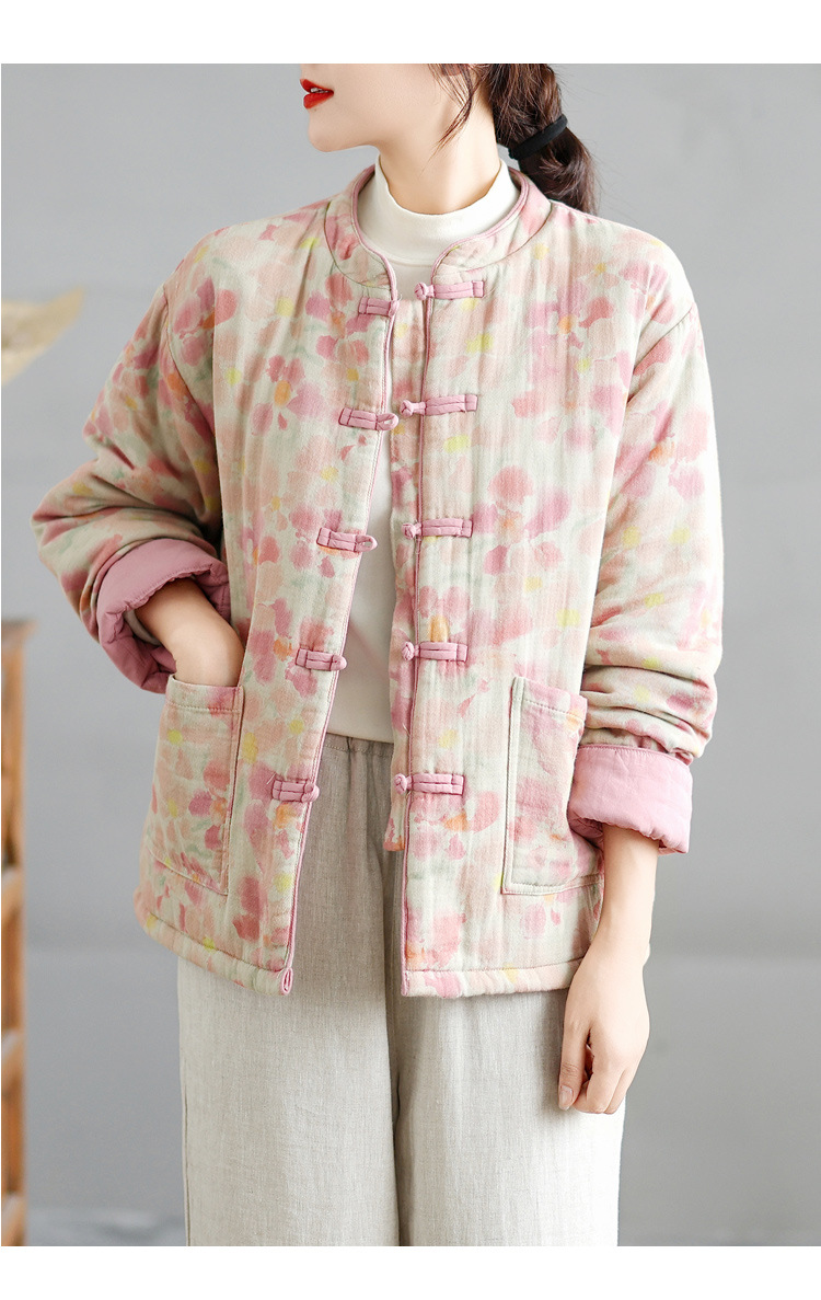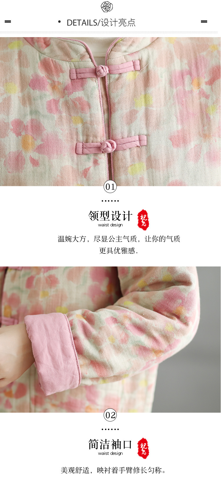 GYH C053-6250复古文艺印花棉质夹棉盘扣保暖外套宽松棉服棉衣