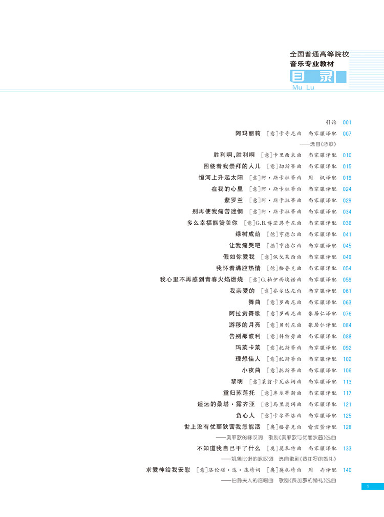 本书主要针对水平相对较高的声乐教学要求,作者从声乐(1-4)4册简谱歌曲中精心挑选了近100多首经典的外国民歌、艺术歌曲、歌剧作品,为五线谱带钢琴伴奏,所编歌曲兼顾了声乐初、中、高各级程度的教学需要。这100多首曲目分别编为2册,本书为第1册。学生通过各阶段循序渐进地学习,选择相应难度曲目进行演唱,可逐步提高其演唱能力和音乐审美与表达能力。
