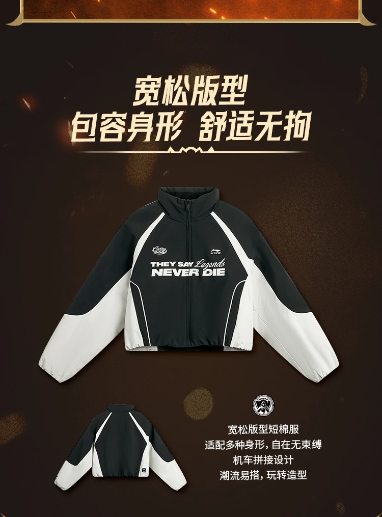 李宁 x LPL联名系列女子防泼水防风排湿保暖宽松短棉服AJMV170