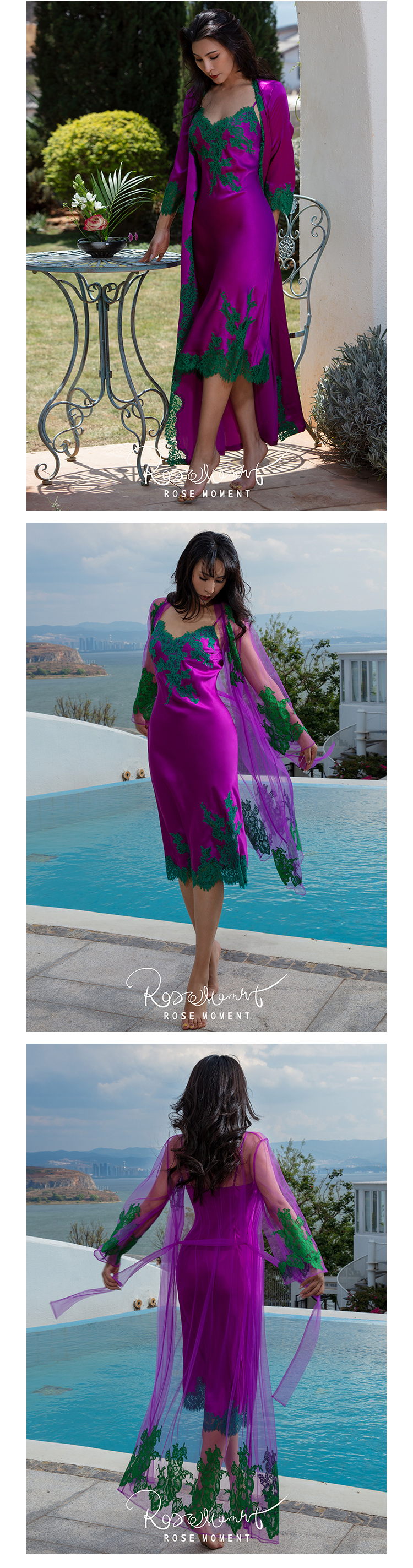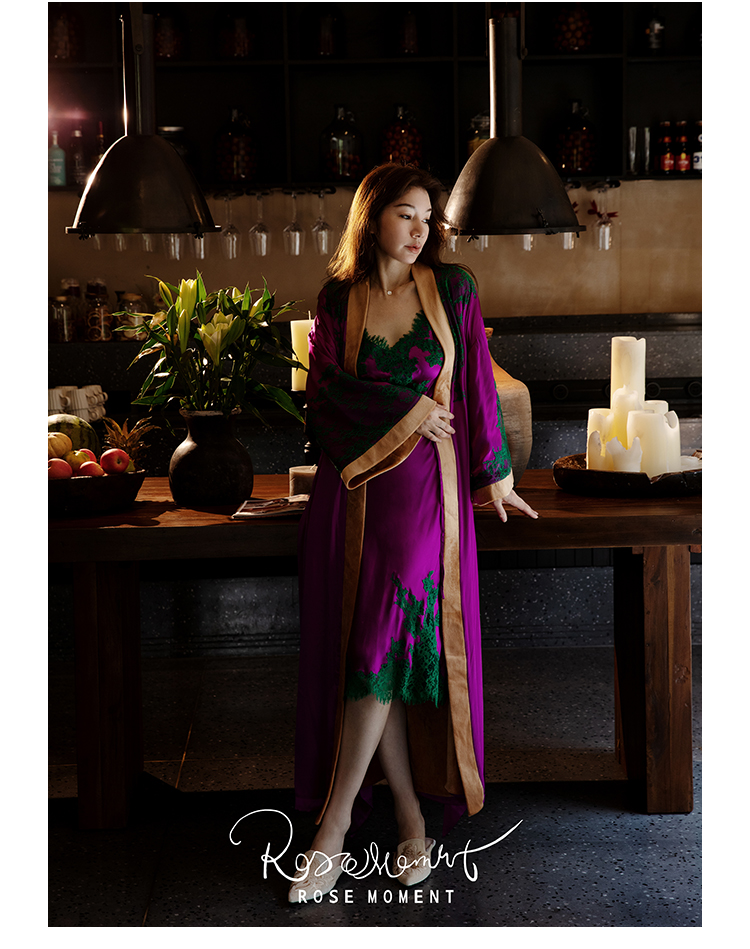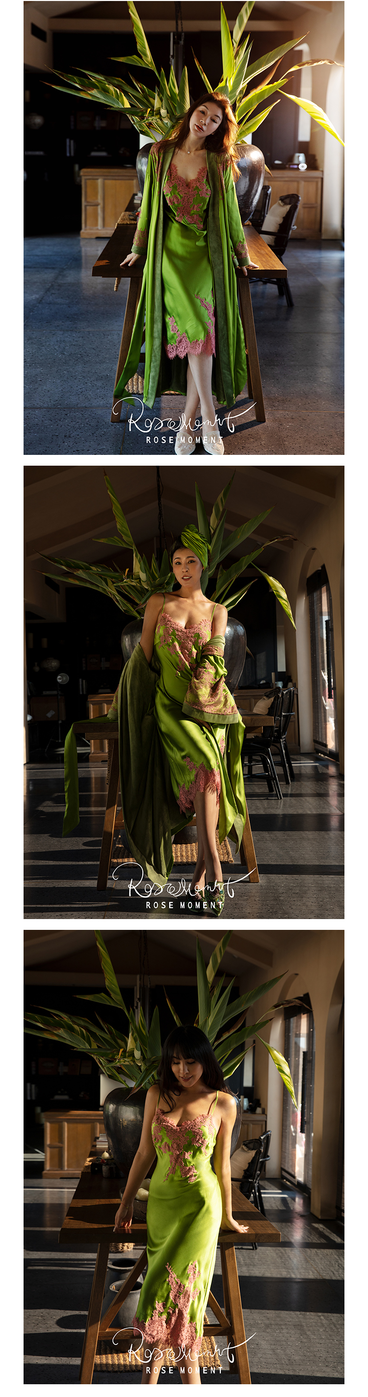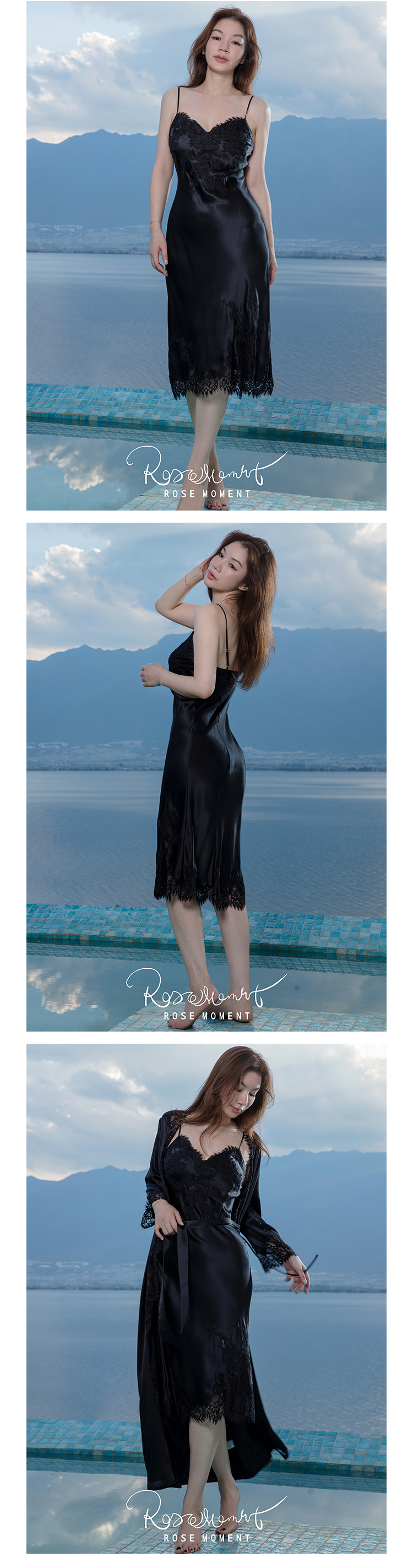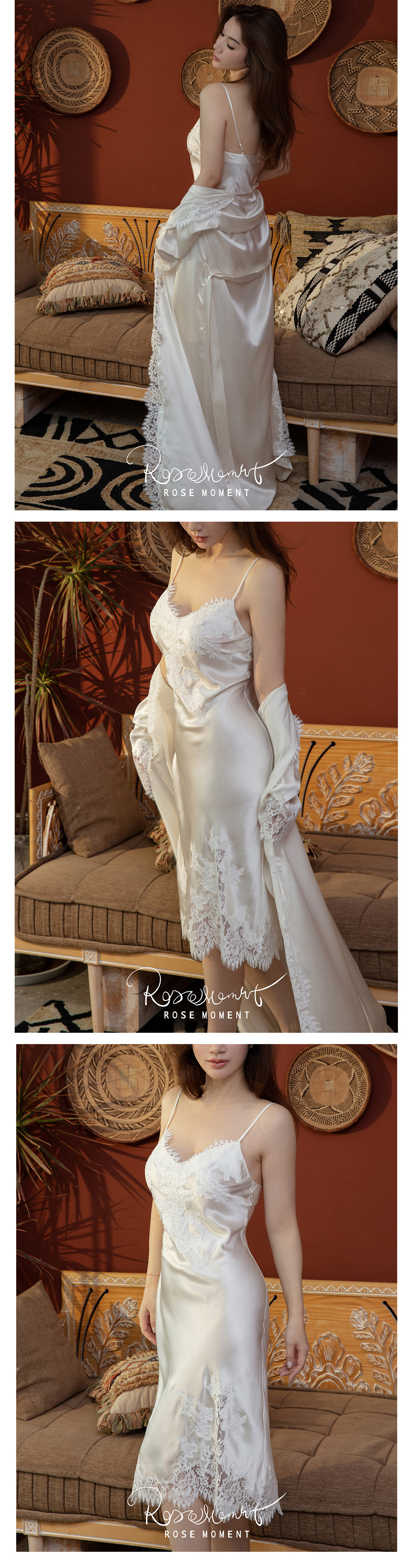 微喇袖背部蕾丝设计 真丝长袖长裤套装 T221016