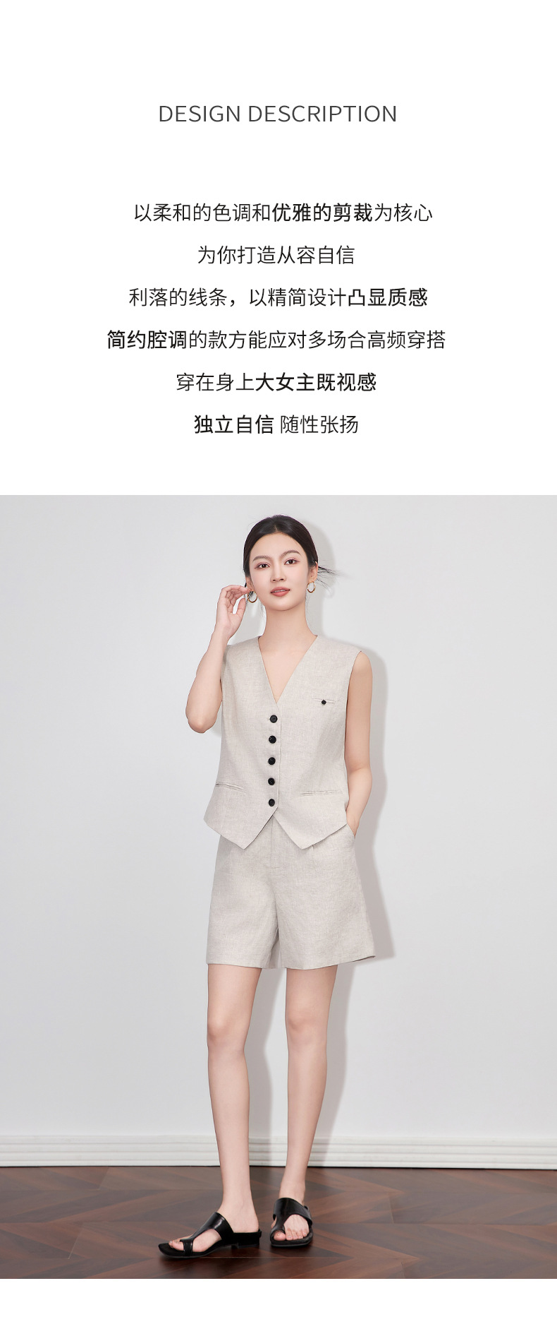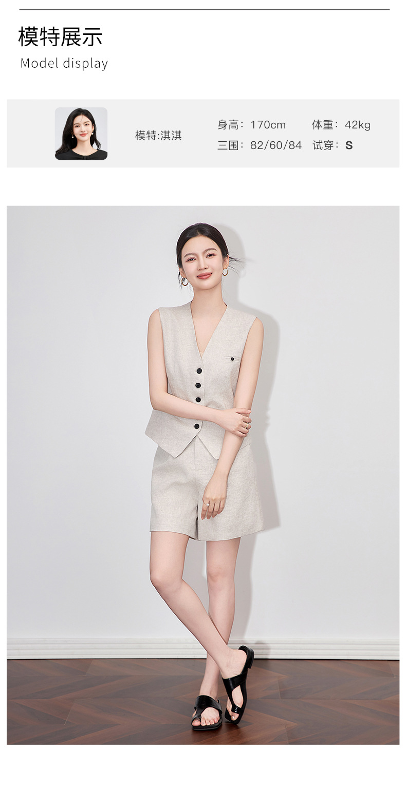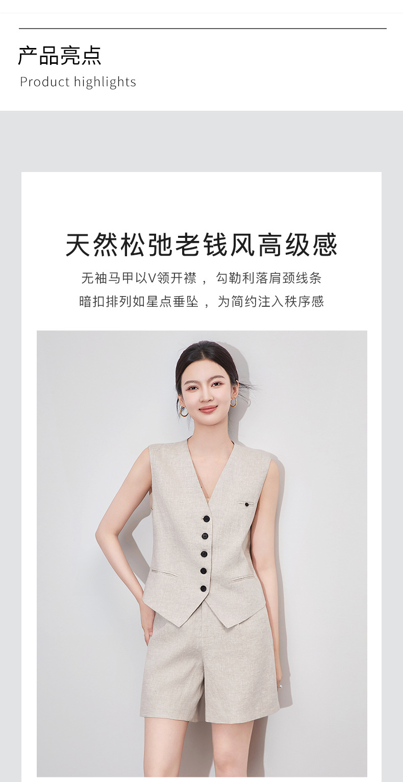 「高货wl」全新升级【铂金会员431/天猫579/差价148】(99509)洛诗琳高品质V领西装背心马甲休闲简约通勤亚麻两件套女