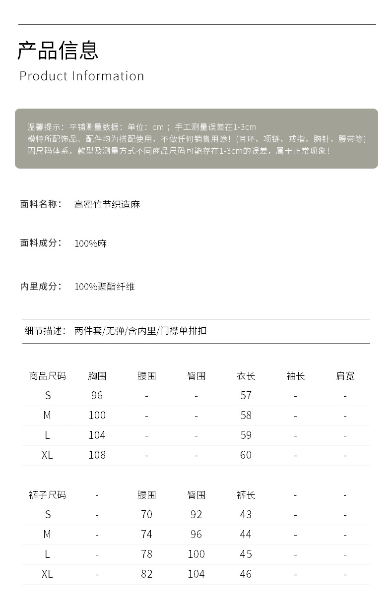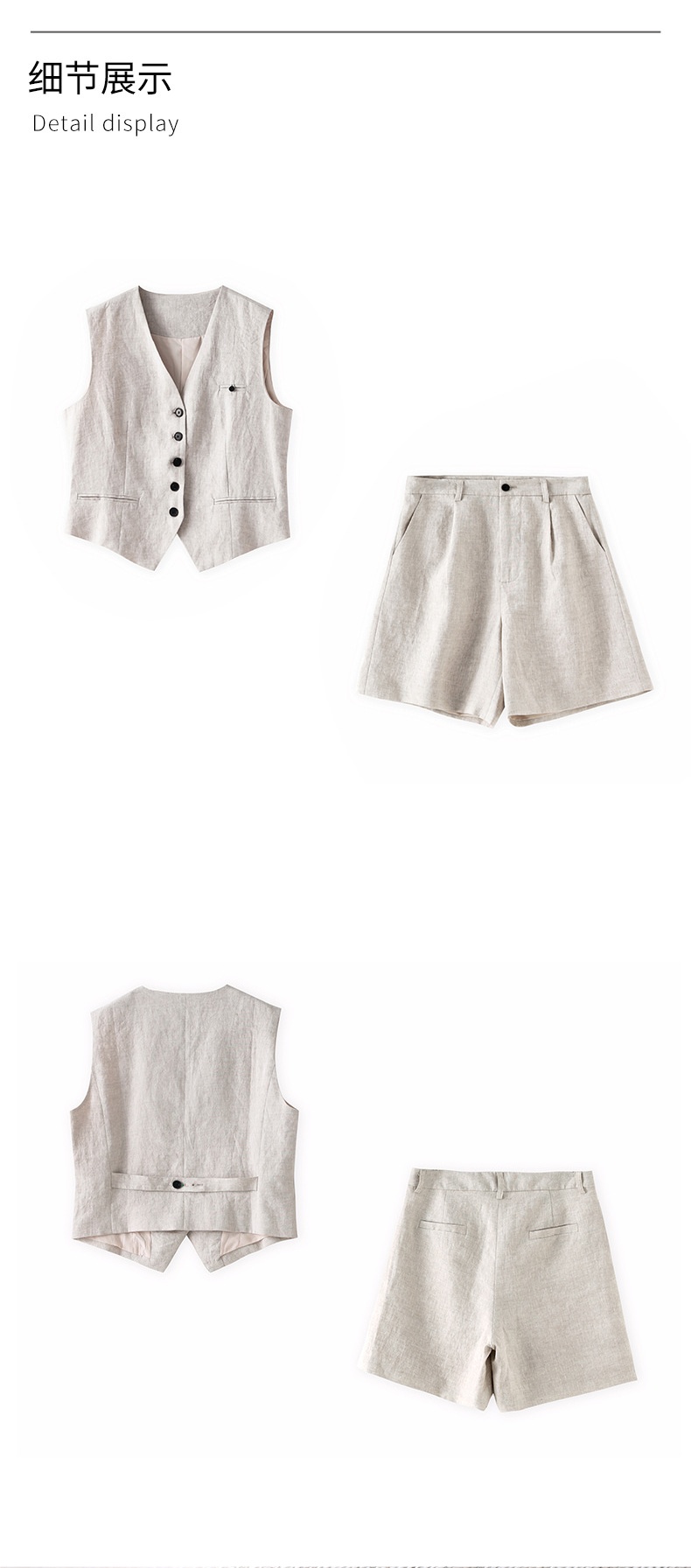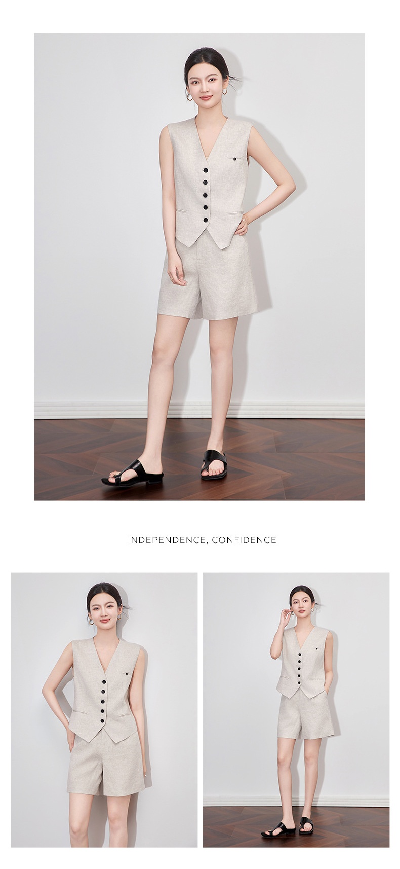 「高货wl」全新升级【铂金会员431/天猫579/差价148】(99509)洛诗琳高品质V领西装背心马甲休闲简约通勤亚麻两件套女