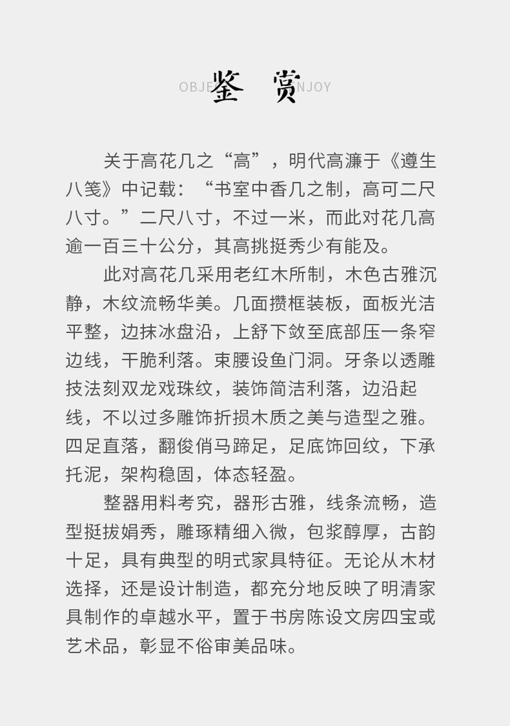 清代 红木双龙戏珠透雕牙板高花几(一对)