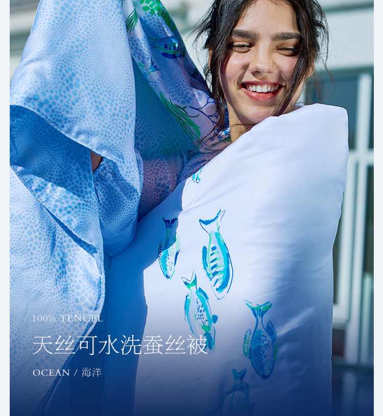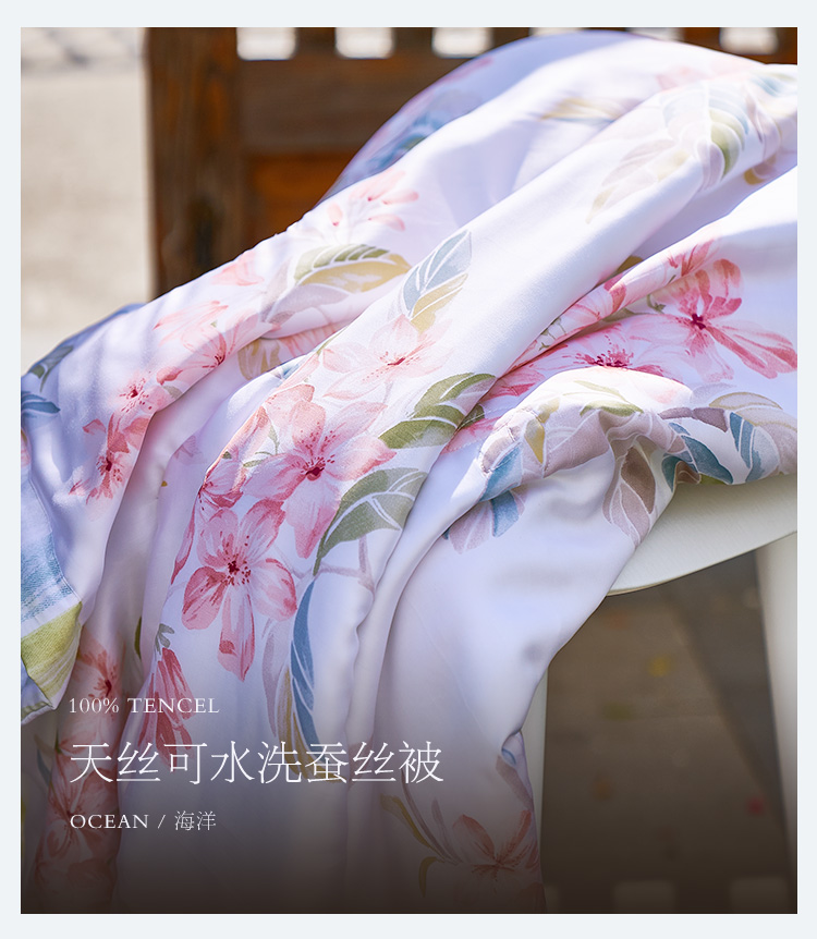 馨亭 新品天丝可水洗蚕丝被空调被单双人夏凉被亲肤印花薄被狄安娜