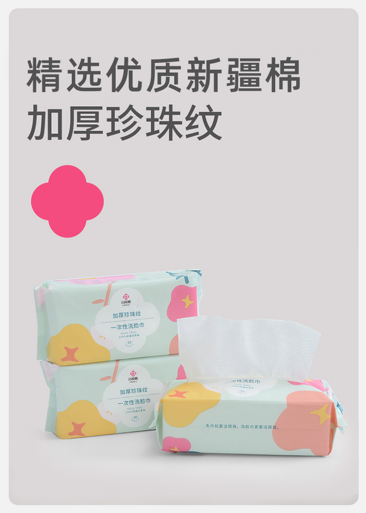 干湿两用 0添加 | 洁丽雅纯棉加厚珍珠纹一次性洗脸巾 50片/包*3包装