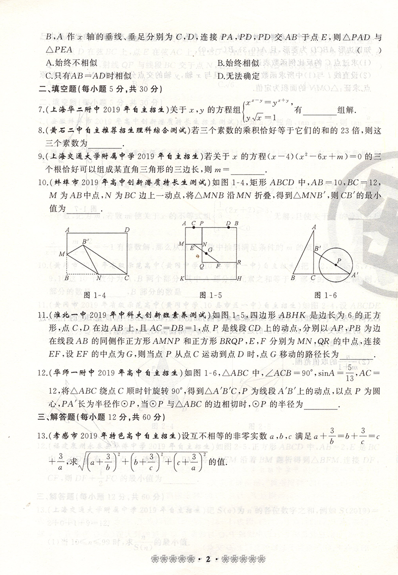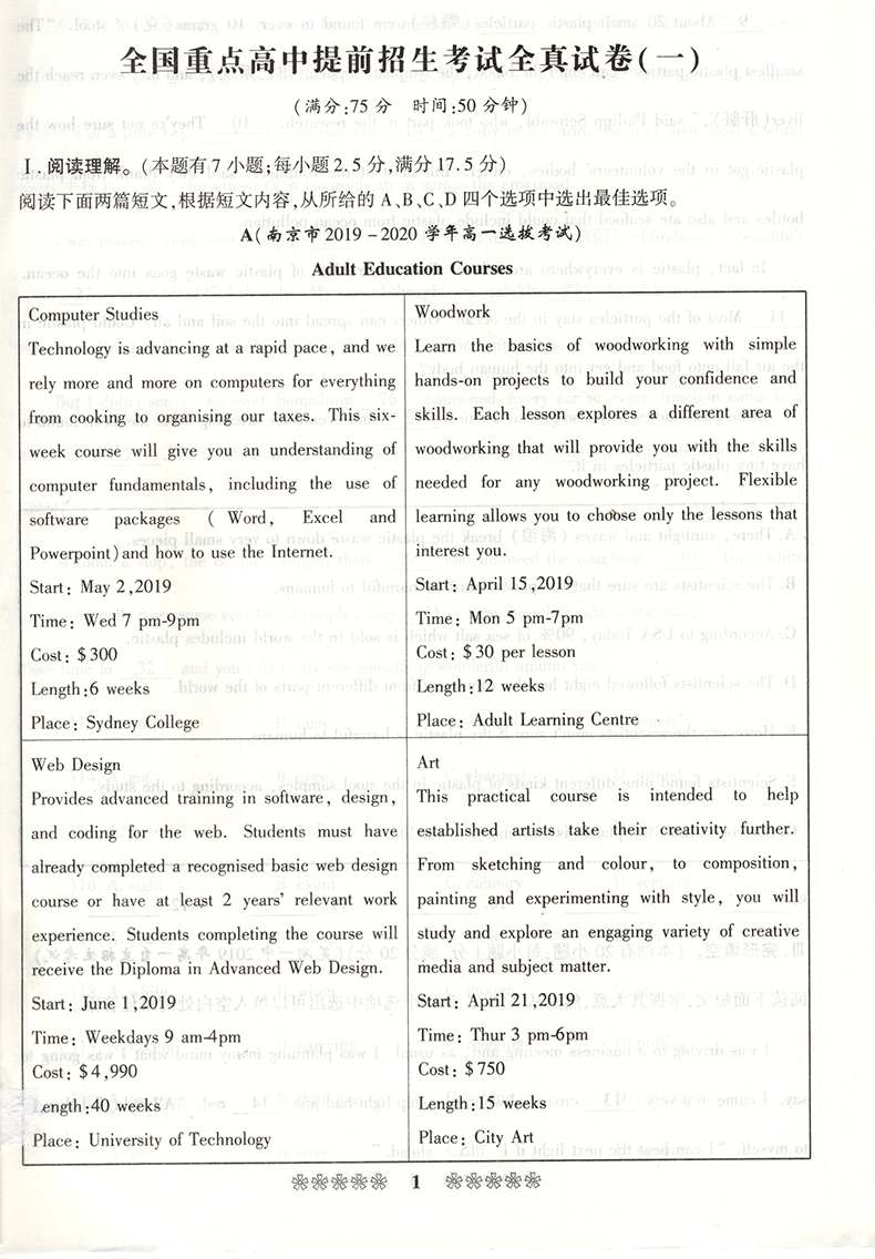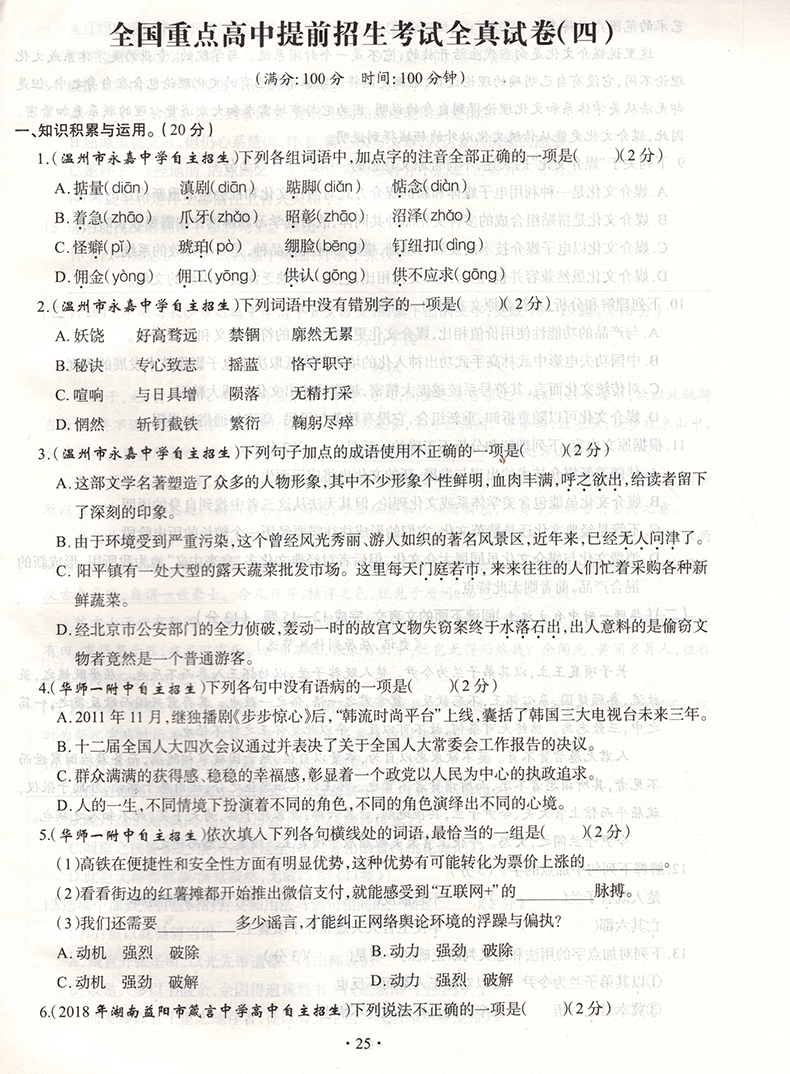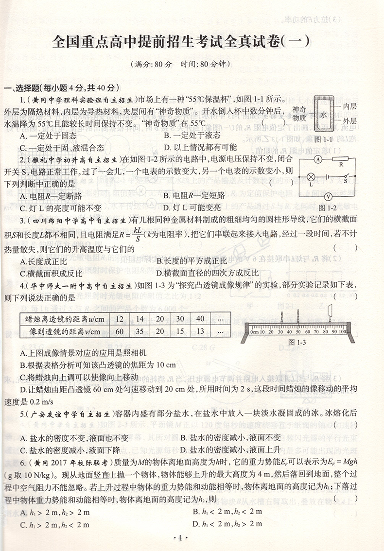 新赛场大阅兵重点高中提前招生考试全真试卷语文数学英语科学物理化学