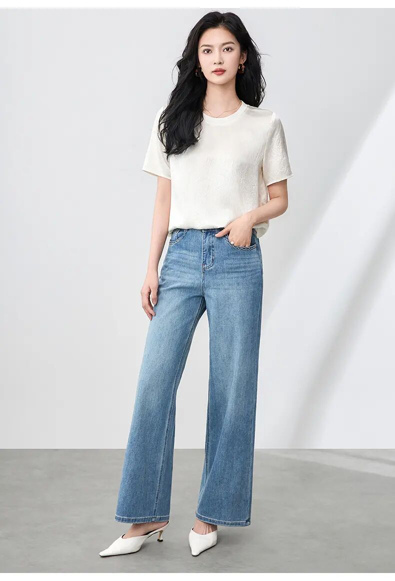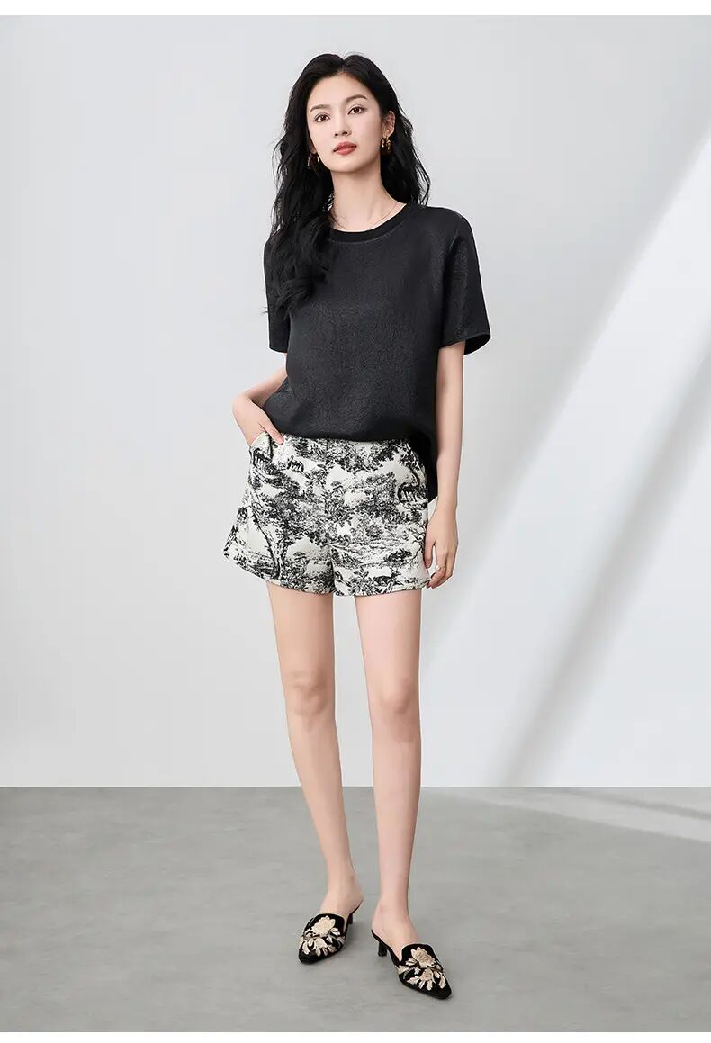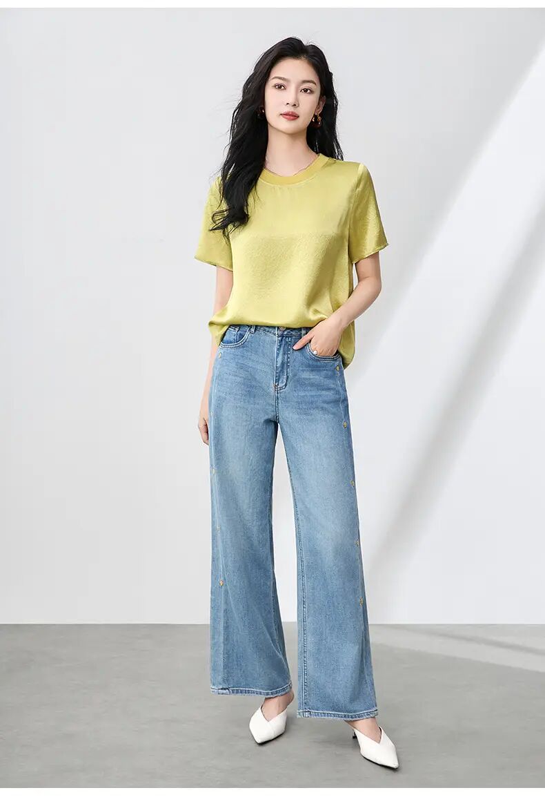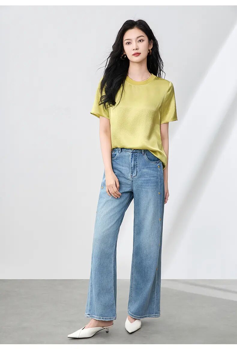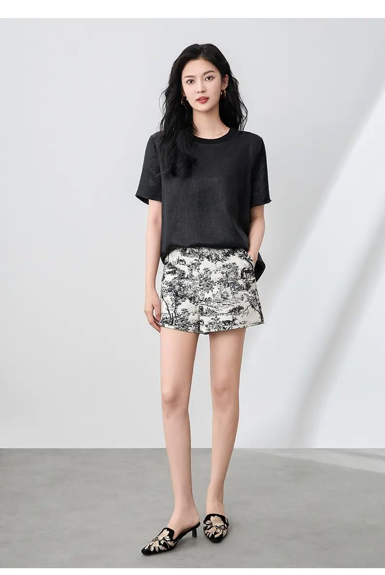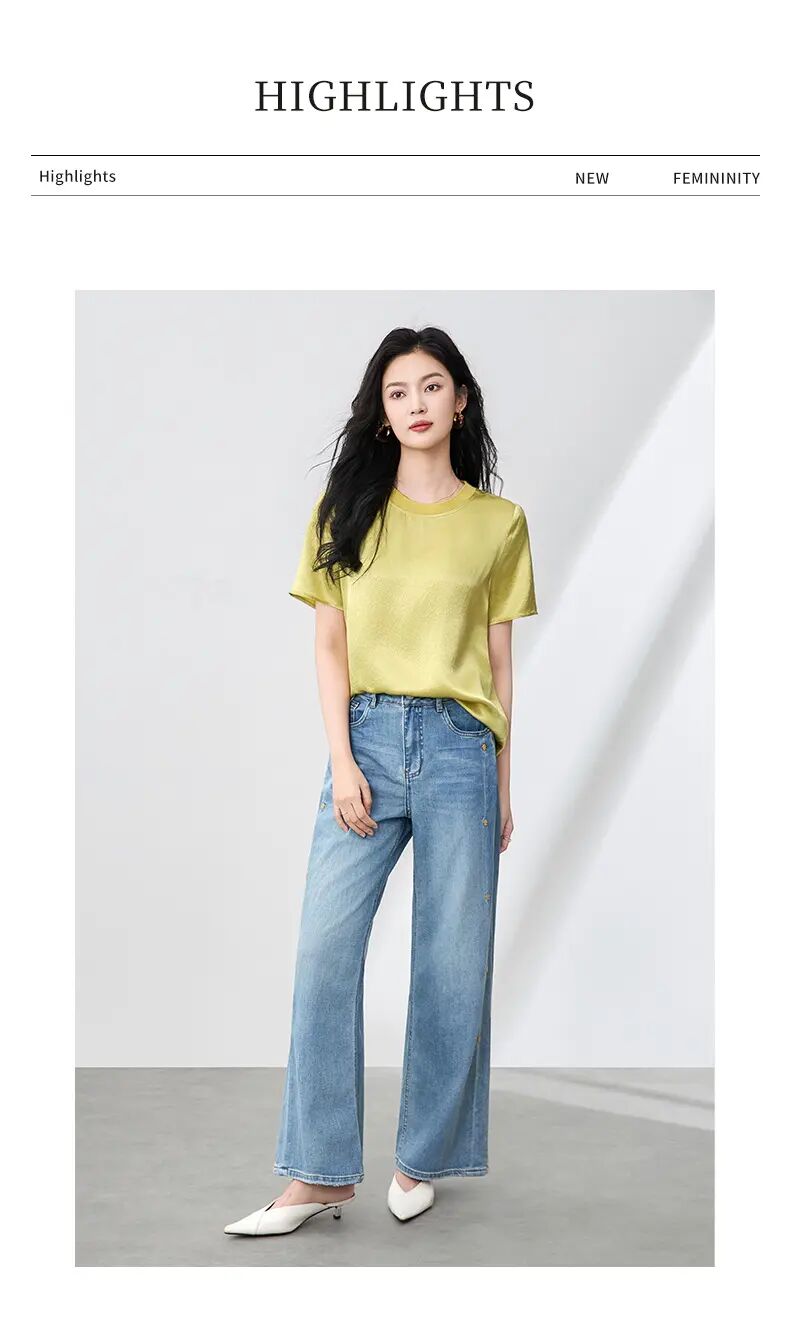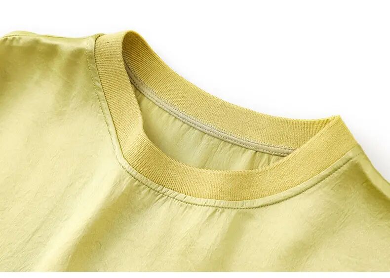 【高货wl】全新升级【铂金会员211/天猫279/差价68】(94632) 洛诗琳女夏新款时尚宽松凉感抓绉醋酸缎面T恤简约短袖上衣