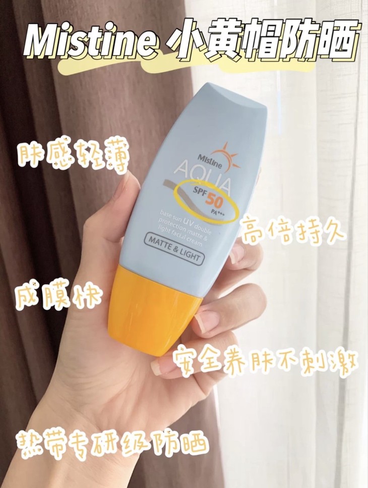 泰国Mistine小黄帽面部防晒40ml👍防晒C位😎,颜值与实力共存的哑光无油防晒霜,周密防护让你无惧紫外线☀。含有天然成分防晒的同时又养肤,做到养护合一,预防光老化👊。质地清爽透气不油腻,延展性好容易推开,持久防水的能力也是Super级别的,完全可以闭眼入💛。SPF50/PA+++独家热带防晒黑科技,泰国的毒太阳都不怕,小黄帽防晒了解一下‼️