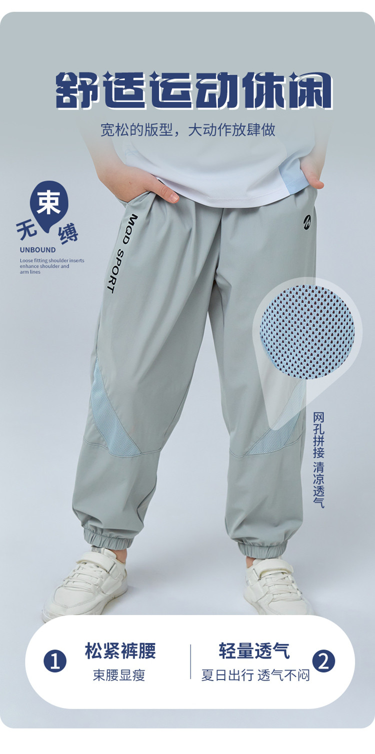 【MQD】童装男女大童夏新款儿童凉感透气网眼物理防蚊裤运动长裤