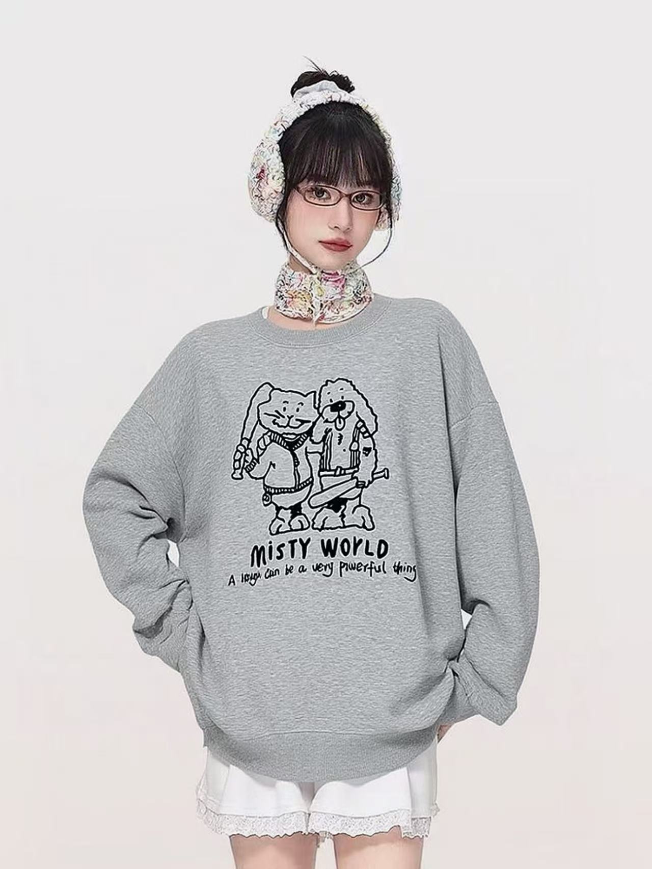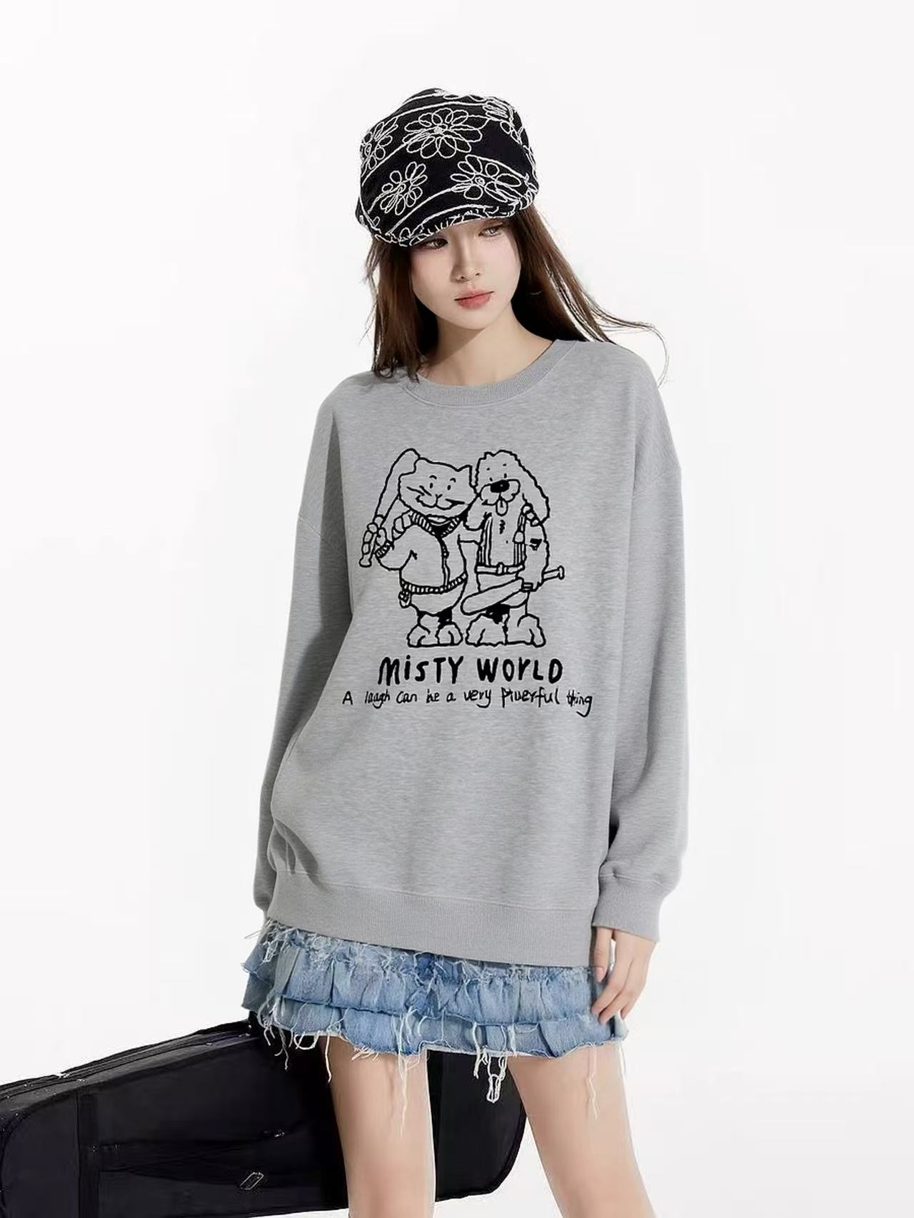 🔥🔥【潮牌卫衣】圆领牛奶绒~趣味卡通宽松加绒卫衣-喜出