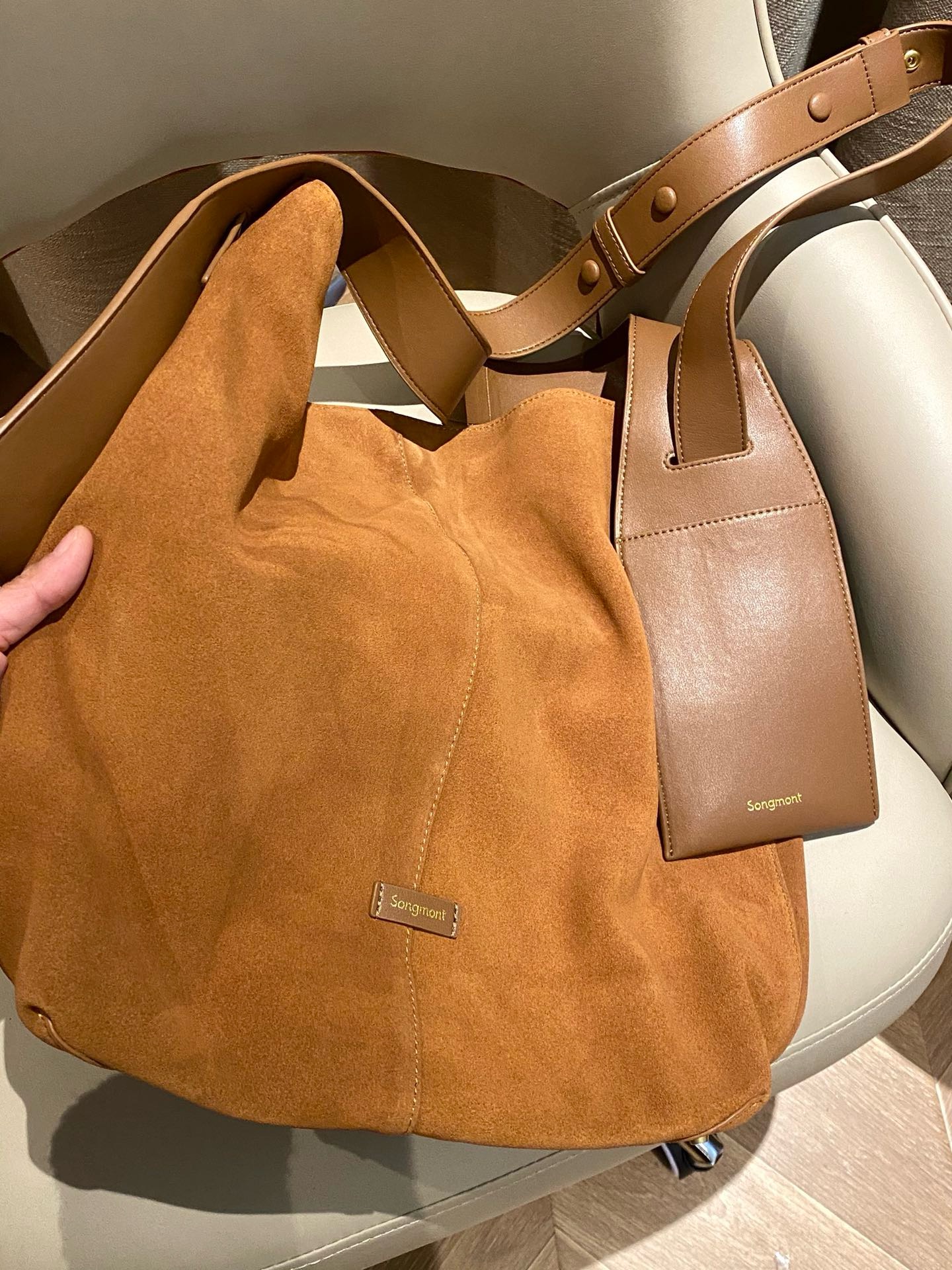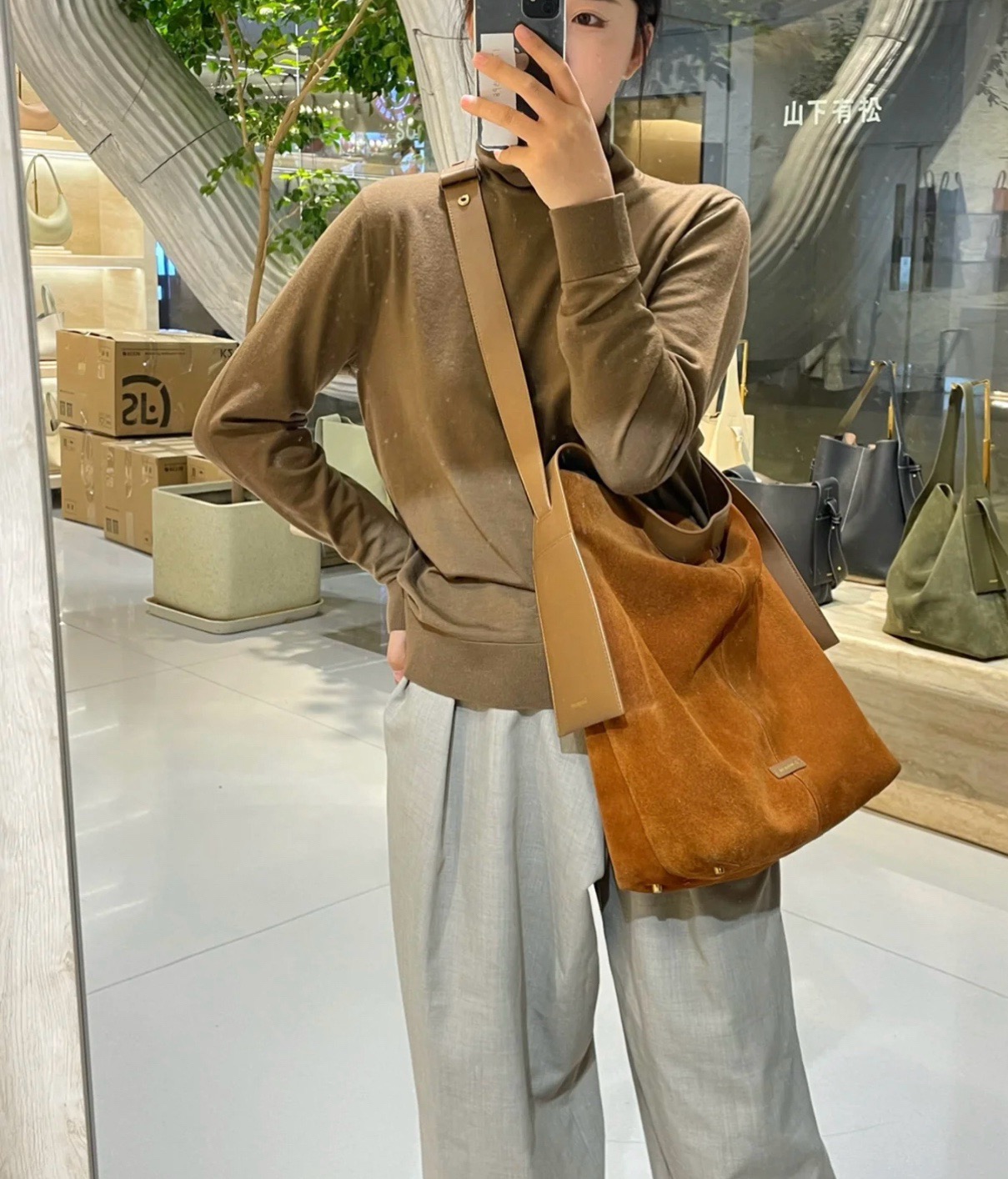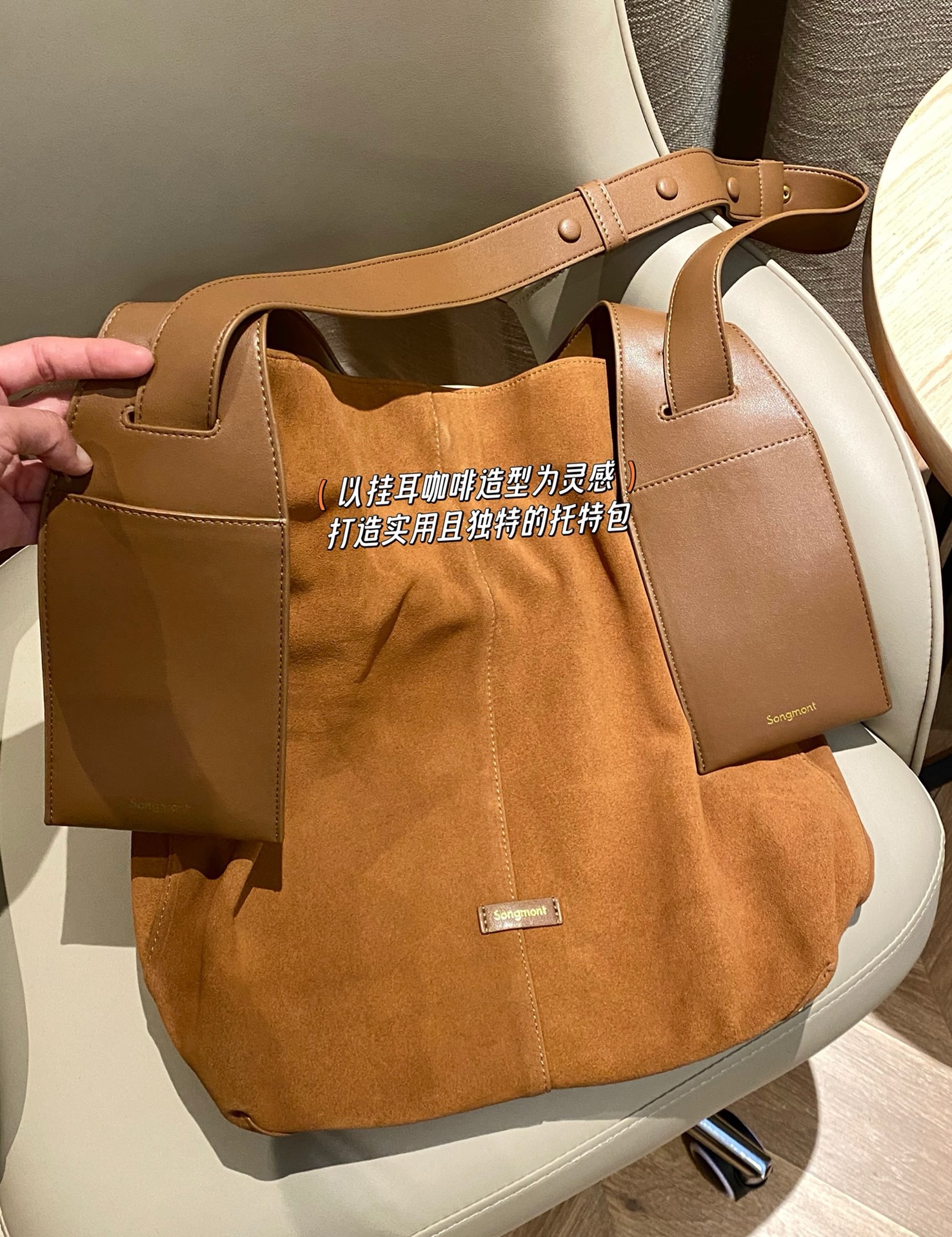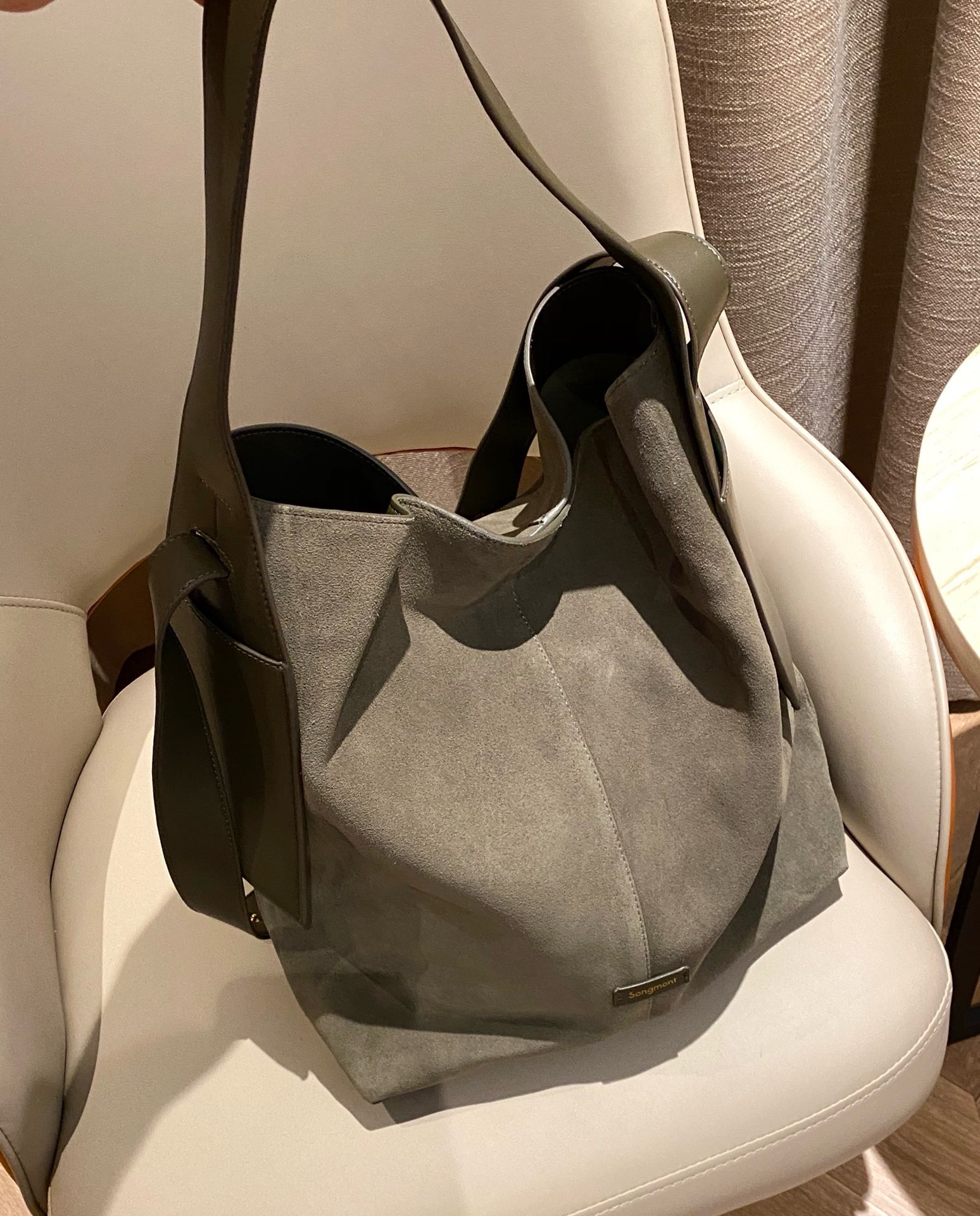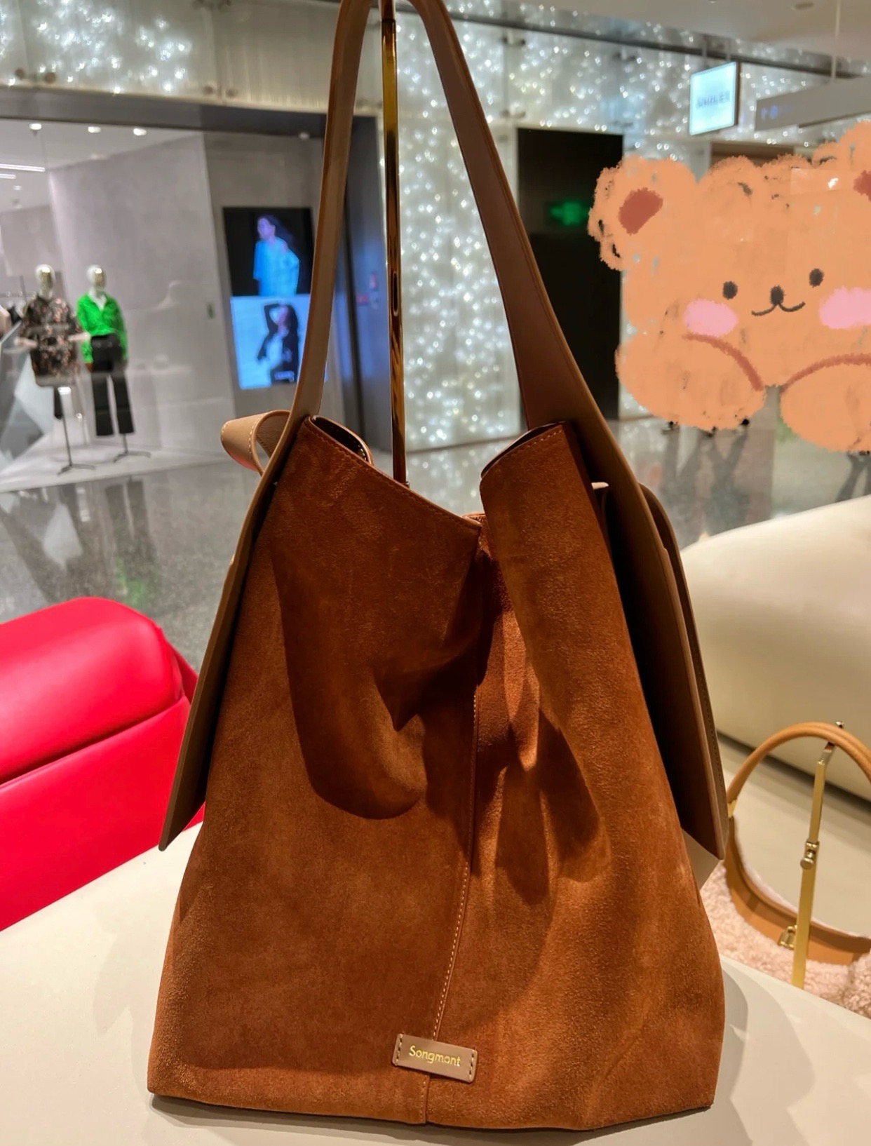 高圆圆同款!菘2580+!大号麂皮挂耳托特包通勤牛皮单肩手提包女,