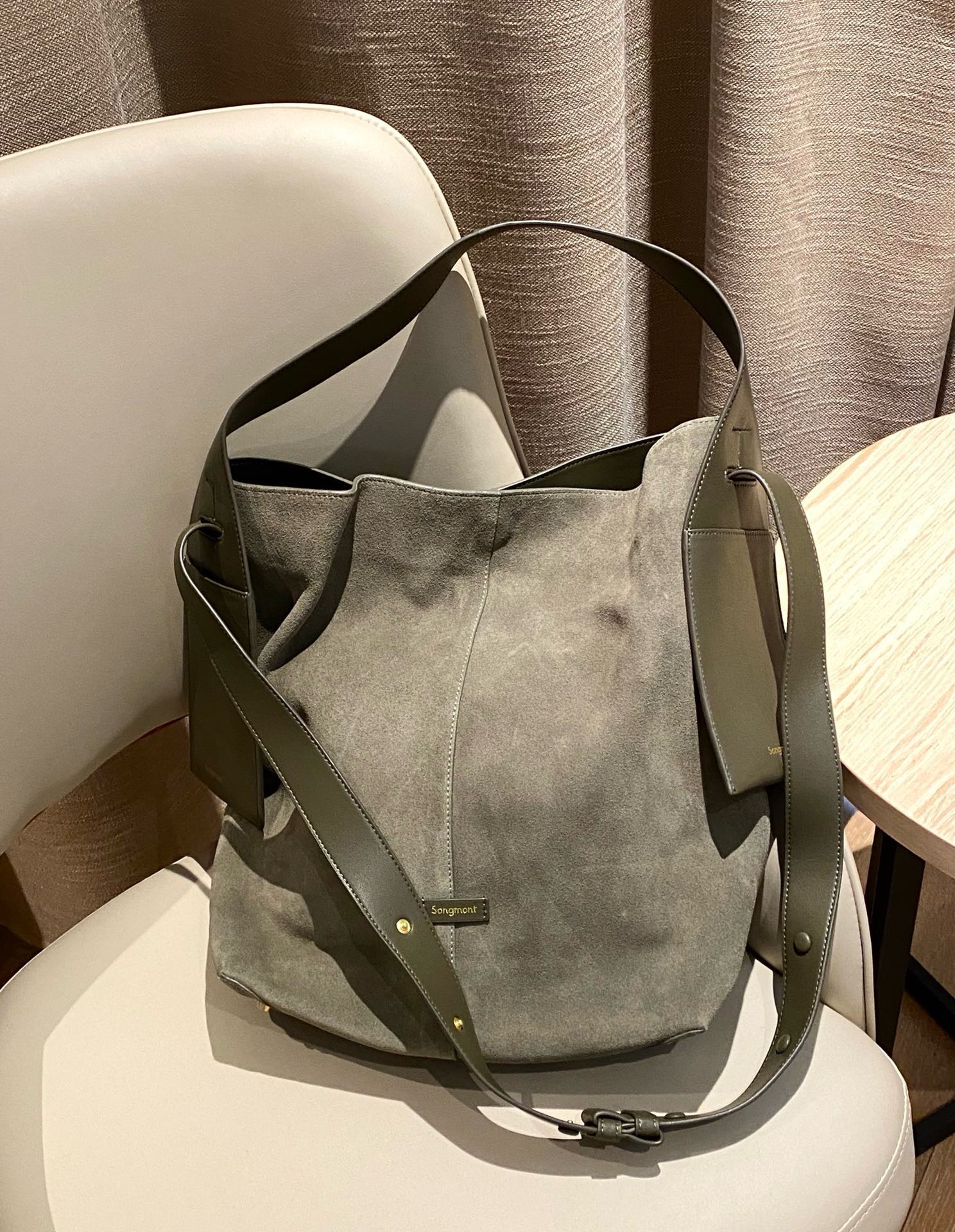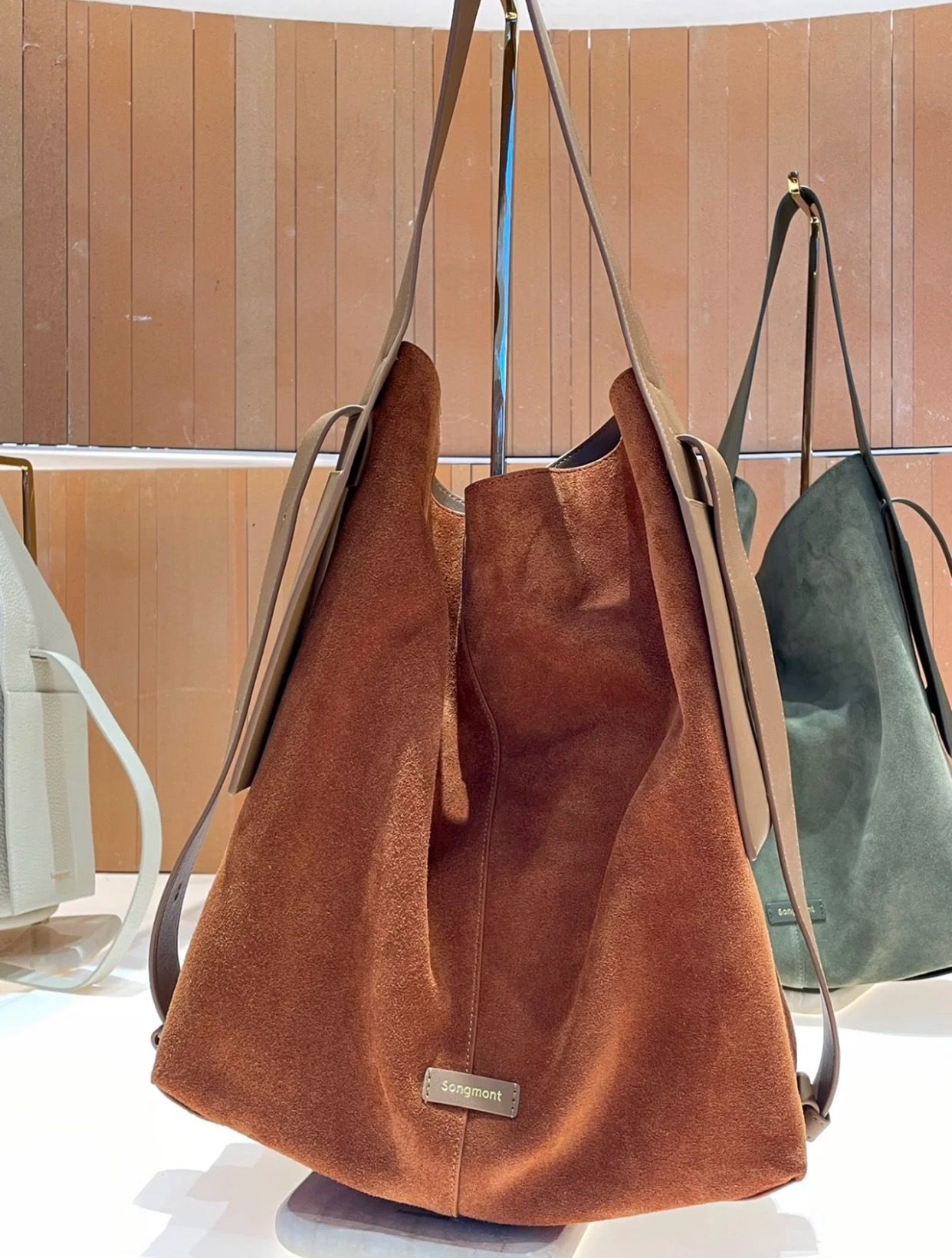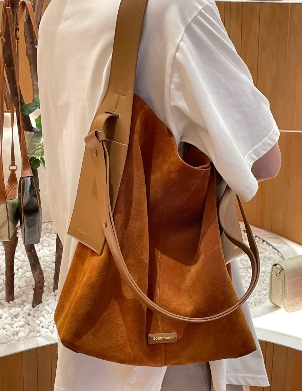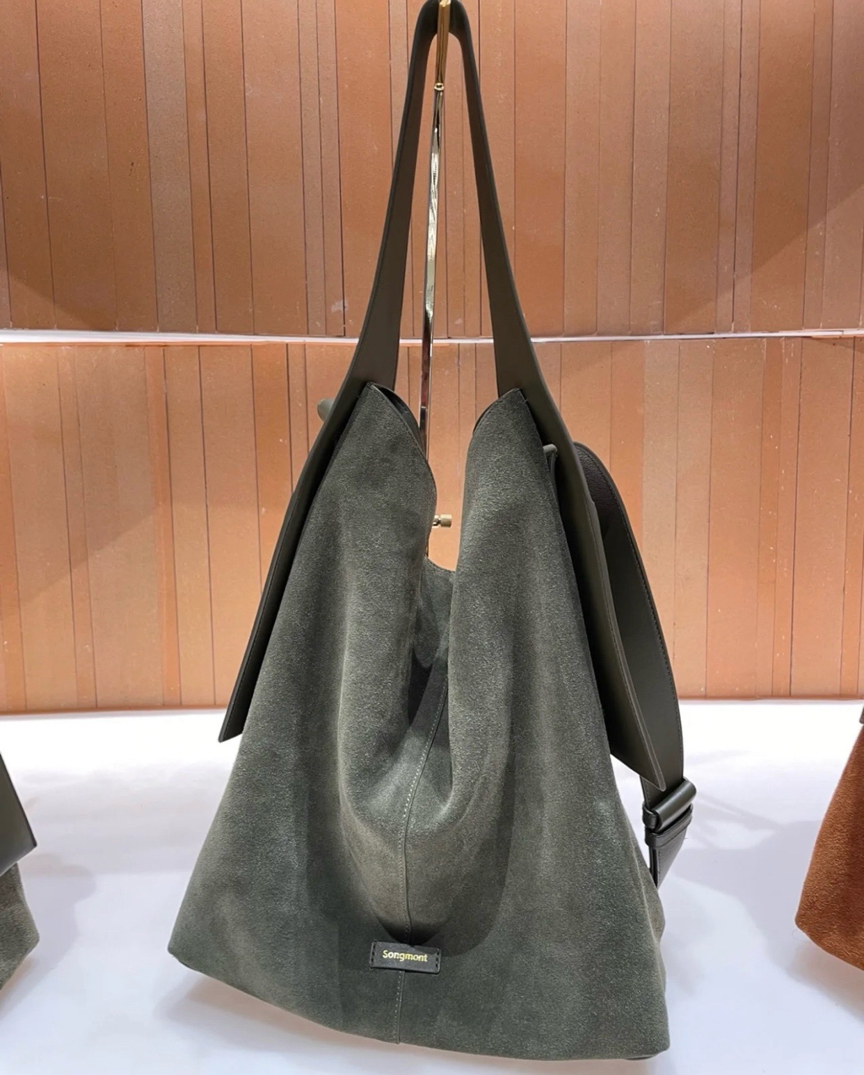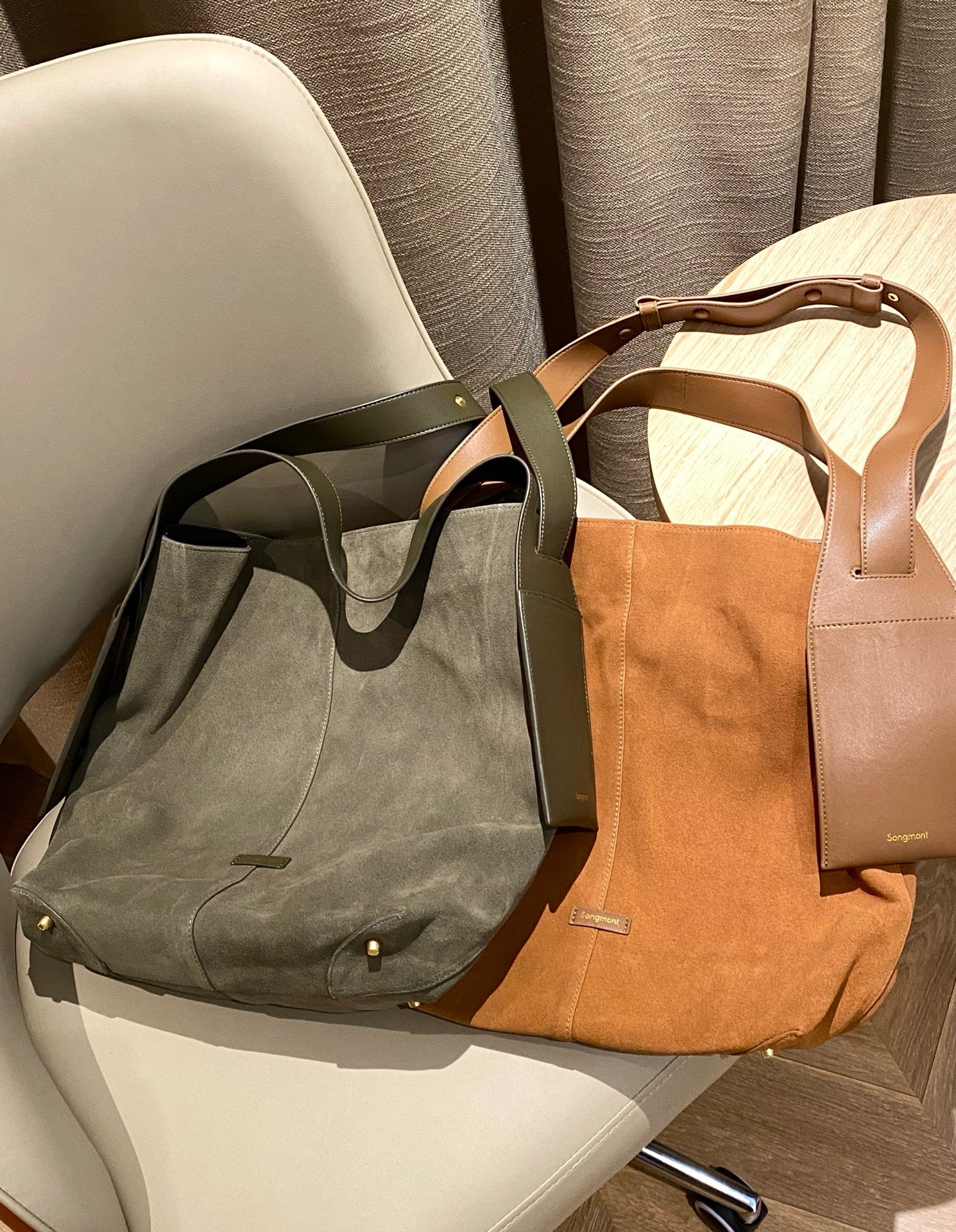 高圆圆同款!菘2580+!大号麂皮挂耳托特包通勤牛皮单肩手提包女,