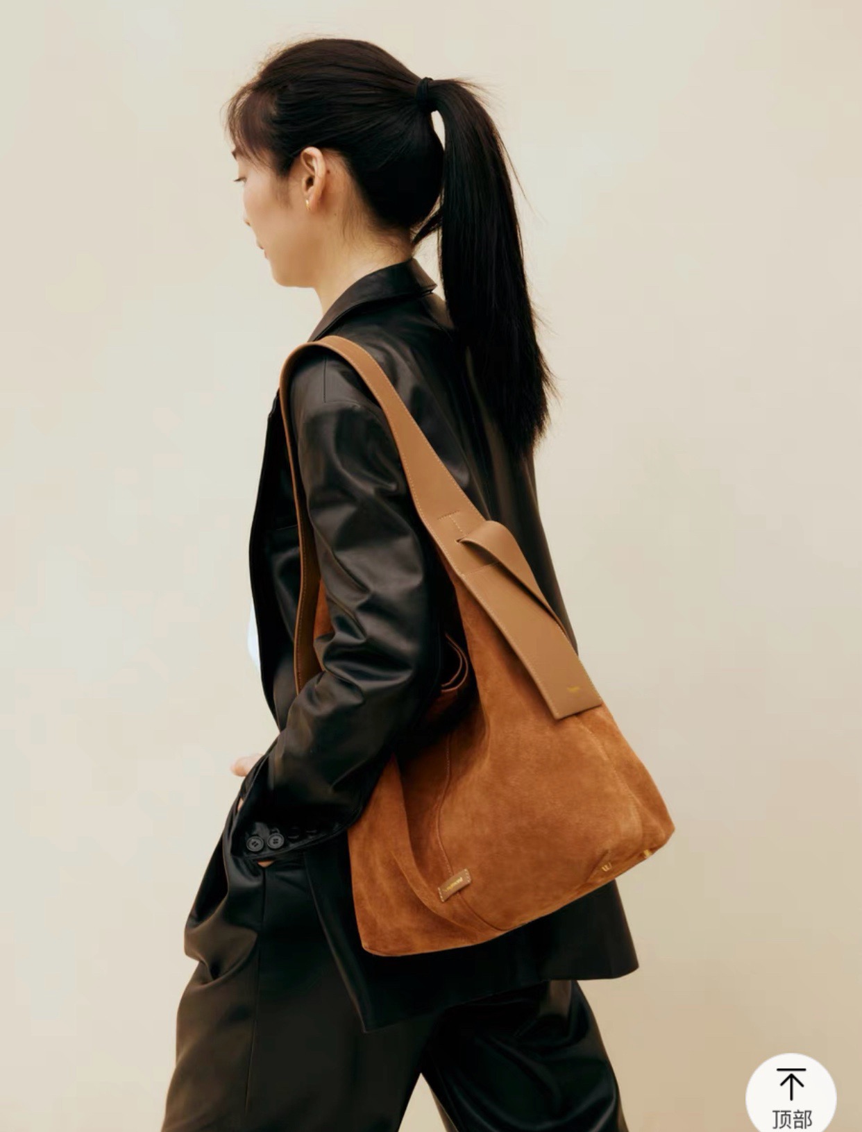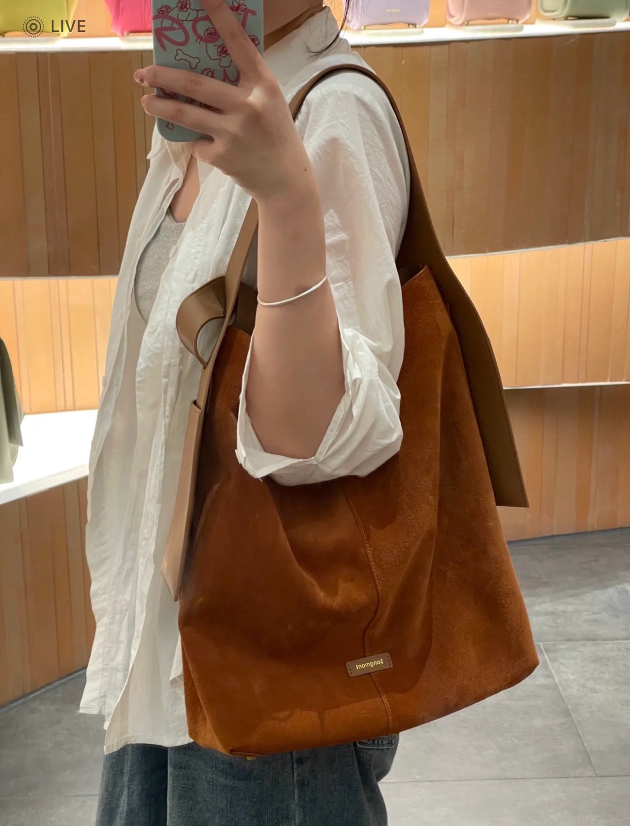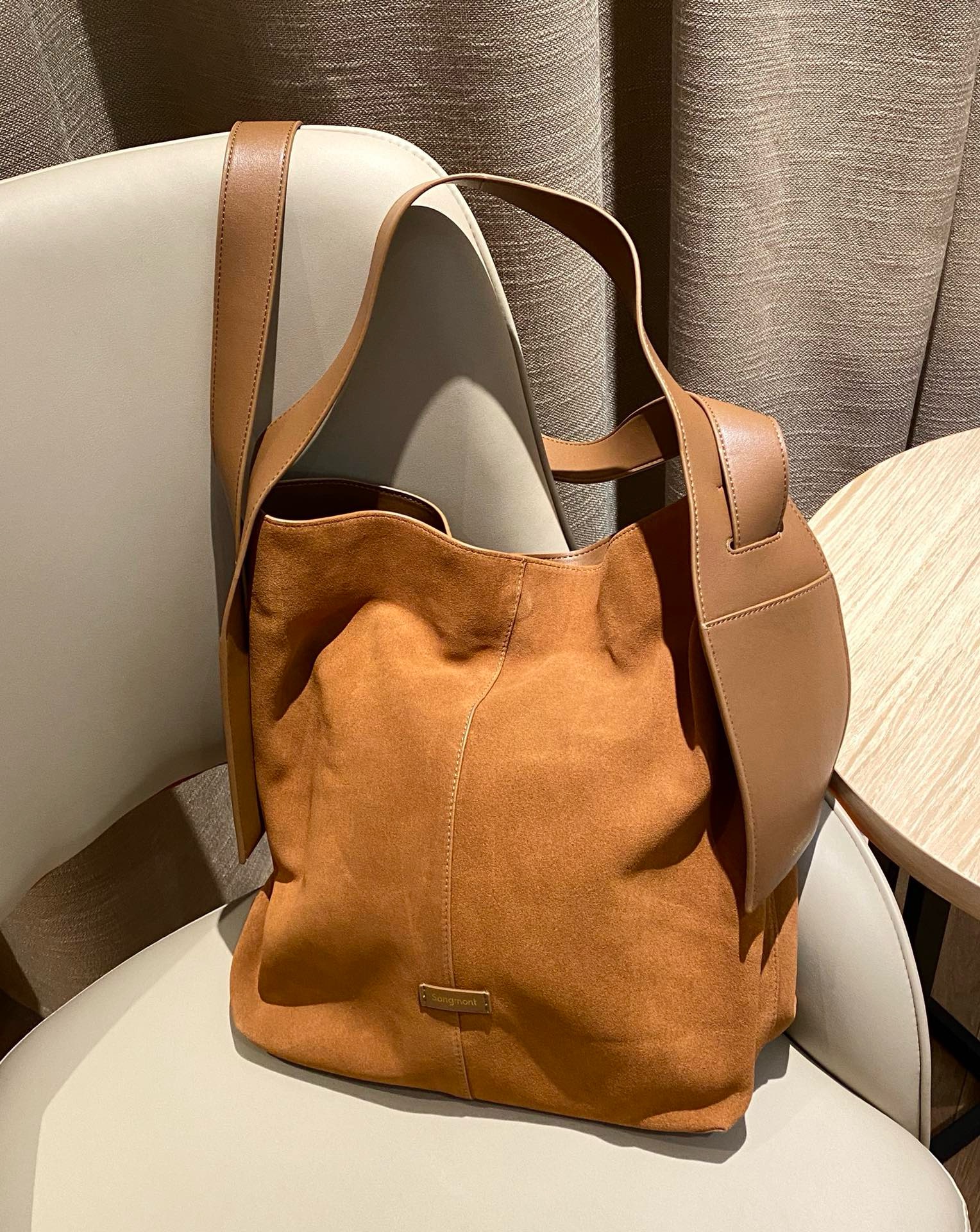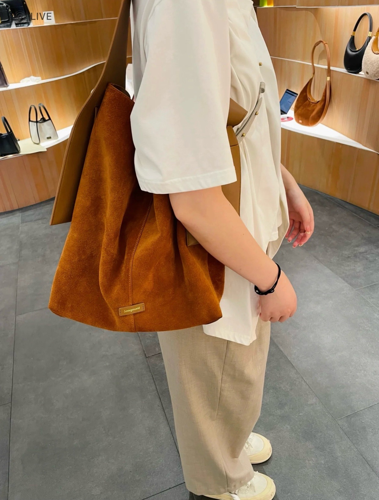 高圆圆同款!菘2580+!大号麂皮挂耳托特包通勤牛皮单肩手提包女,