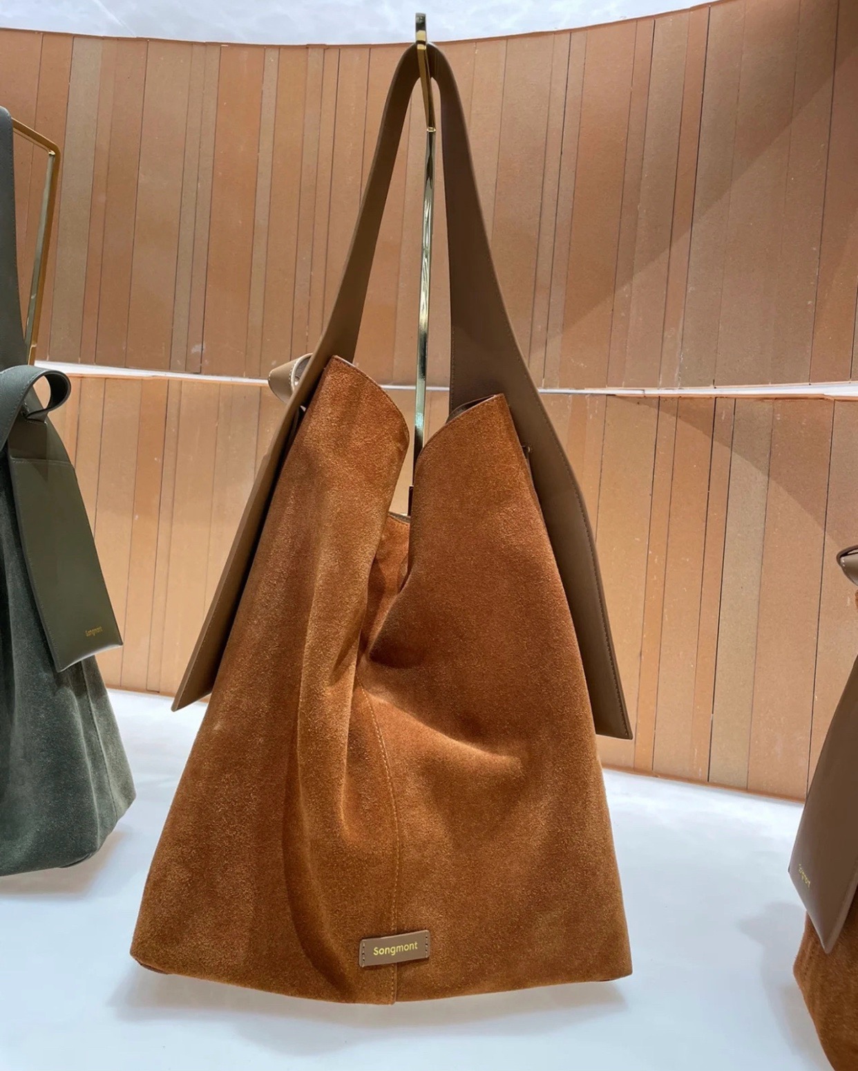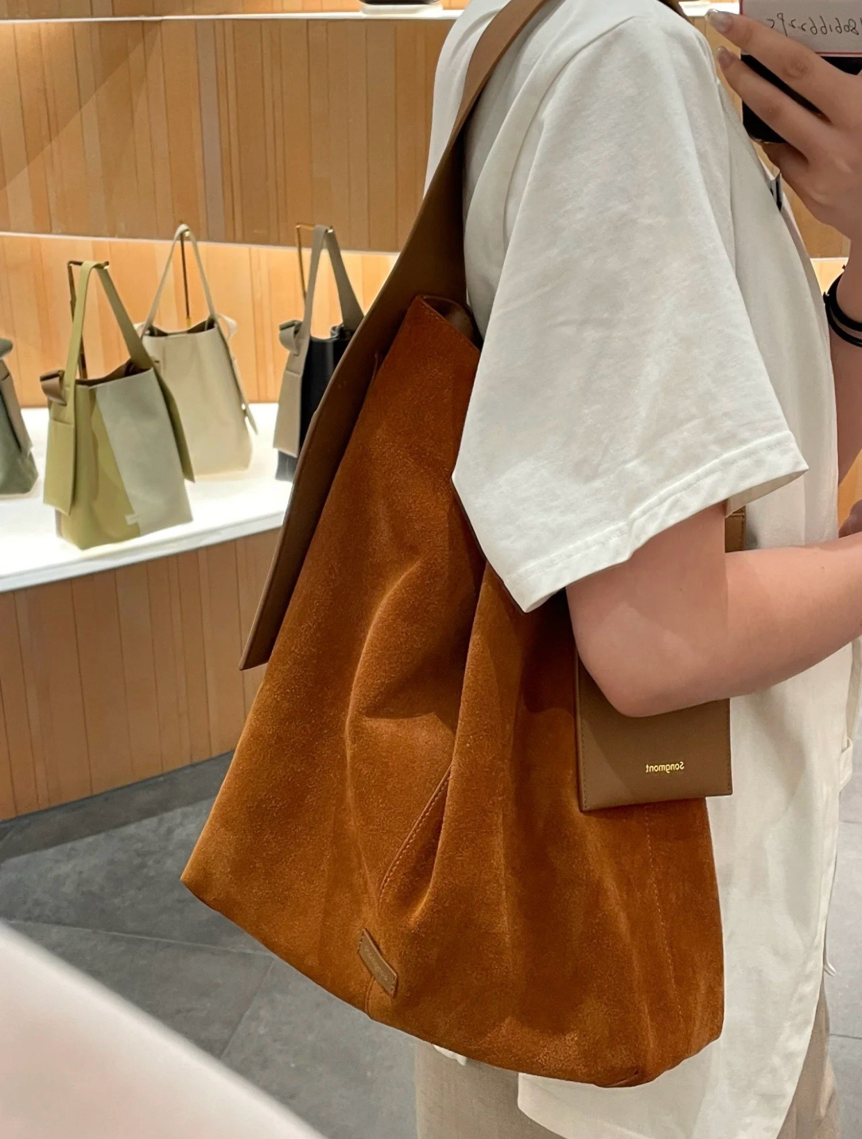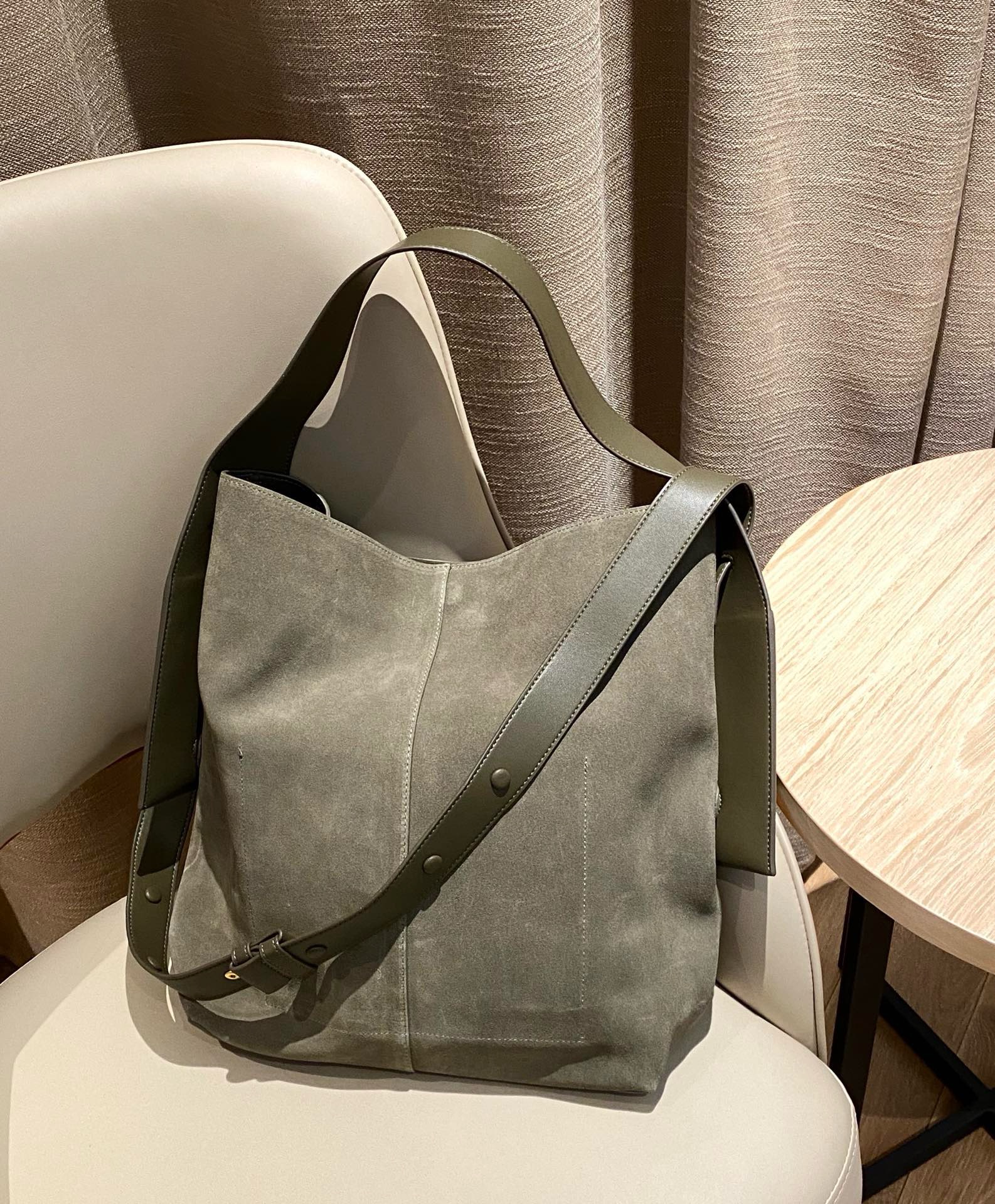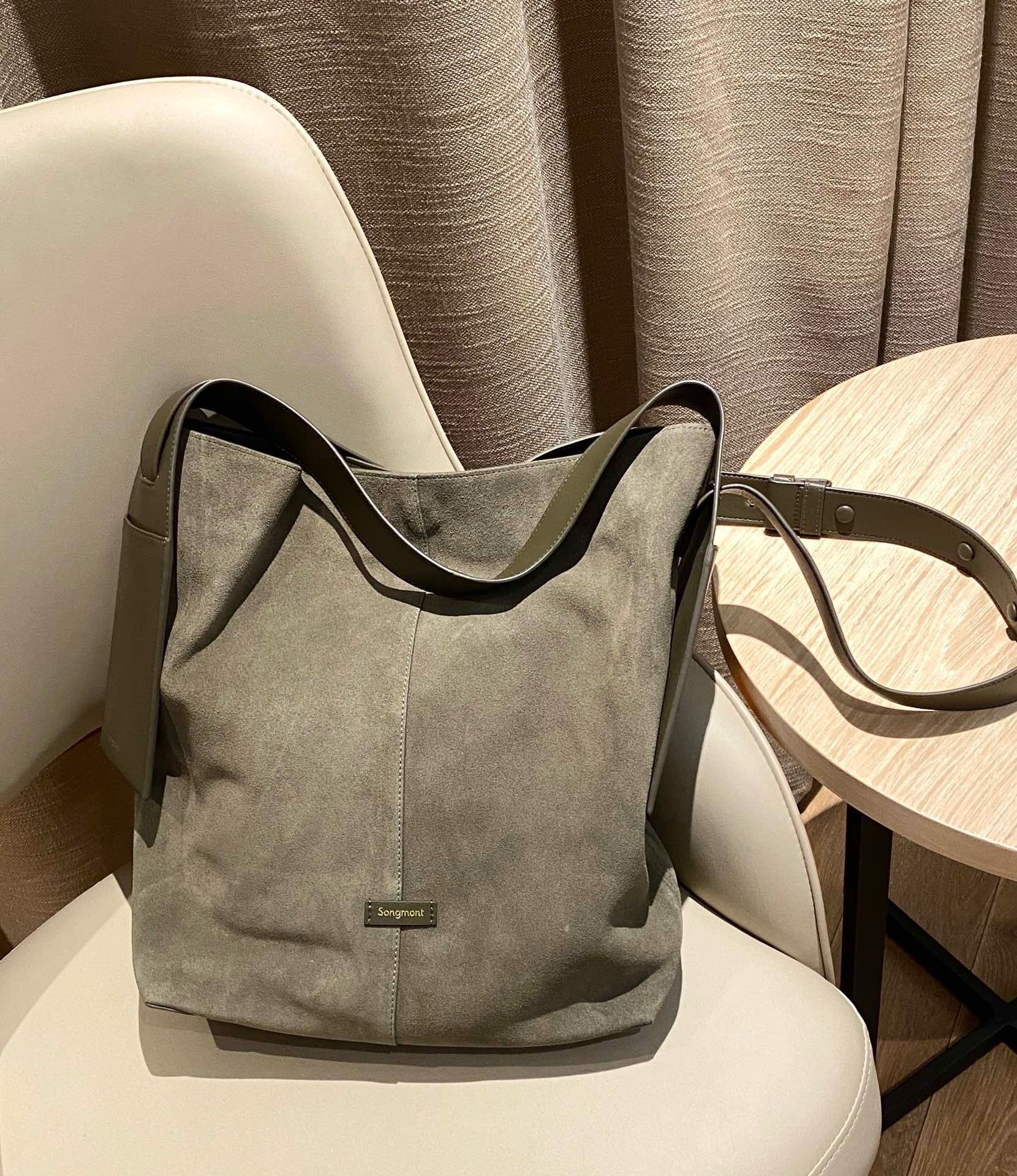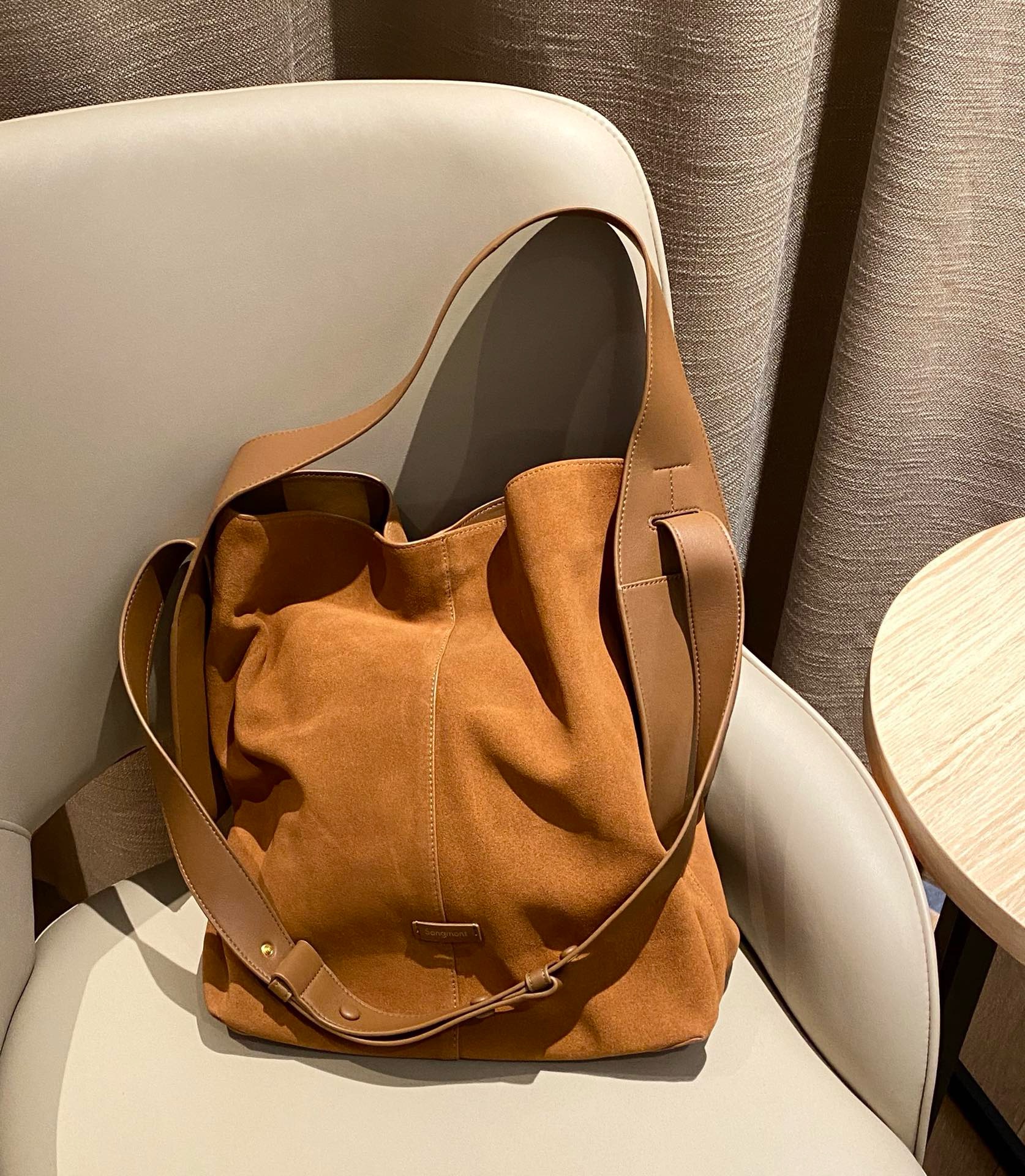 高圆圆同款!菘2580+!大号麂皮挂耳托特包通勤牛皮单肩手提包女,