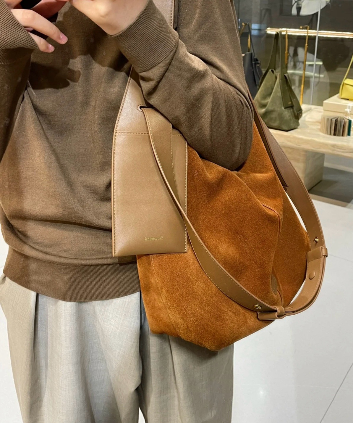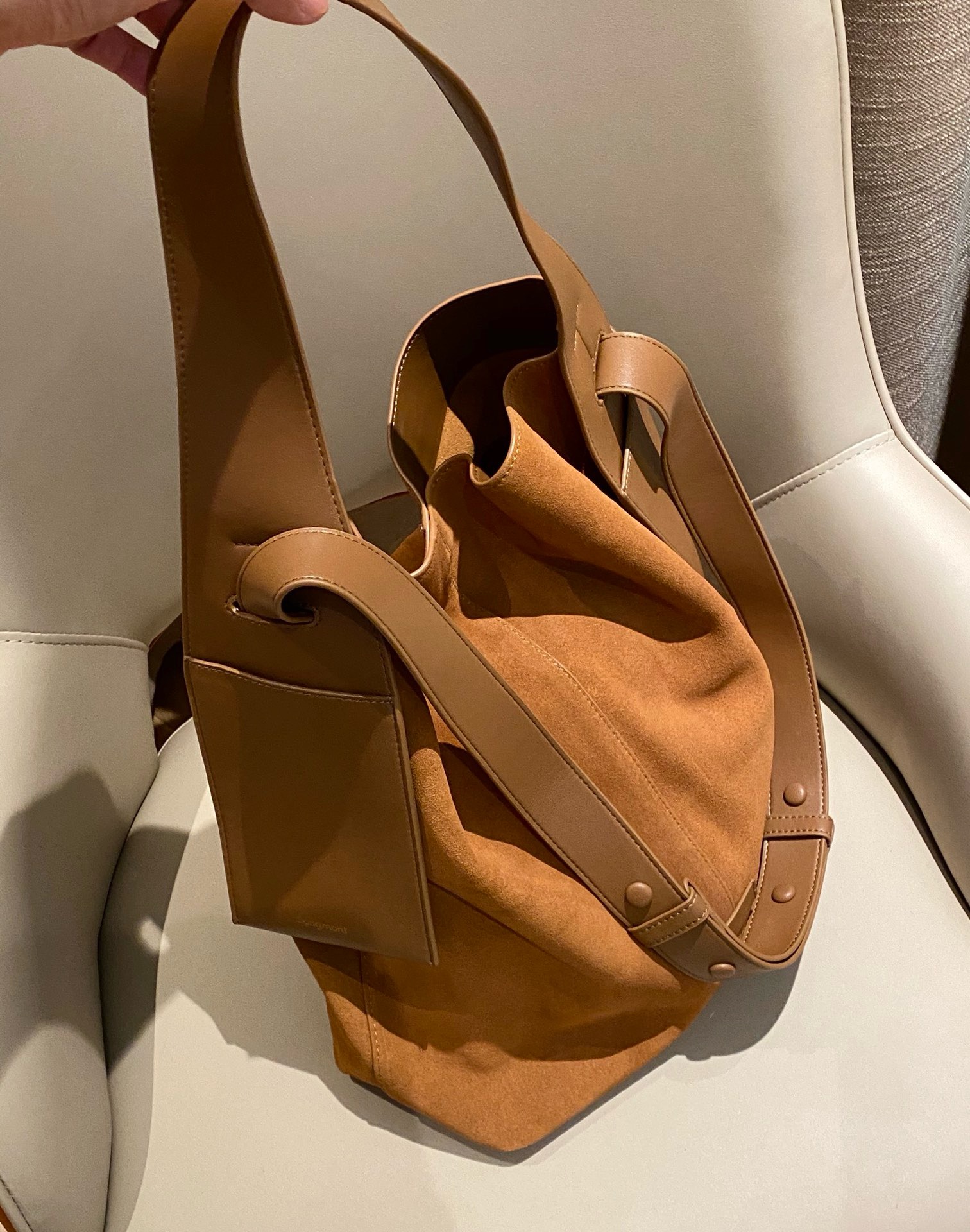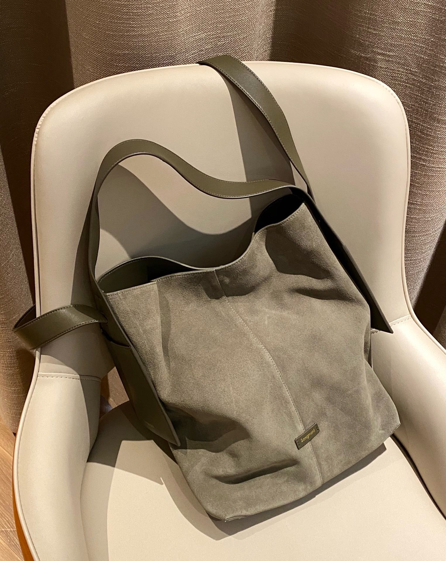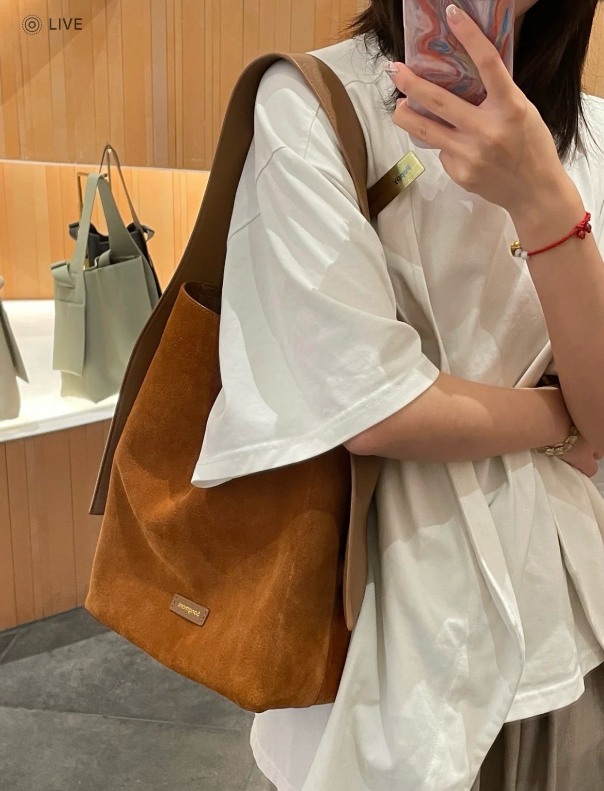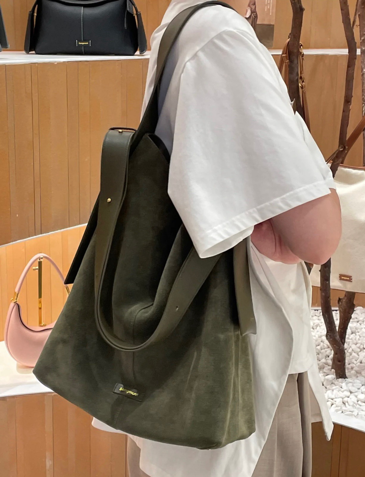 高圆圆同款!菘2580+!大号麂皮挂耳托特包通勤牛皮单肩手提包女,