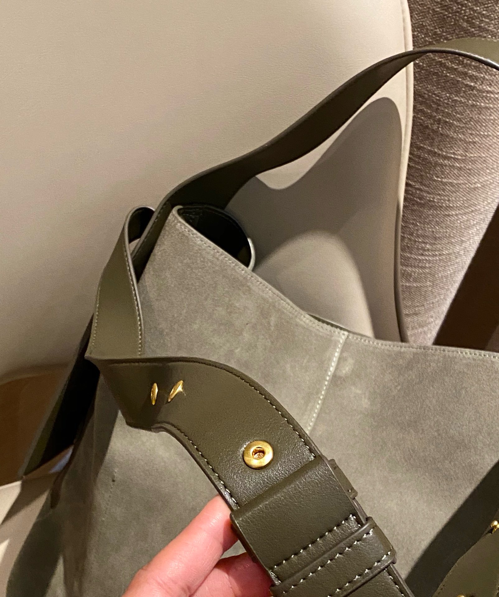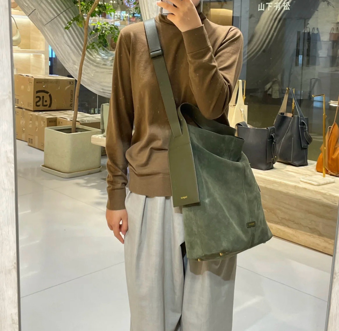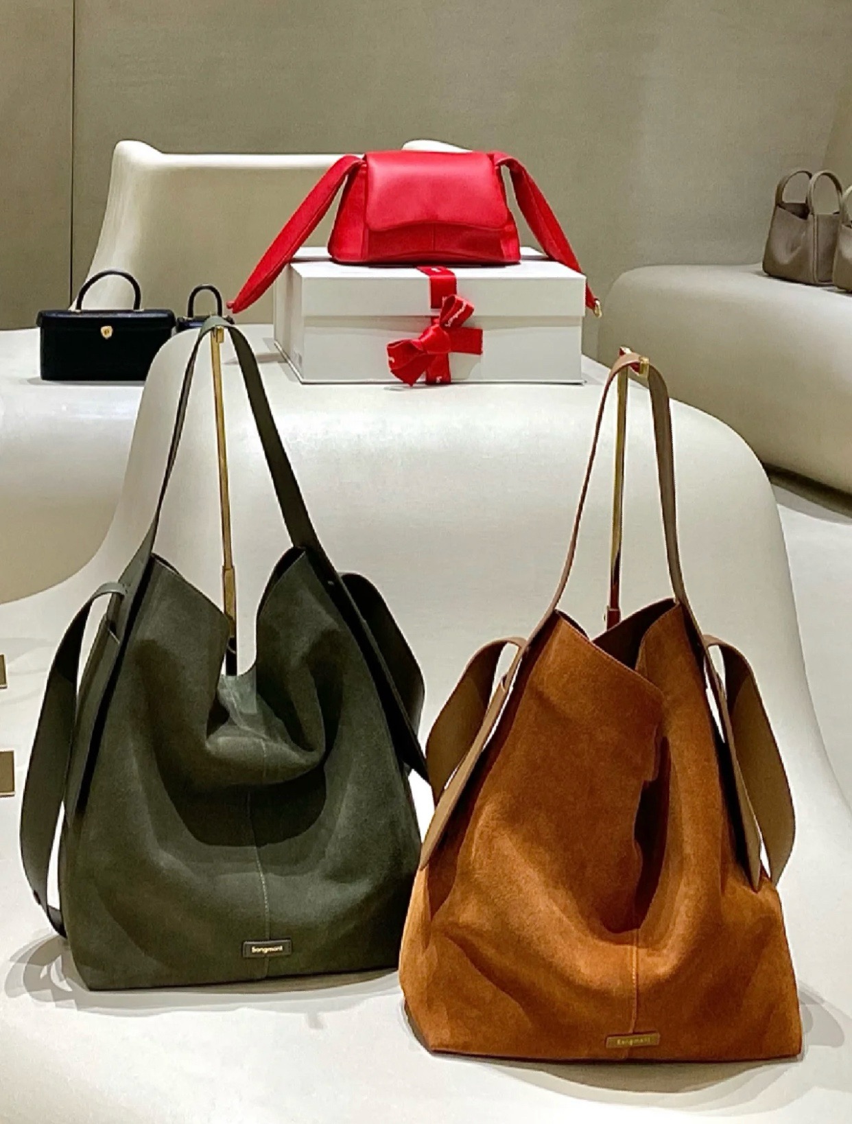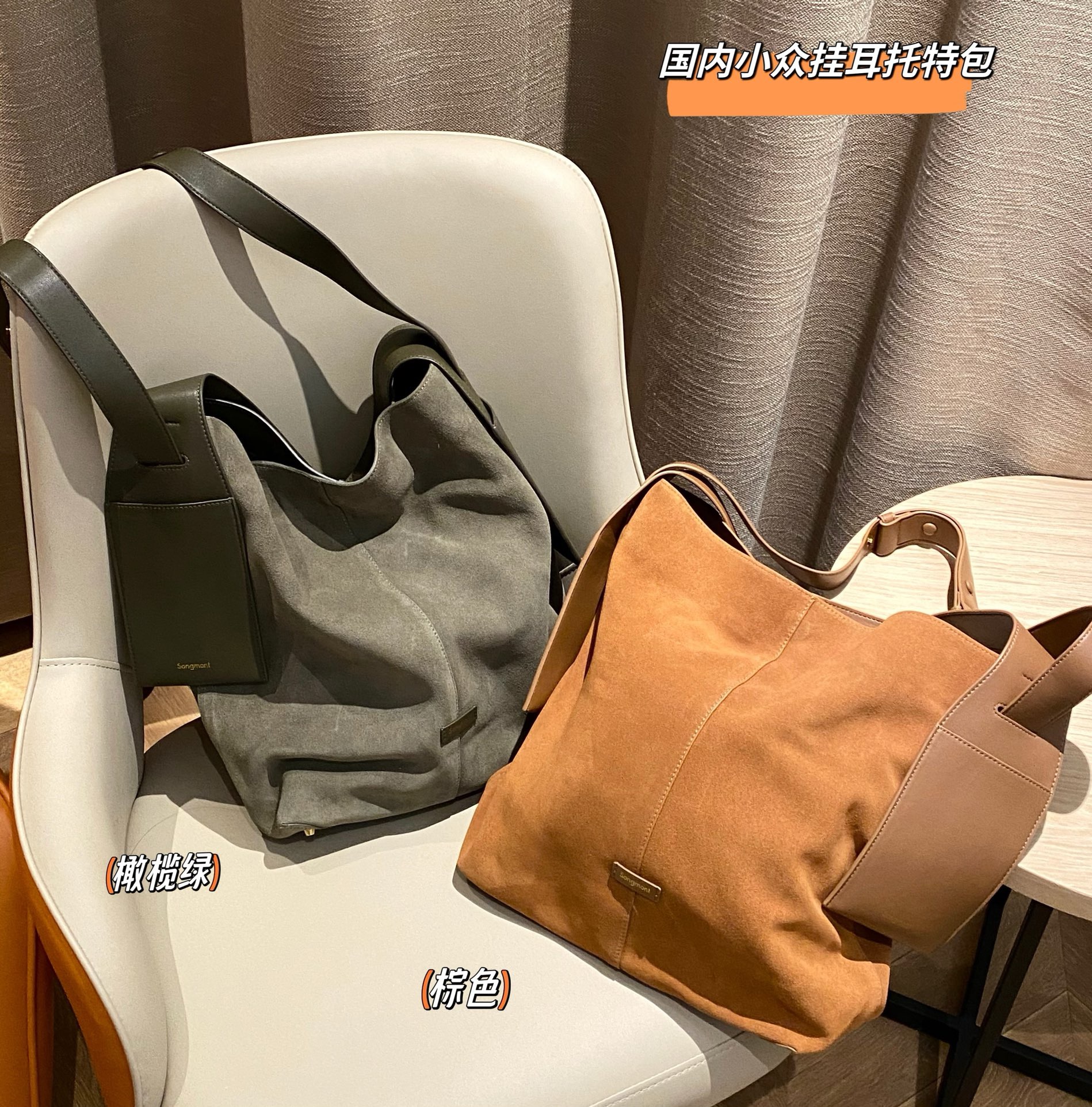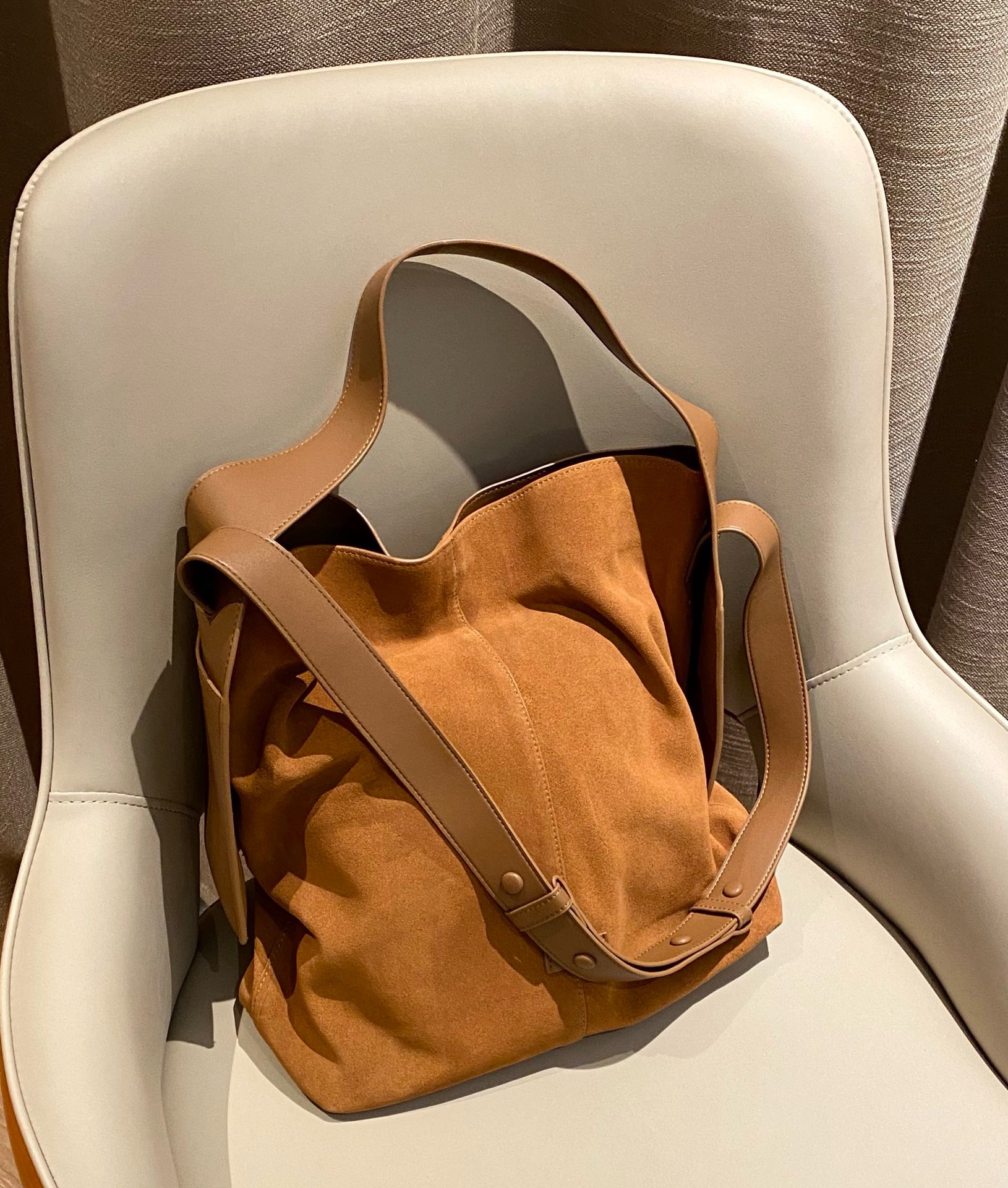高圆圆同款!菘2580+!大号麂皮挂耳托特包通勤牛皮单肩手提包女,