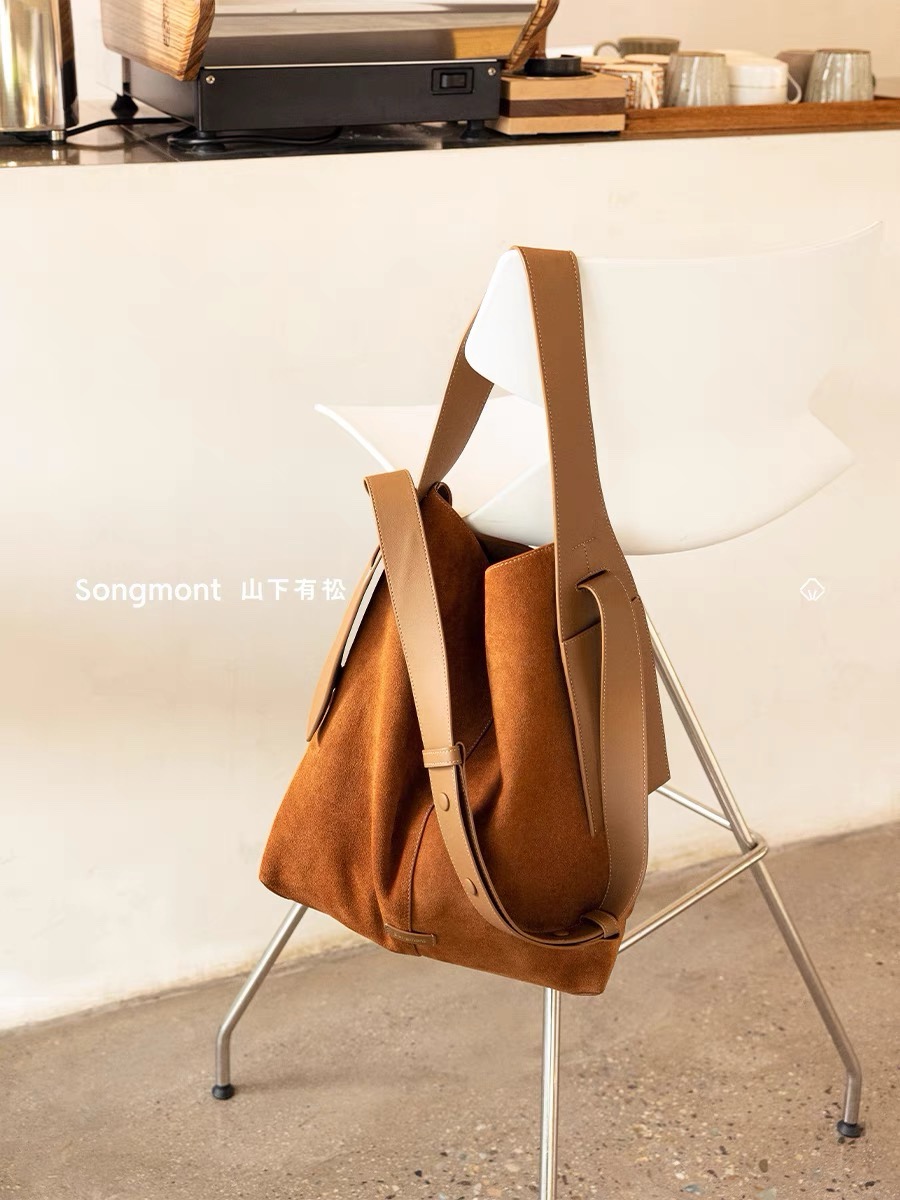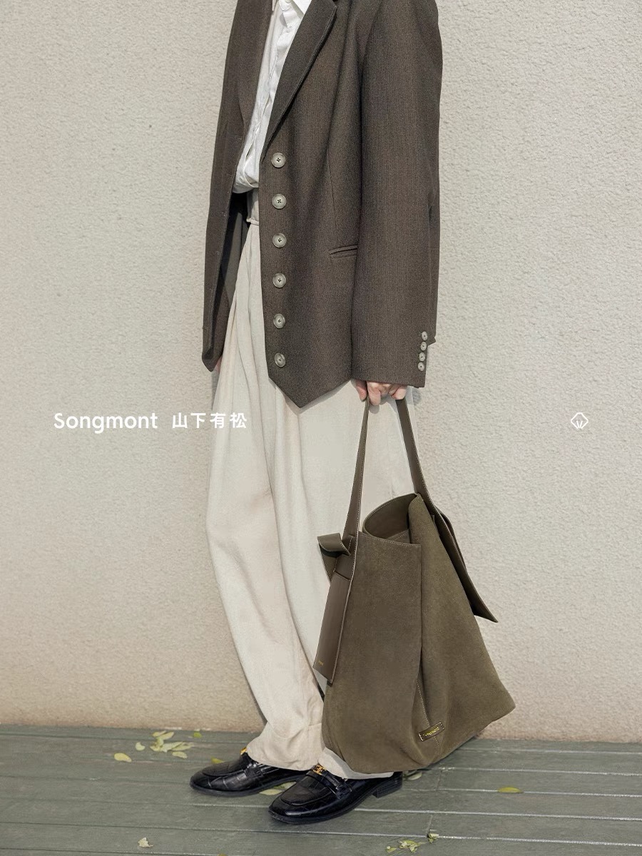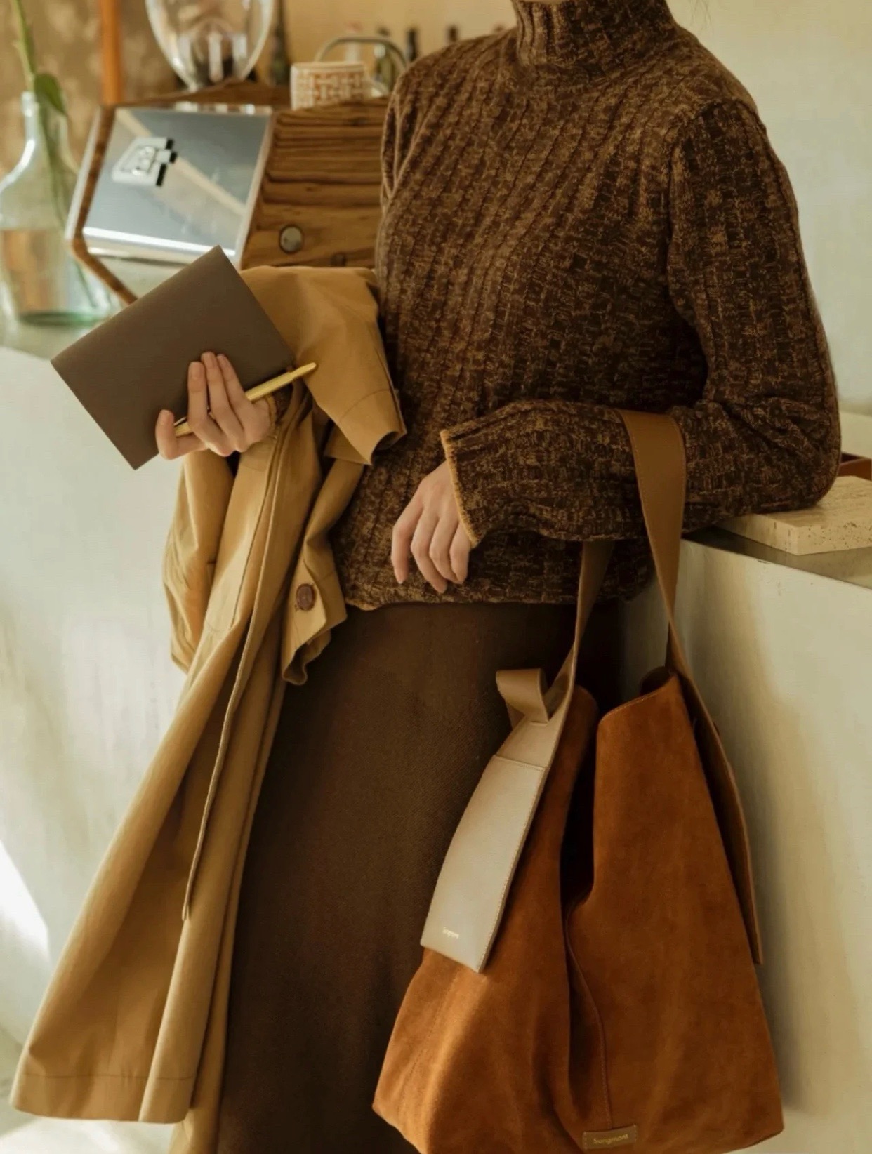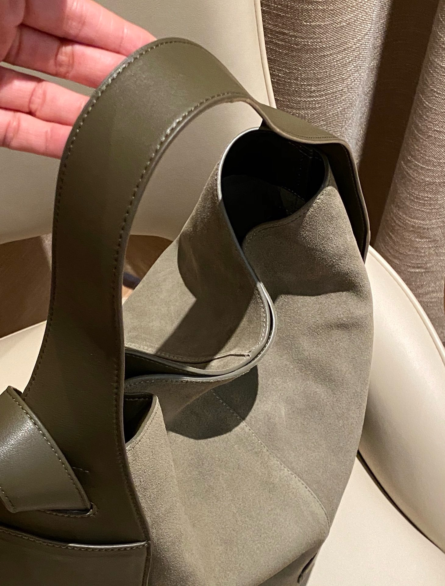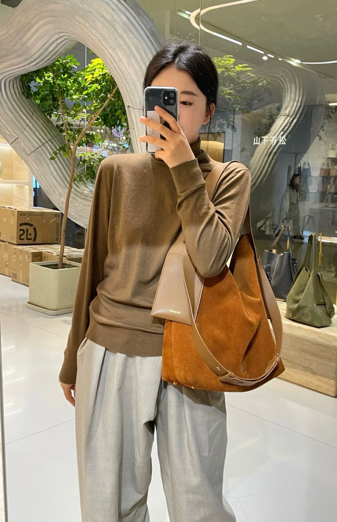 高圆圆同款!菘2580+!大号麂皮挂耳托特包通勤牛皮单肩手提包女,