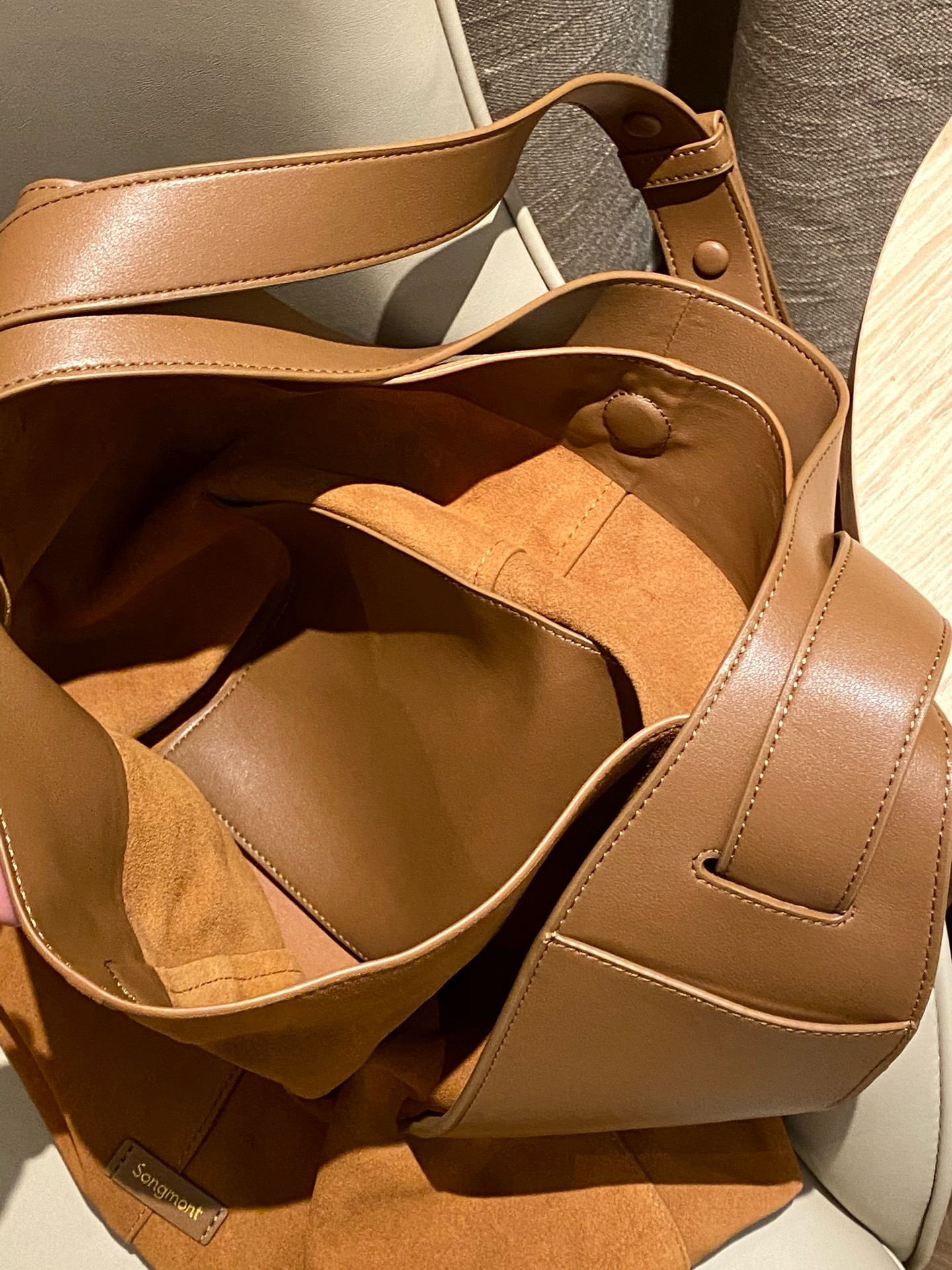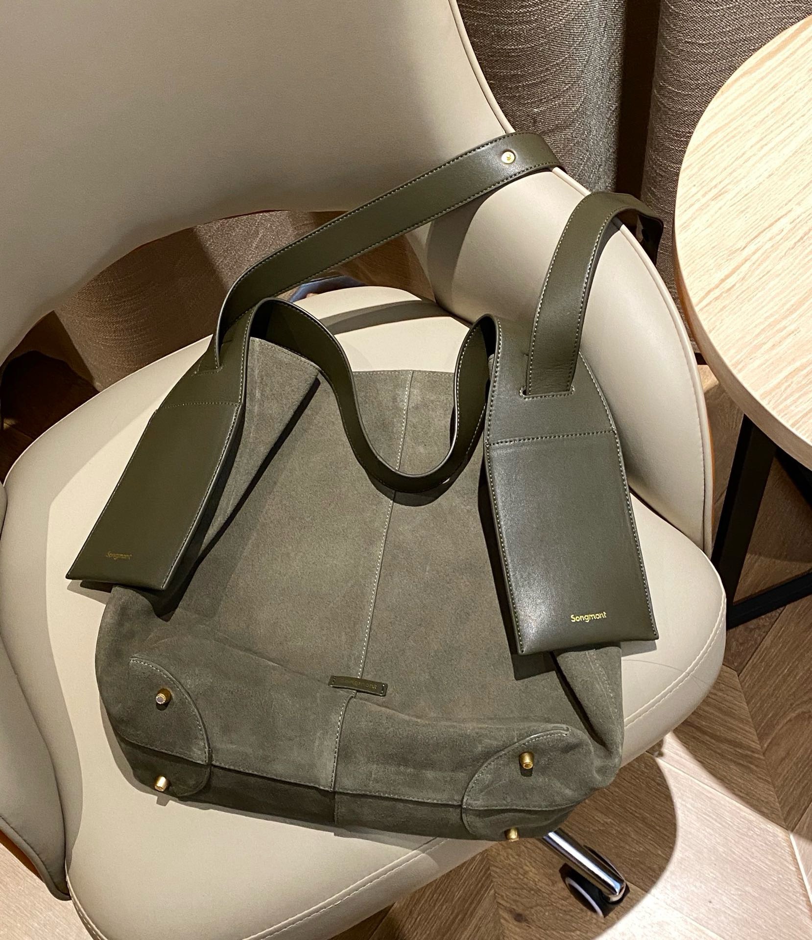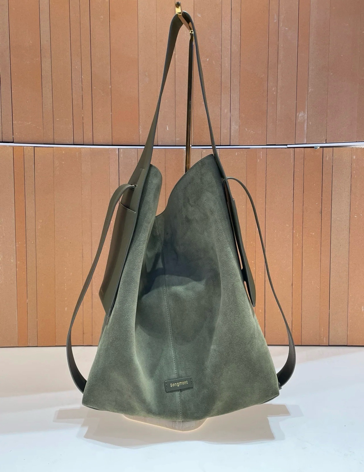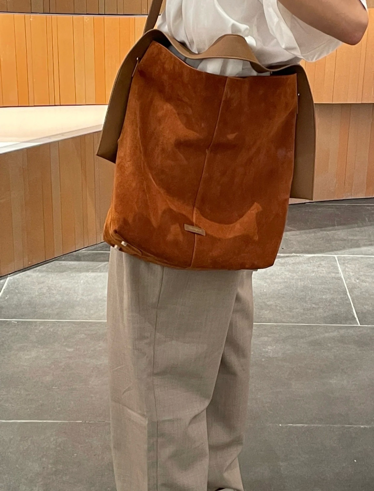 高圆圆同款!菘2580+!大号麂皮挂耳托特包通勤牛皮单肩手提包女,