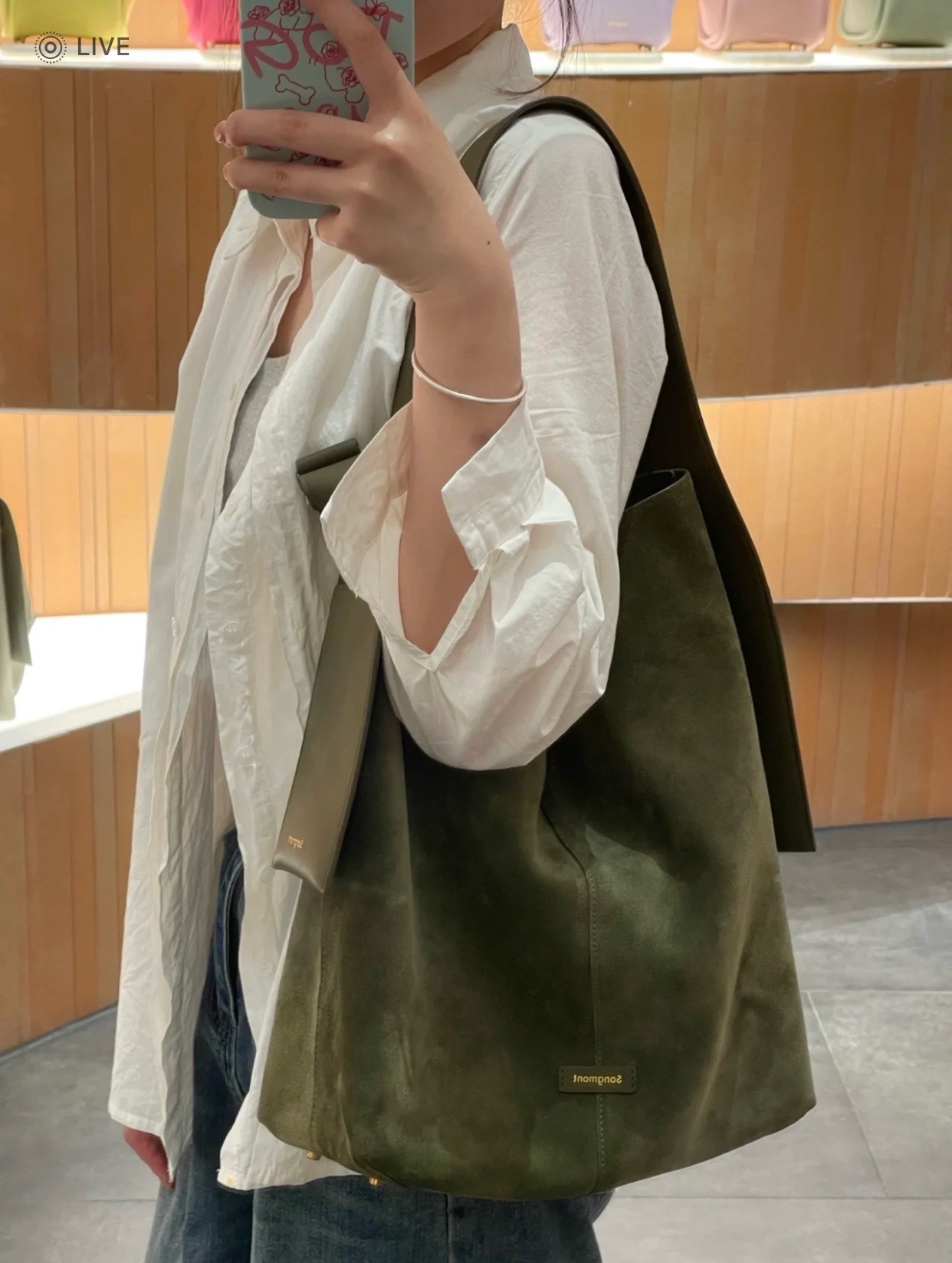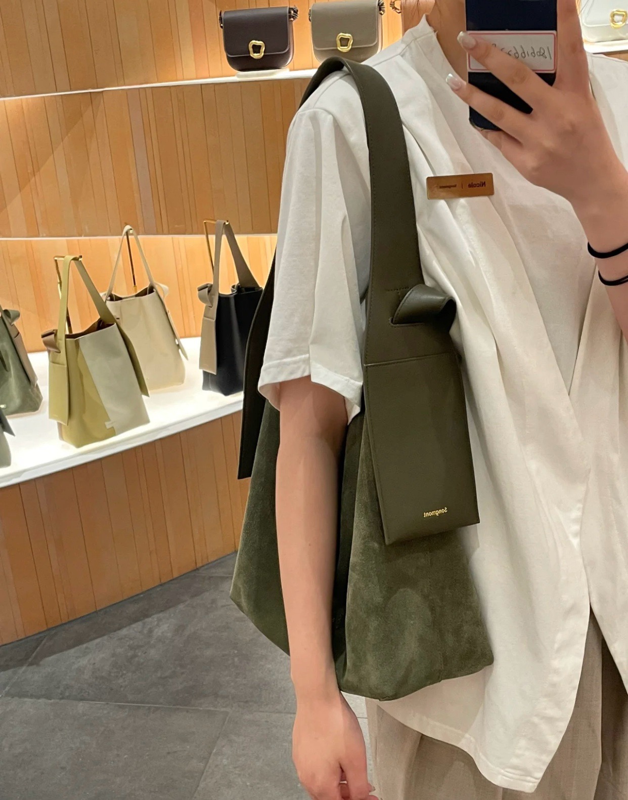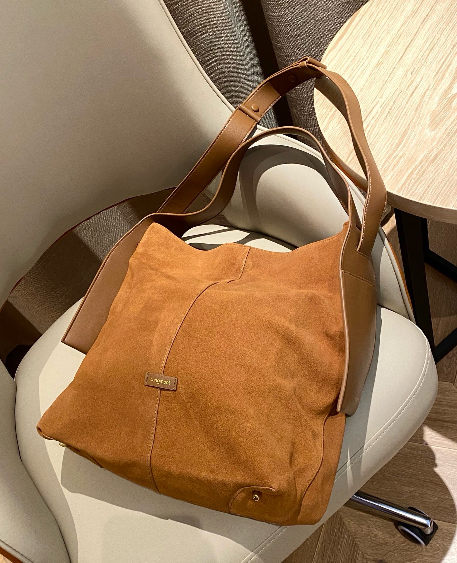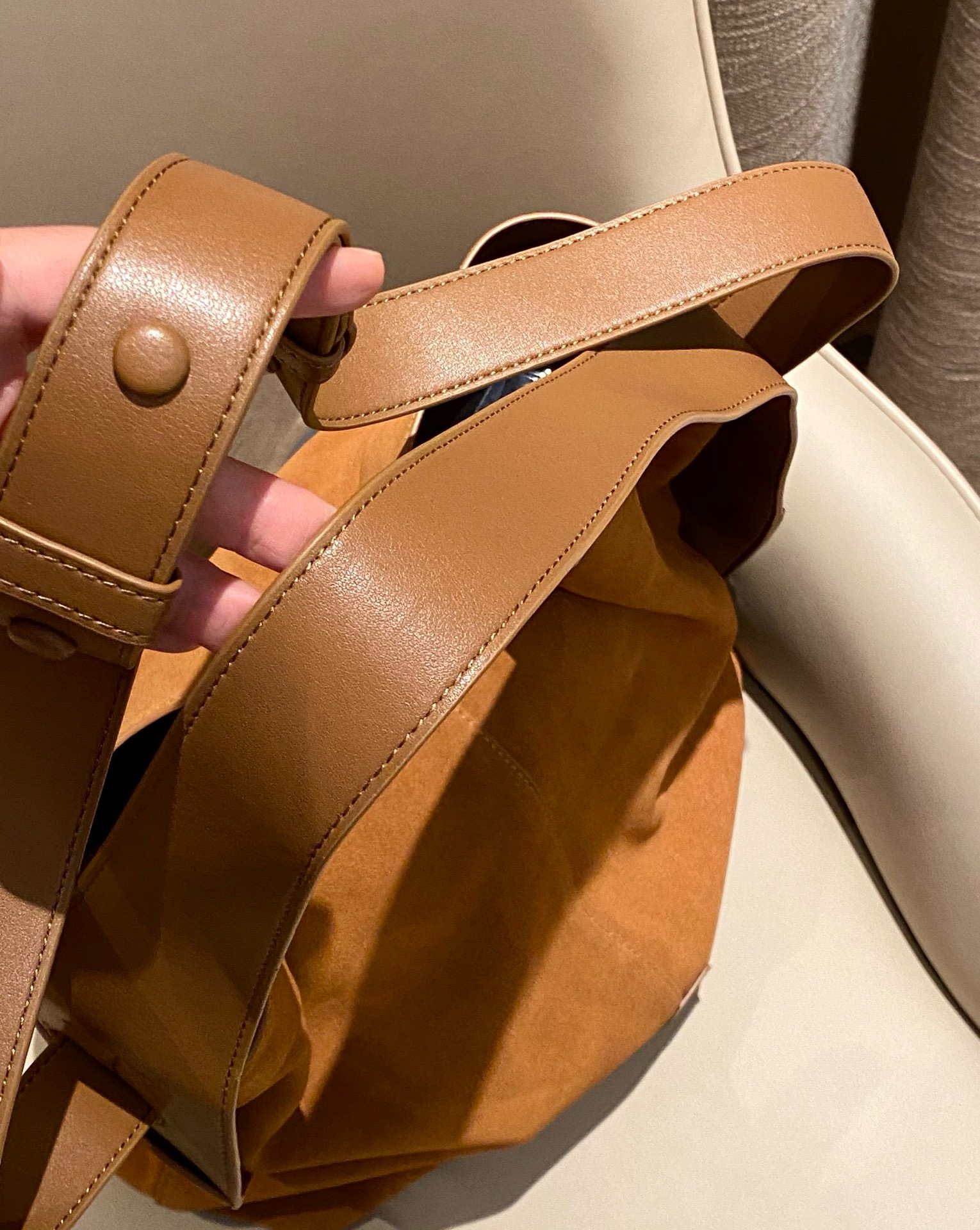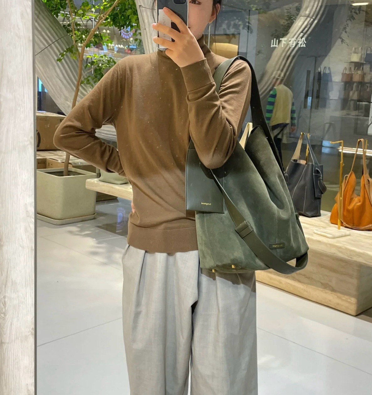 高圆圆同款!菘2580+!大号麂皮挂耳托特包通勤牛皮单肩手提包女,